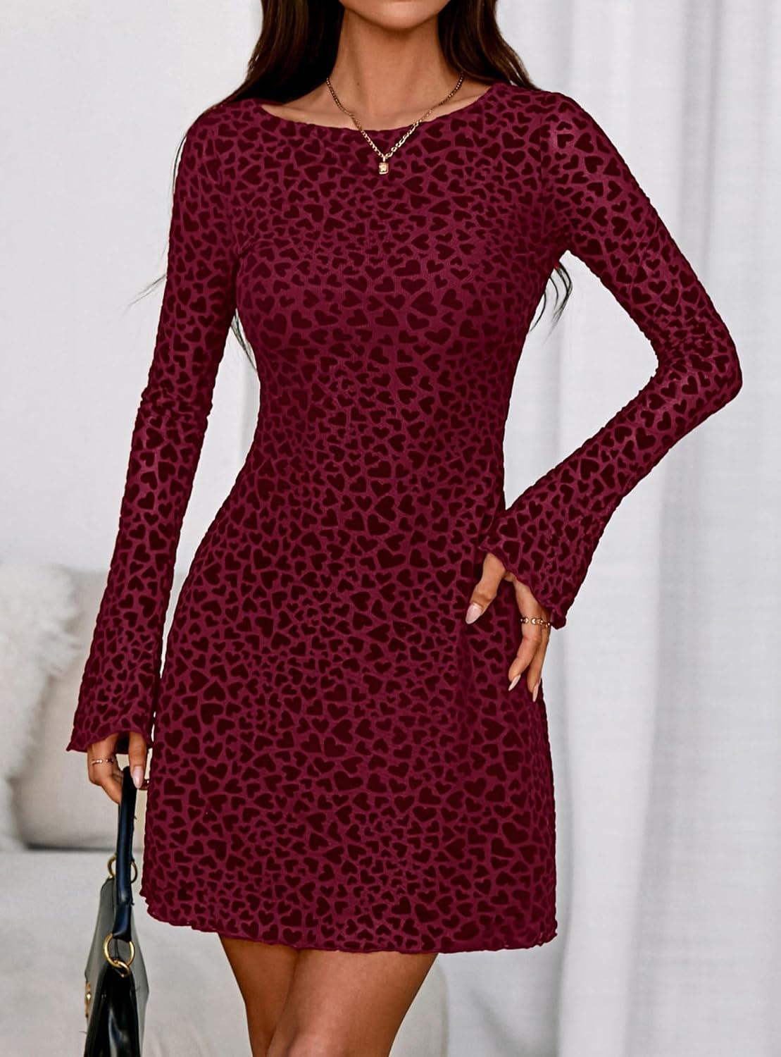 PRETTYGARDEN Women’s 2025 Fall Fashion Floral Long Sleeve Mini Dress Mesh Bodycon Short Party Date Night Going Out Dresses(Floral Wine Red)