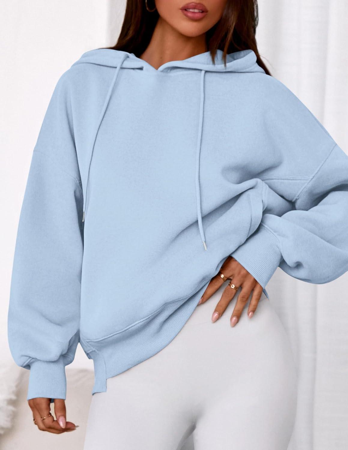 PRETTYGARDEN Women’s 2025 Fall Fashion Oversized Hoodies Sweatshirt Fleece Long Sleeve Going Out Tops Trendy Winter Clothing(Light Blue)