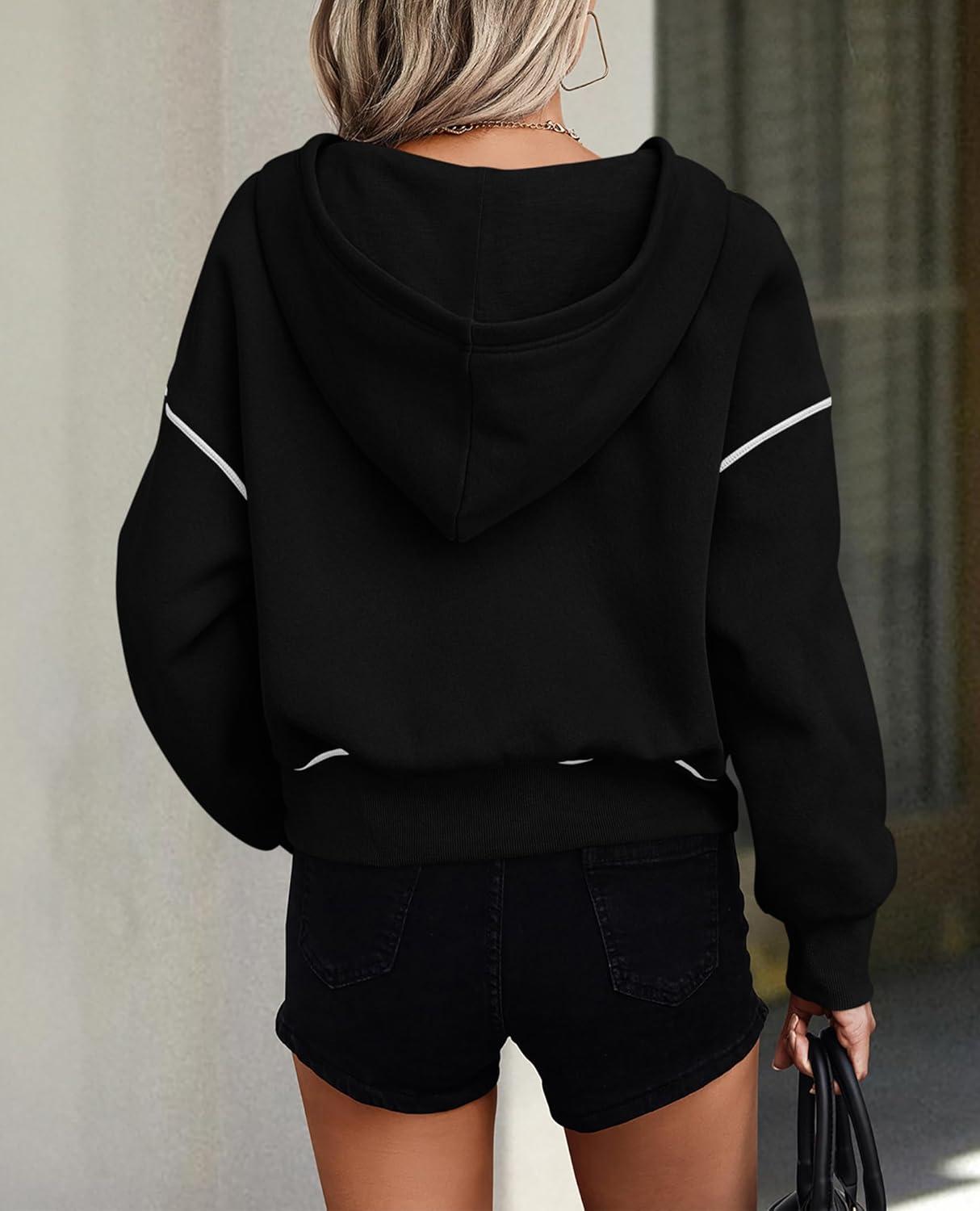 PRETTYGARDEN Women's 2025 Fall Hooded Sweatshirts Long Sleeve Half Zip Cropped Hoodies Pullover Winter Fashion Clothes(Black)