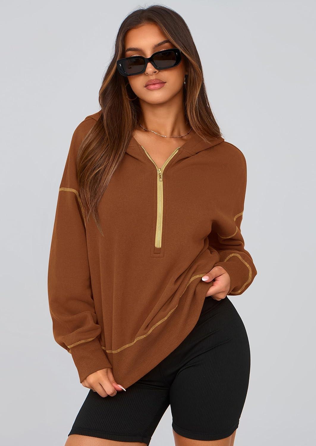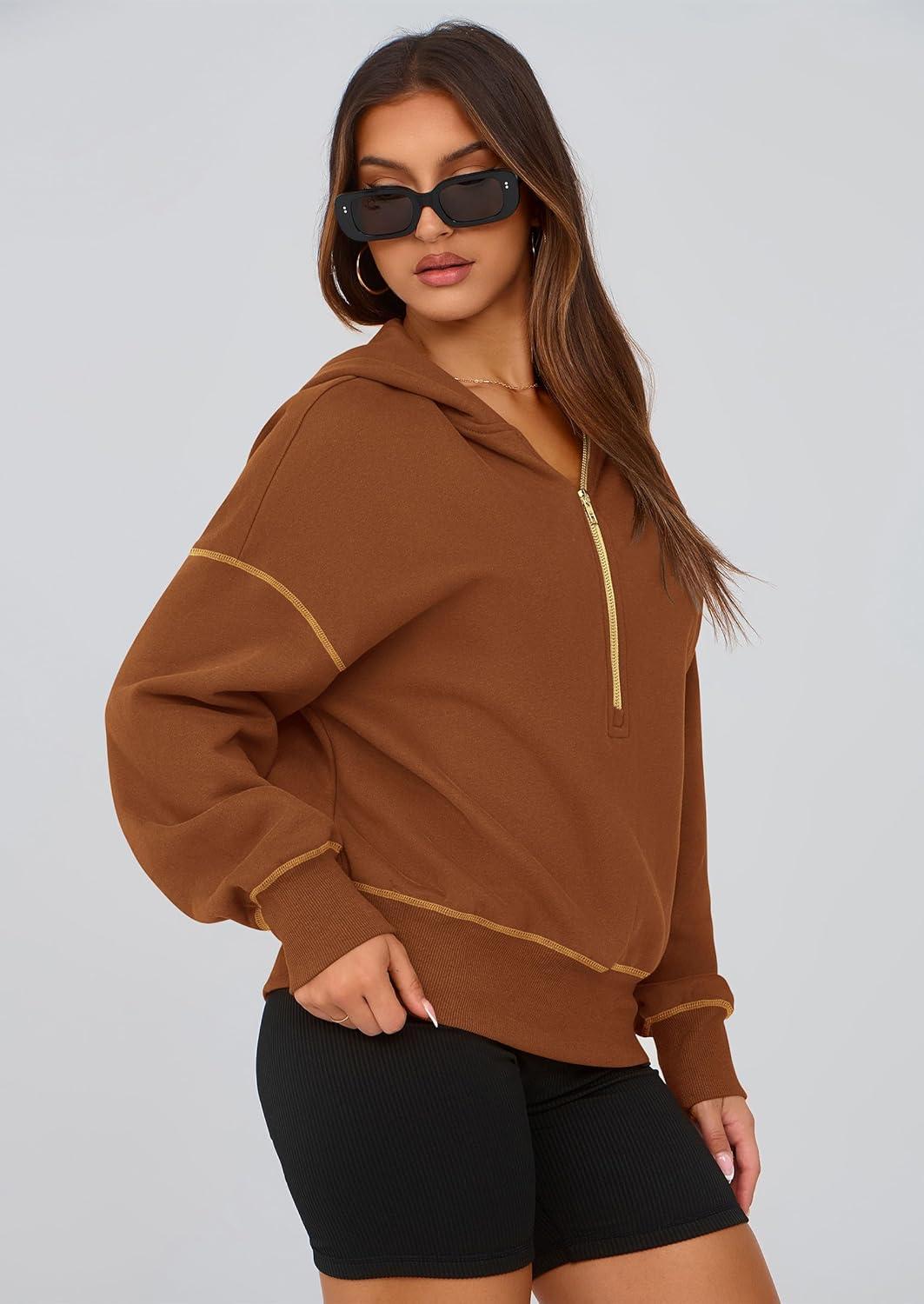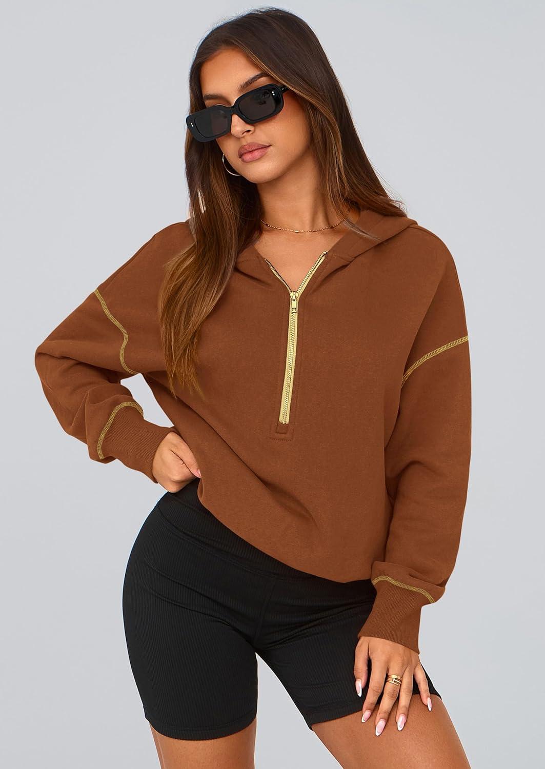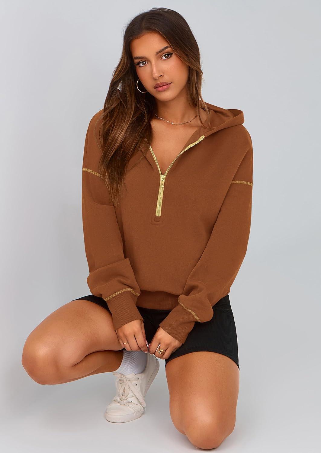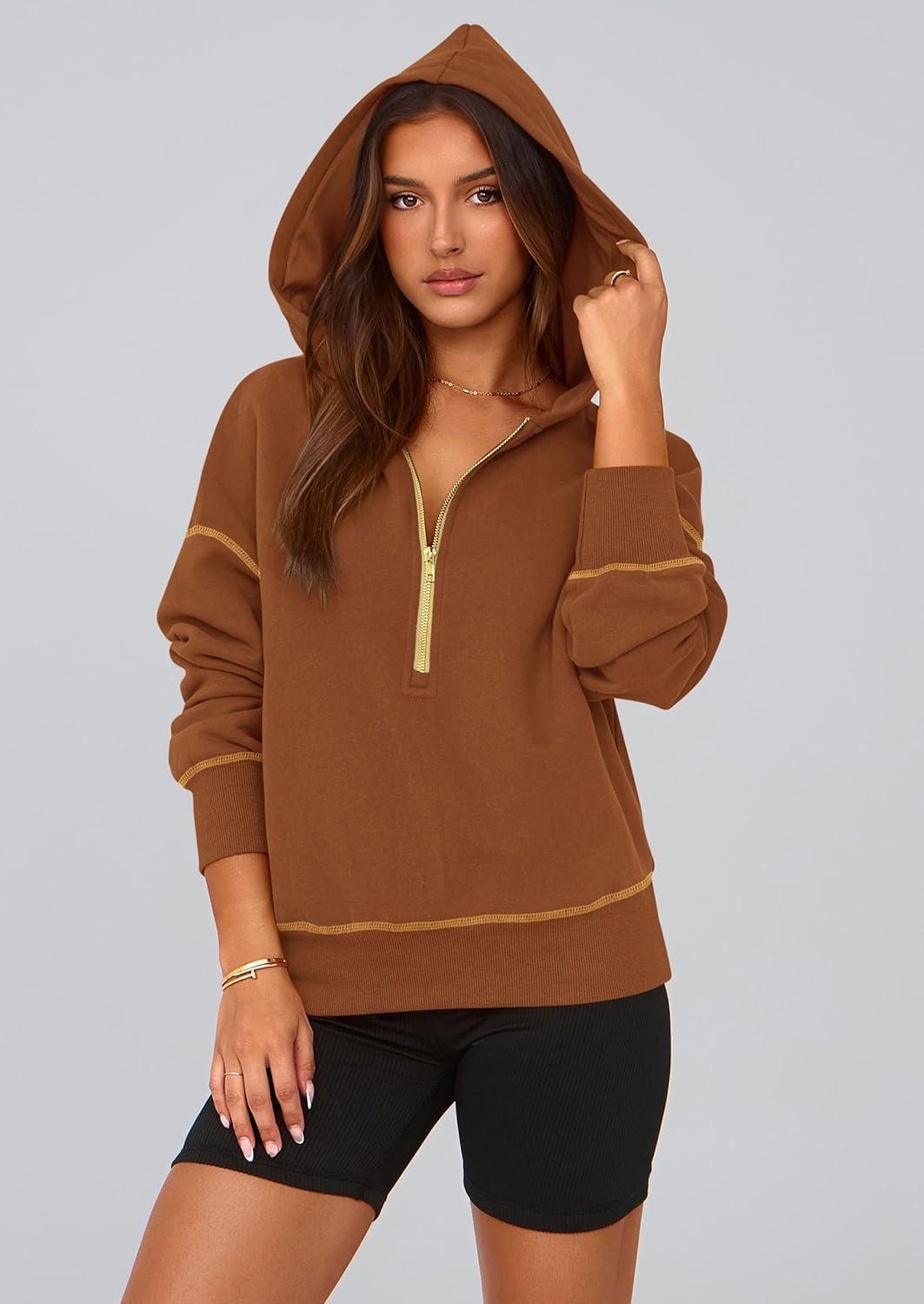 PRETTYGARDEN Women’s 2025 Fall Hooded Sweatshirts Long Sleeve Half Zip Cropped Hoodies Pullover Winter Fashion Clothes(Caramel)