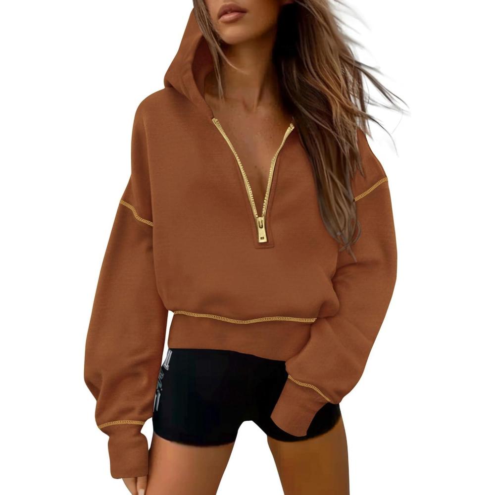 imagePRETTYGARDEN Womens 2025 Fall Hooded Sweatshirts Long Sleeve Half Zip Cropped Hoodies Pullover Winter Fashion ClothesBrown Coffee
