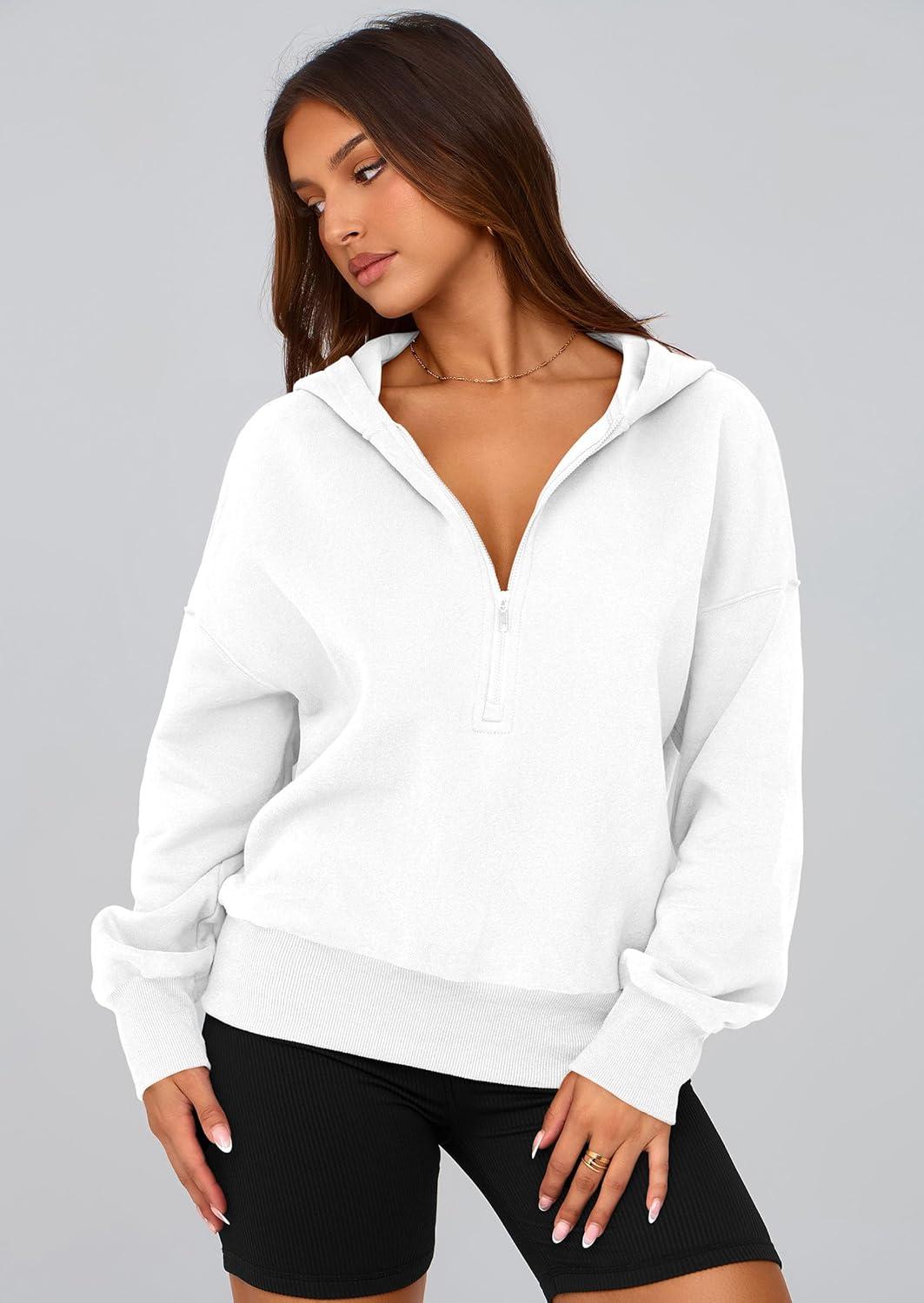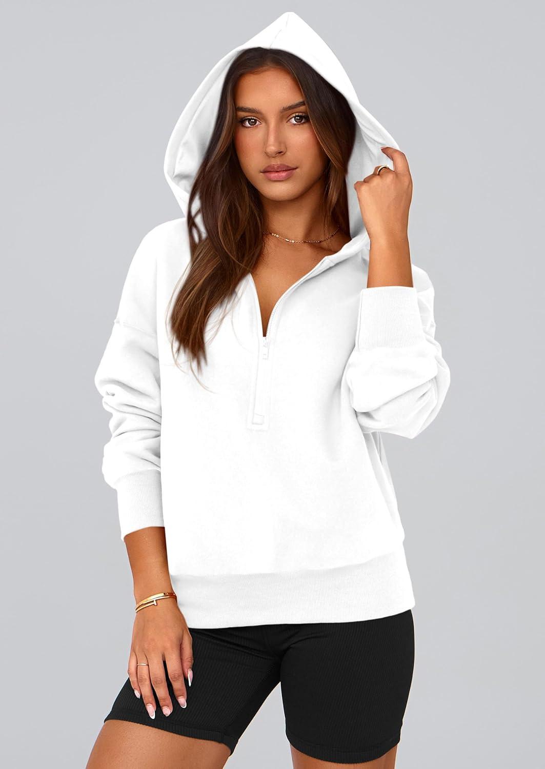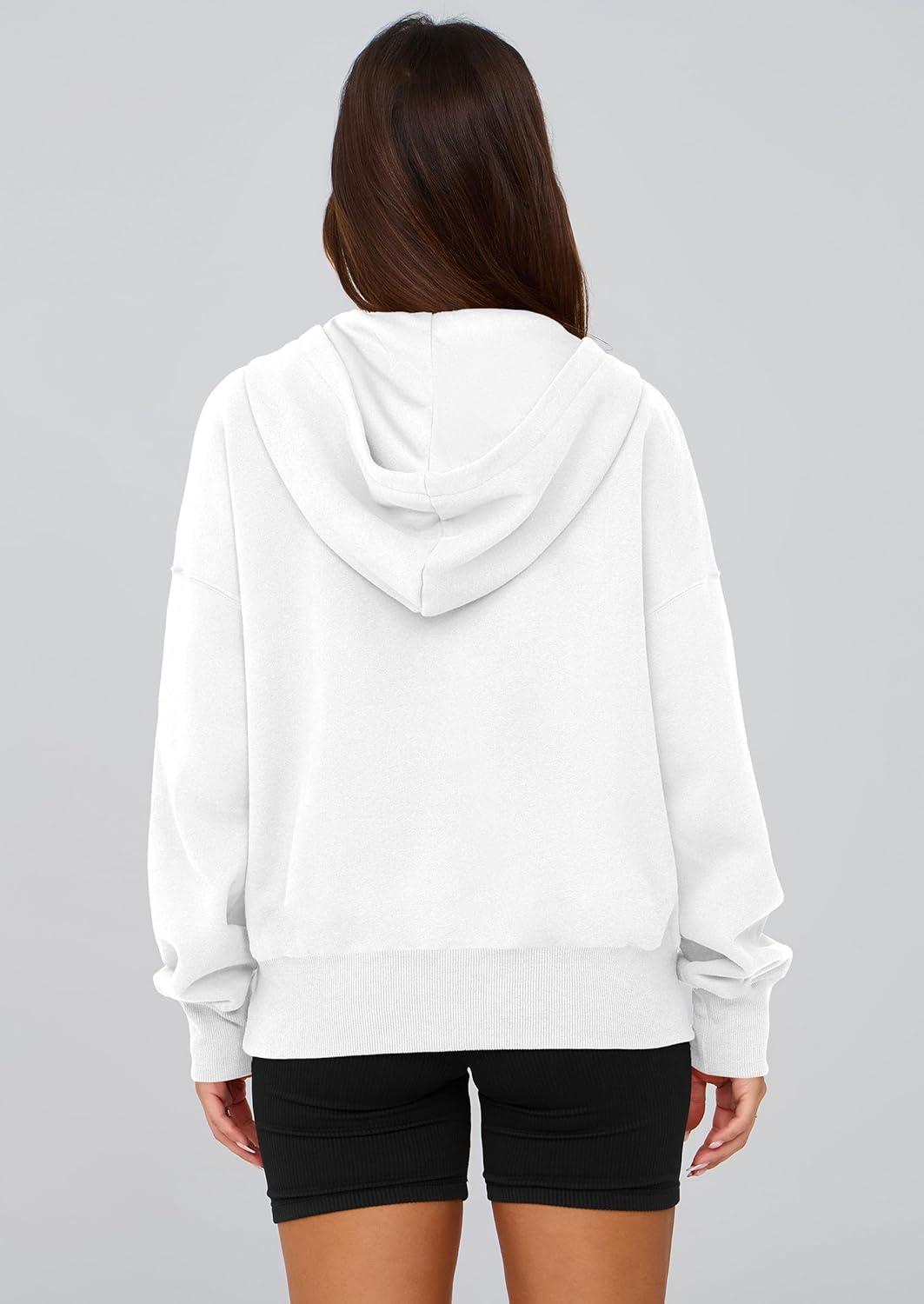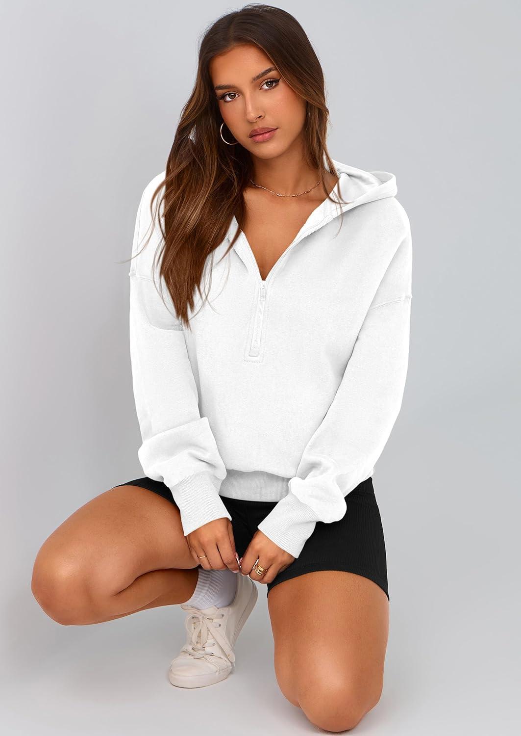 PRETTYGARDEN Women’s 2025 Fall Hooded Sweatshirts Long Sleeve Half Zip Cropped Hoodies Pullover Winter Fashion Clothes(White)
