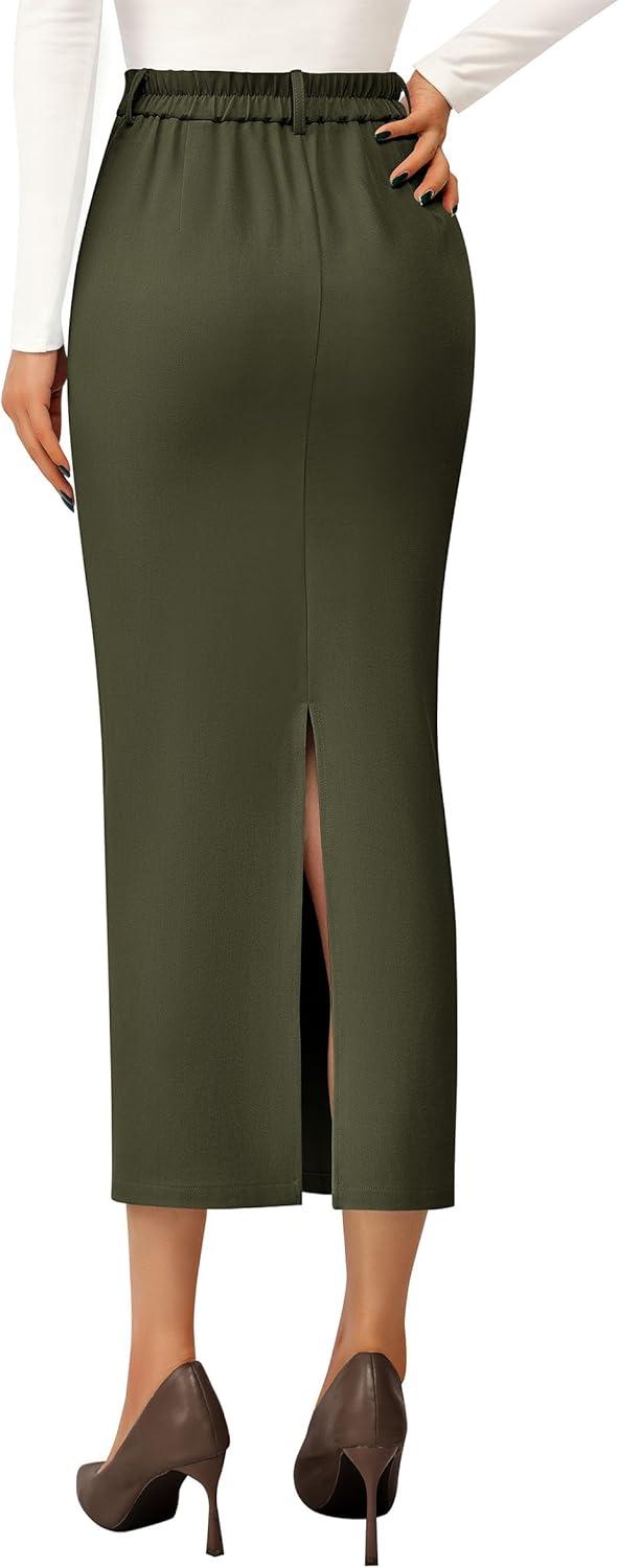 PRETTYGARDEN Women's 2025 Fall Maxi Pencil Skirt High Waisted Slit Work Office Trendy Long Skirts Business Casual Outfits(Army Green)