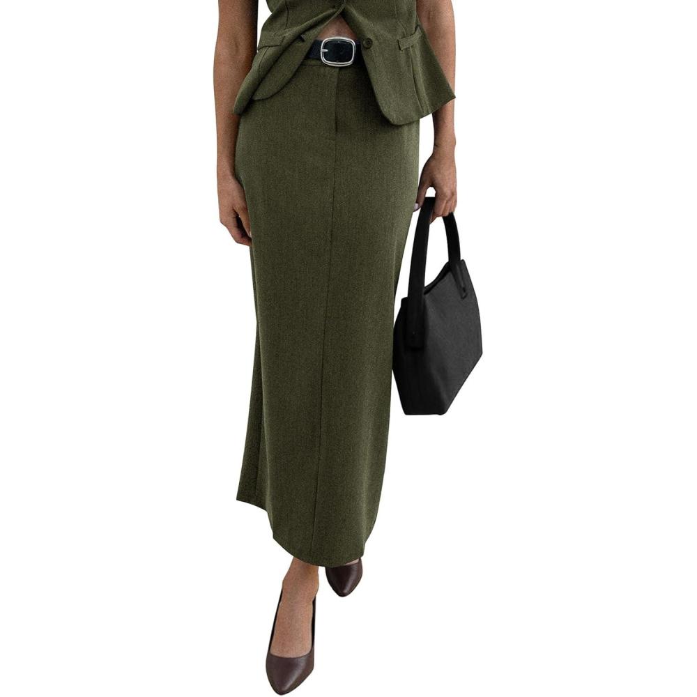 PRETTYGARDEN Women’s 2025 Fall Maxi Pencil Skirt High Waisted Slit Work Office Trendy Long Skirts Business Casual Outfits(Army Green)
