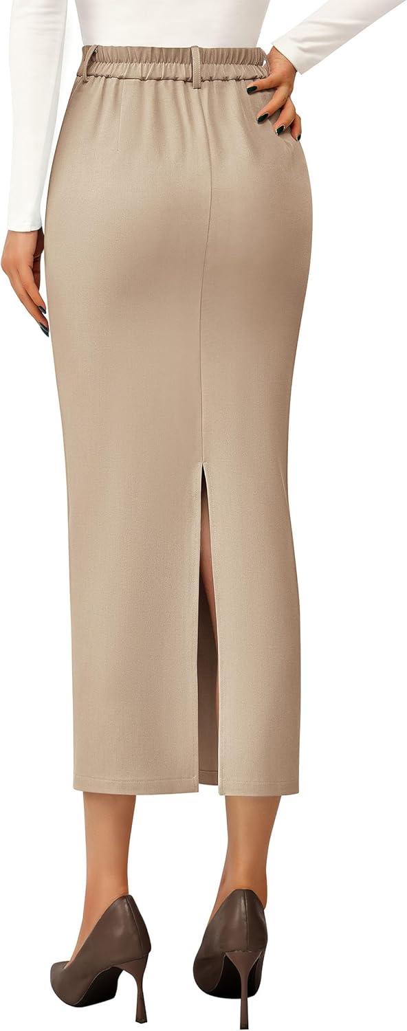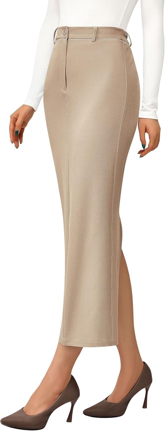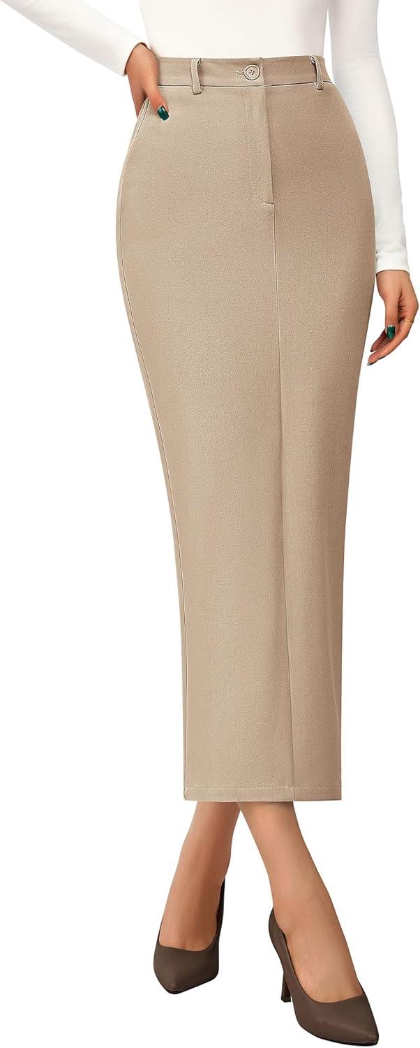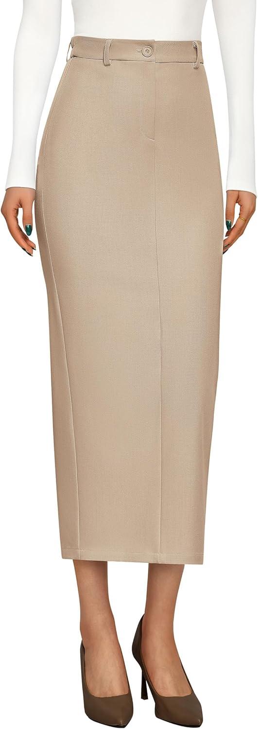 PRETTYGARDEN Women's 2025 Fall Maxi Pencil Skirt High Waisted Slit Work Office Trendy Long Skirts Business Casual Outfits(Beige)