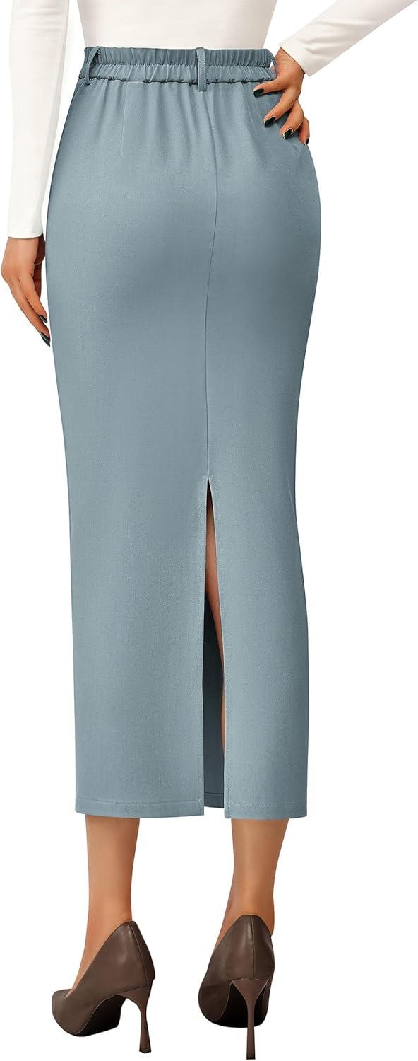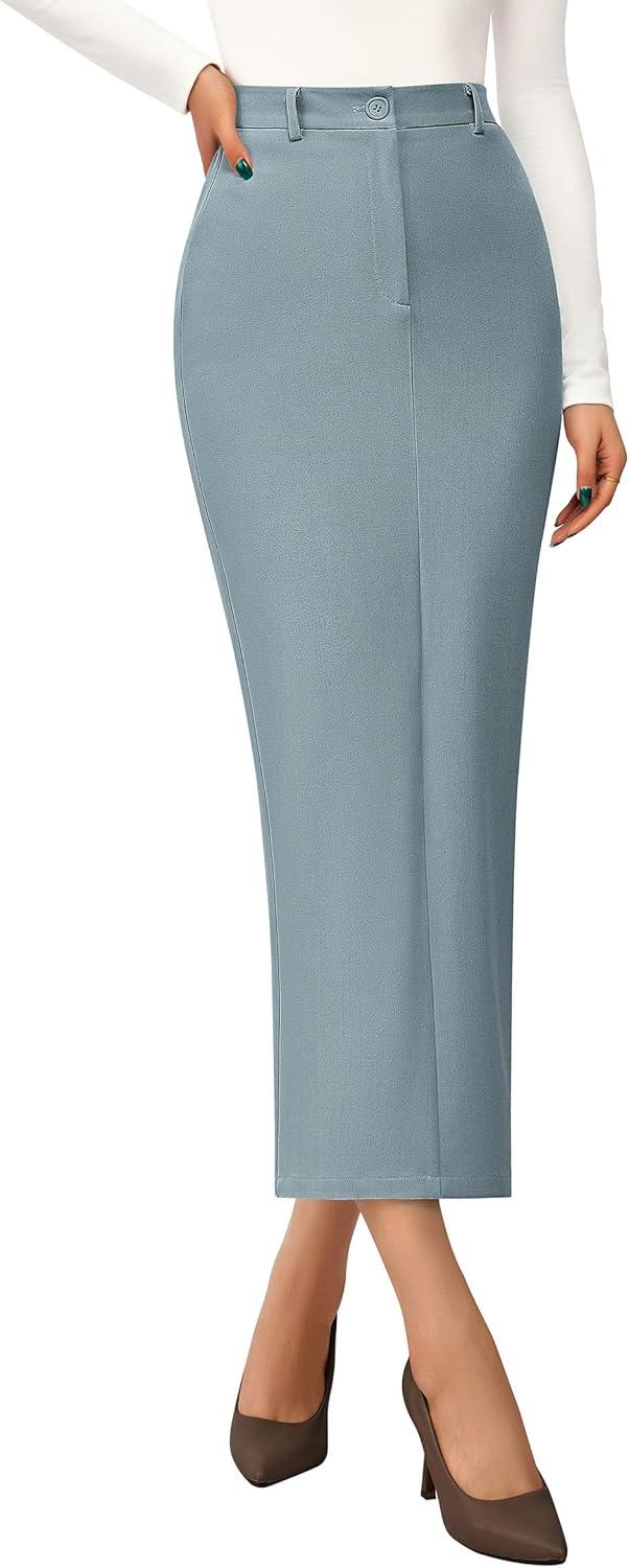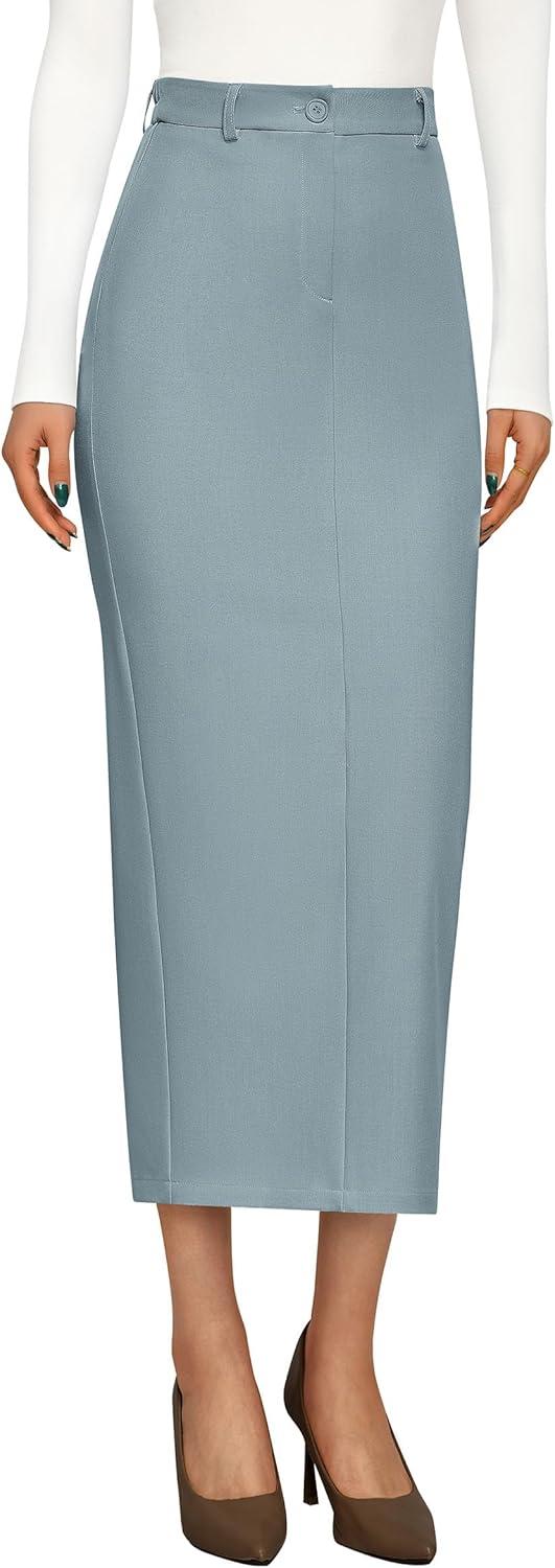 PRETTYGARDEN Women’s 2025 Fall Maxi Pencil Skirt High Waisted Slit Work Office Trendy Long Skirts Business Casual Outfits(Light Blue)