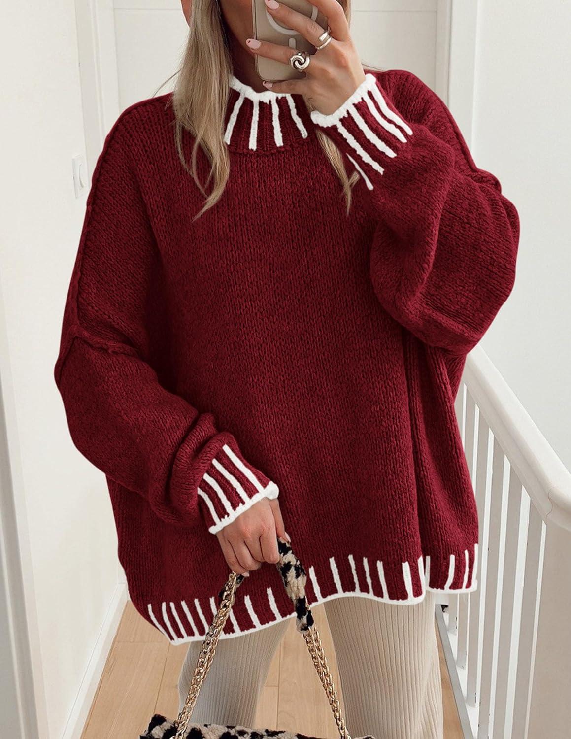 PRETTYGARDEN Women’s 2025 Fall Oversized Pullover Sweaters Long Sleeve Mock Neck Chunky Knit Jumper Tops Winter Clothing(Wine Red)