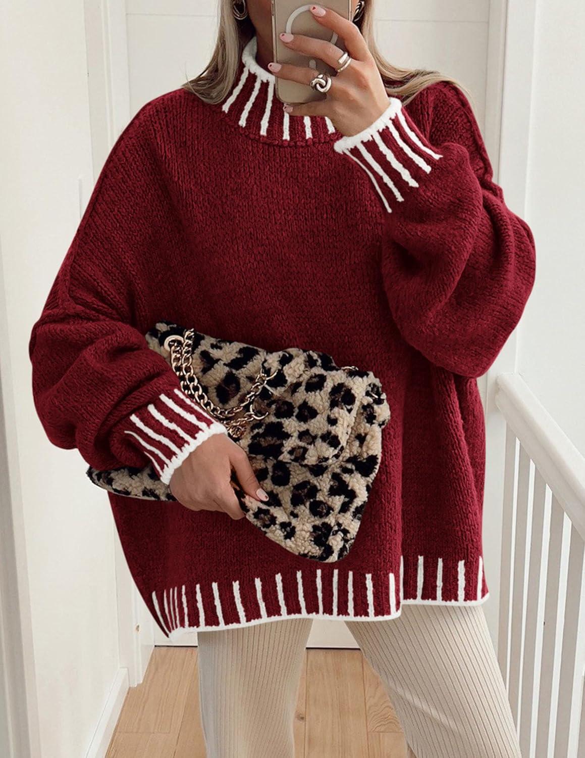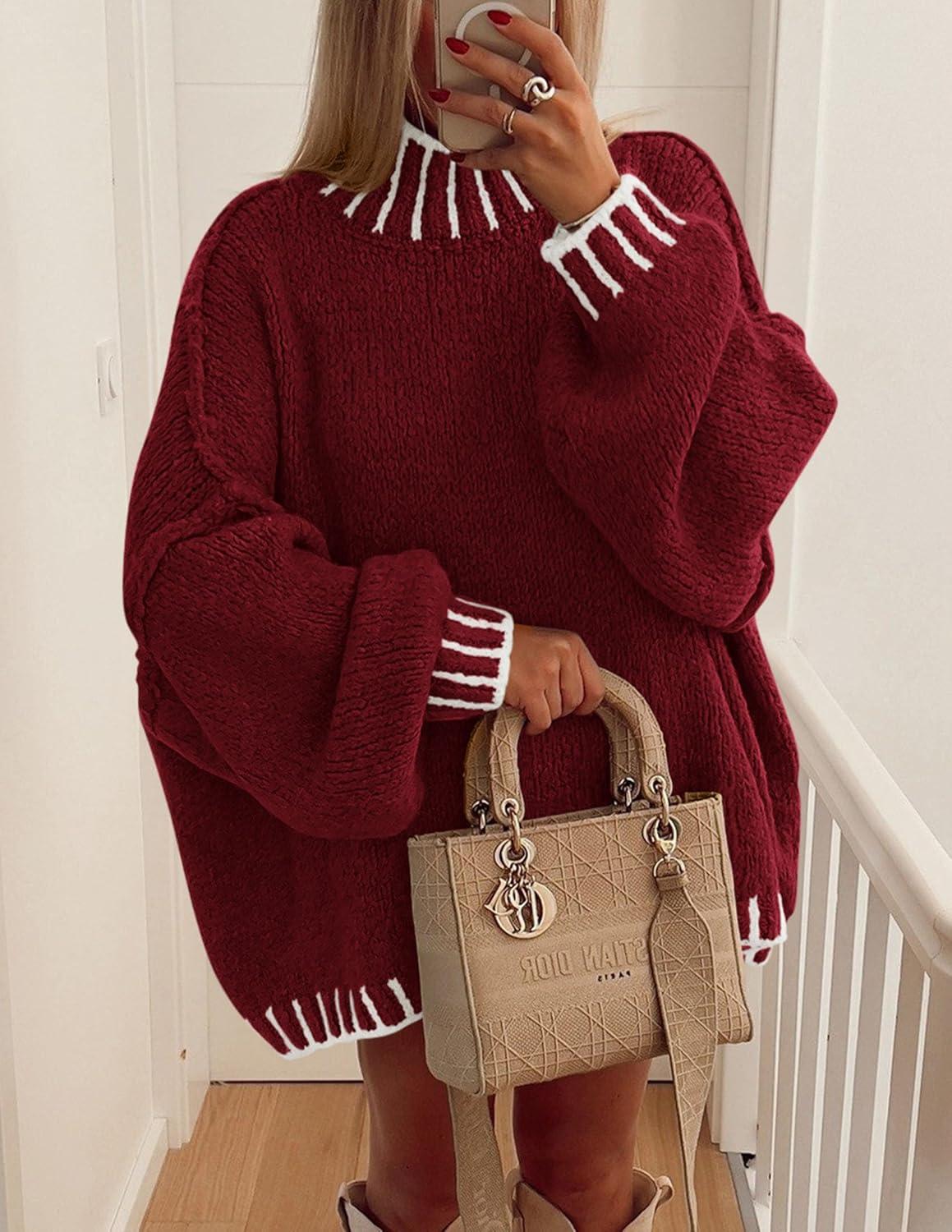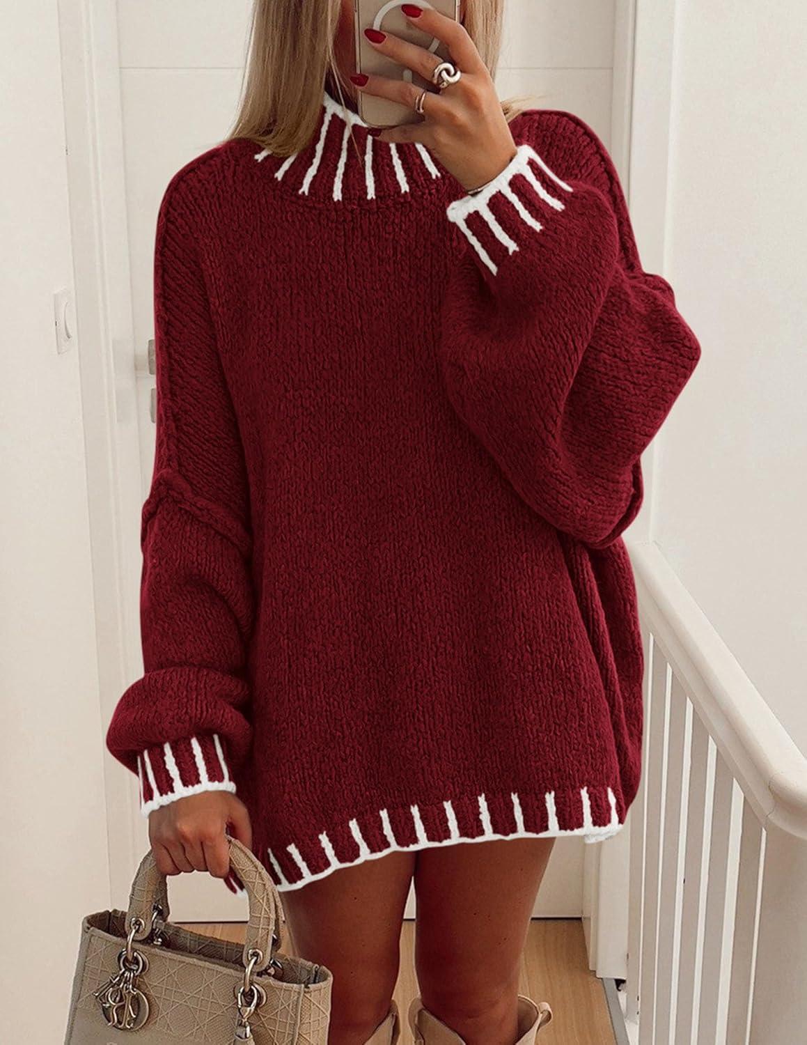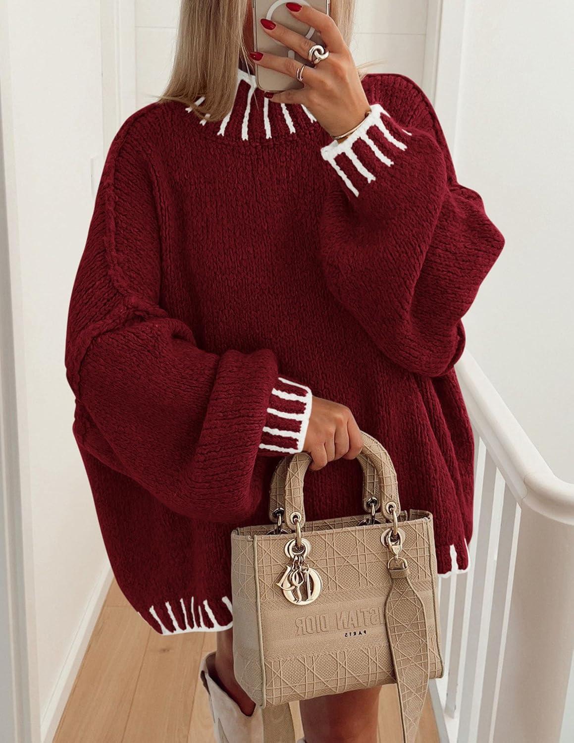 PRETTYGARDEN Women's 2025 Fall Oversized Pullover Sweaters Long Sleeve Mock Neck Chunky Knit Jumper Tops Winter Clothing(Wine Red)