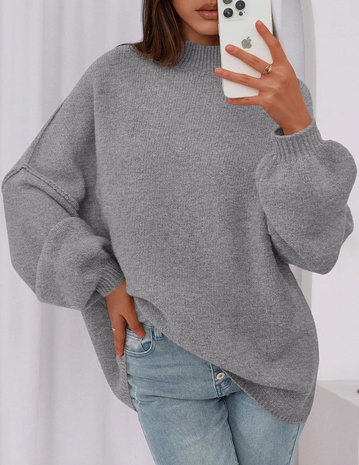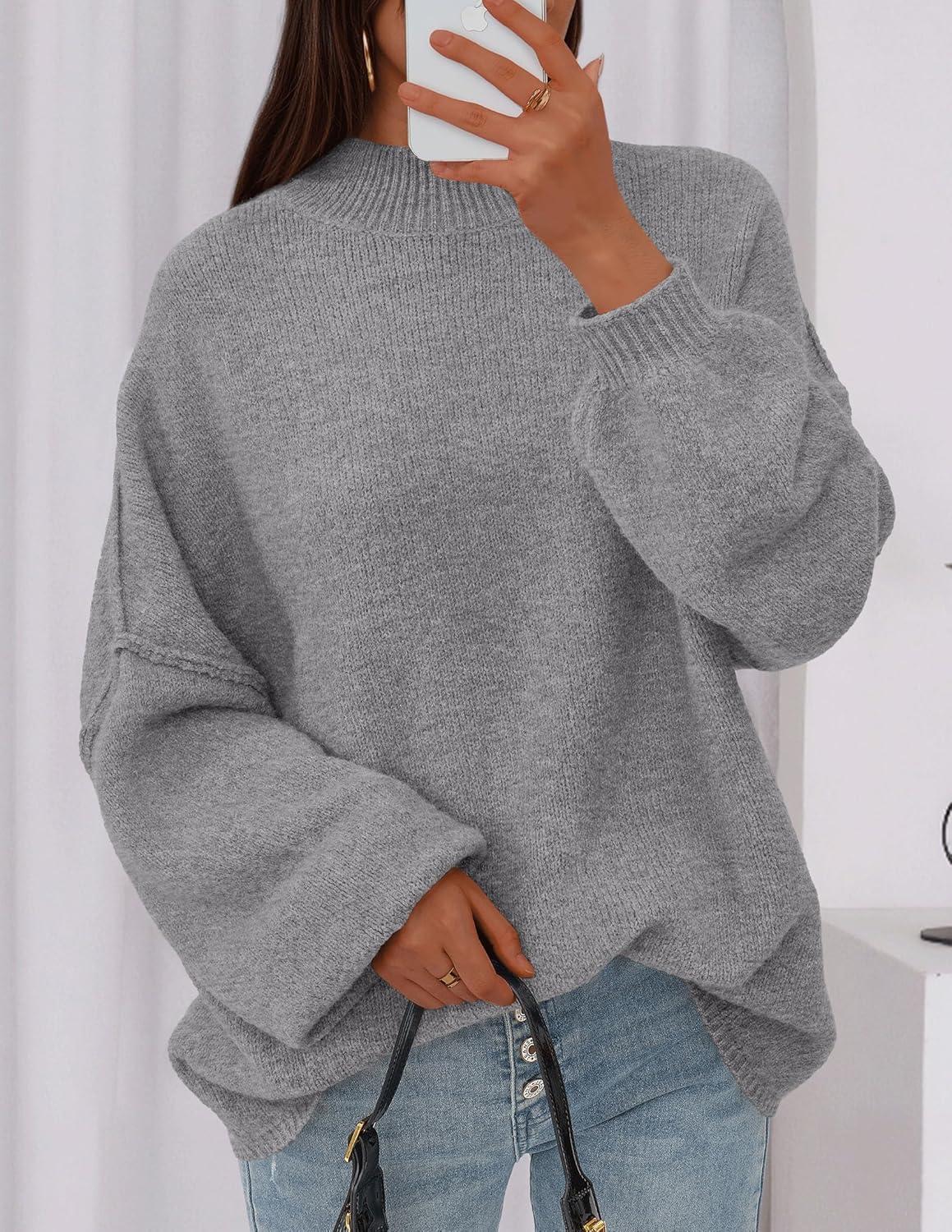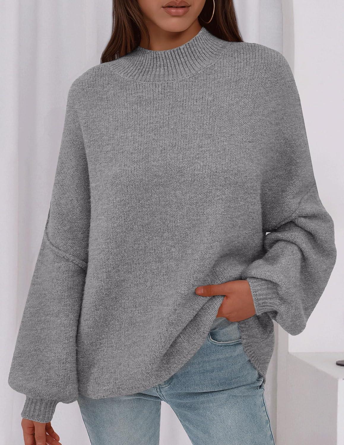 PRETTYGARDEN Women's 2025 Fall Oversized Sweaters Chunky Knit Mock Neck Long Sleeve Casual Trendy Pullover Winter Clothes(Dark Grey)