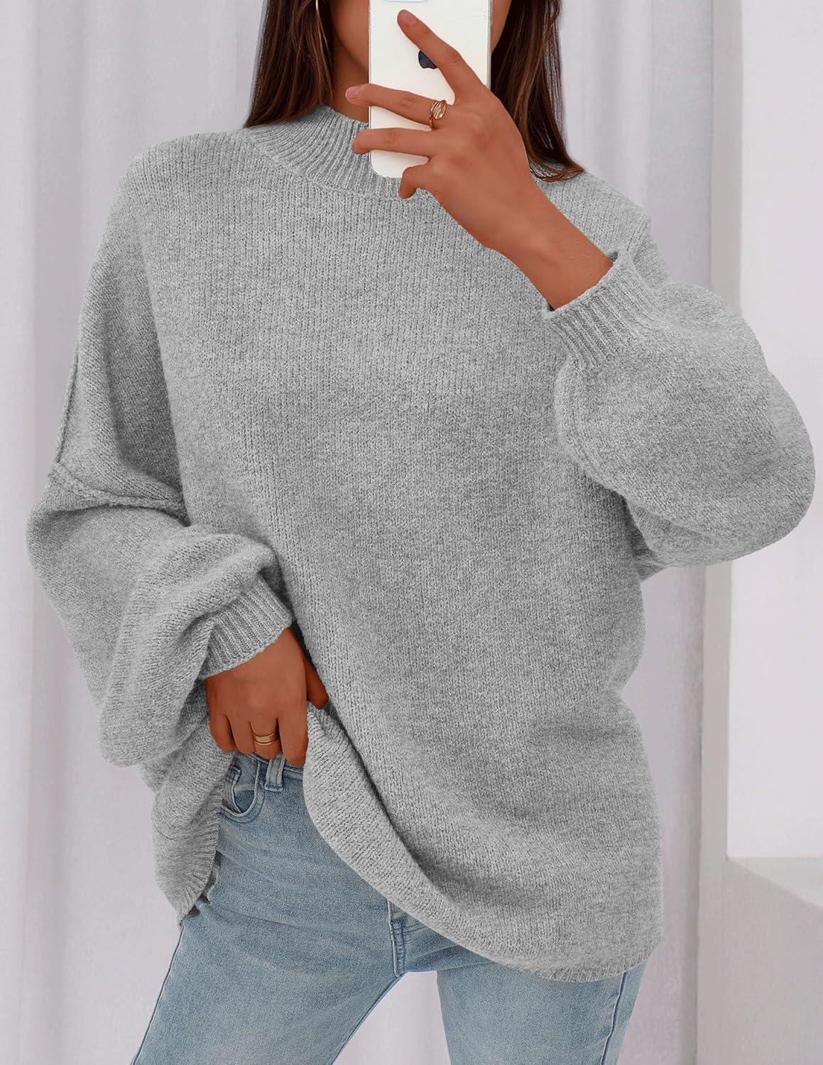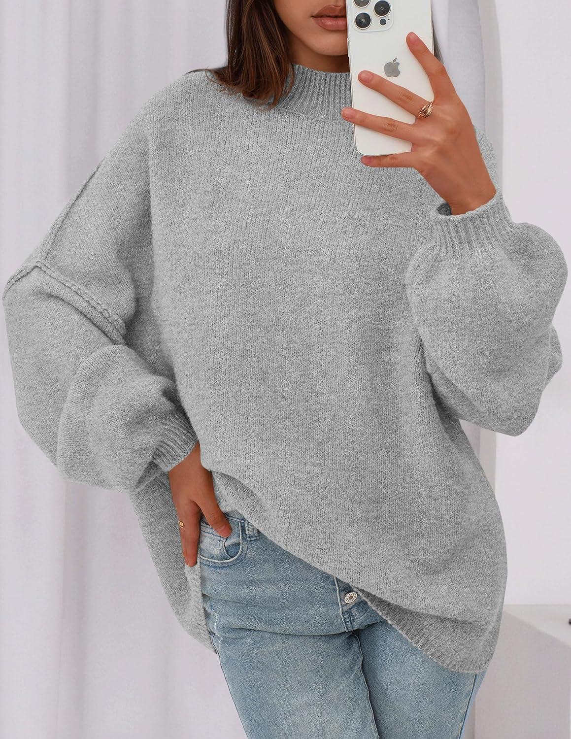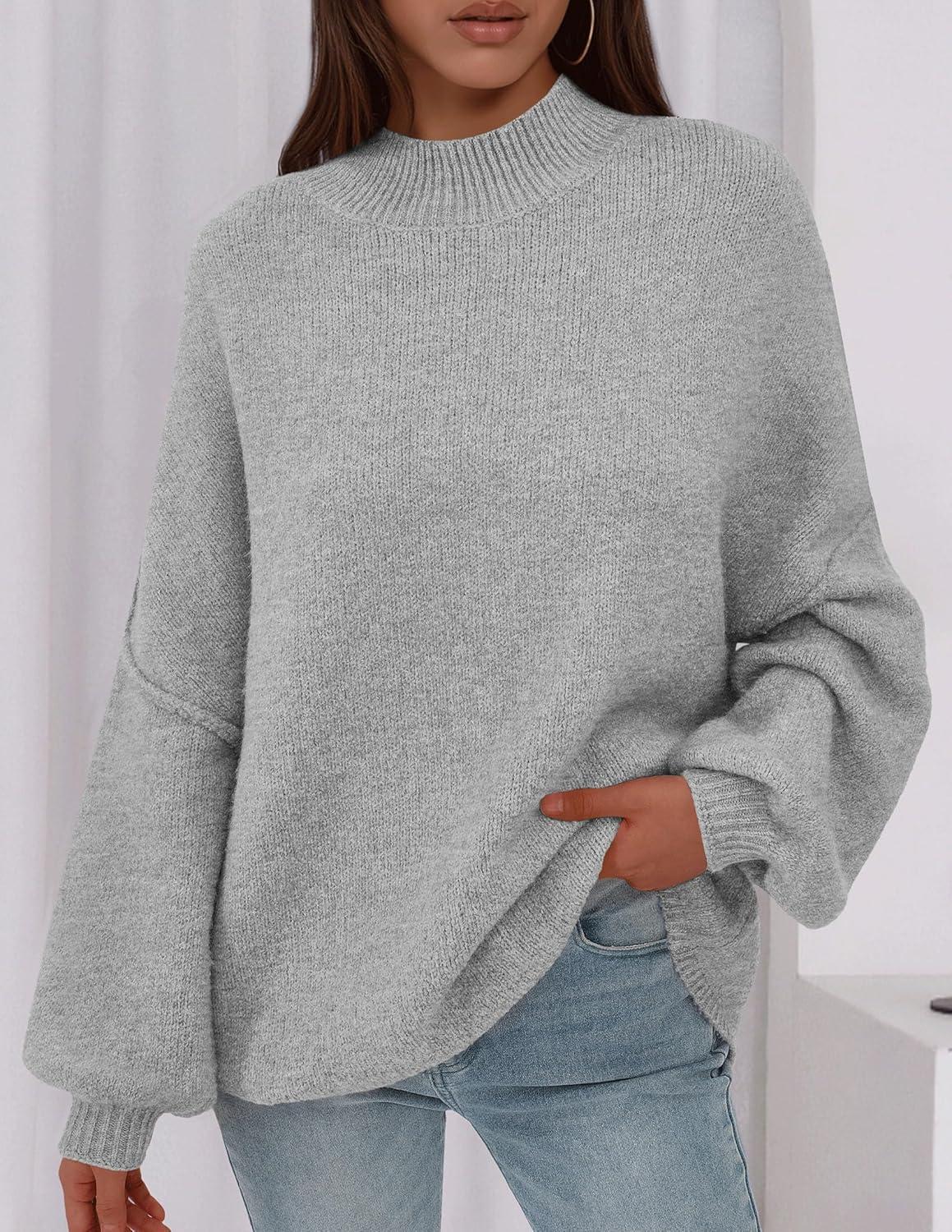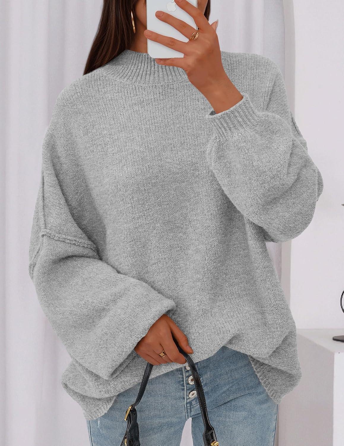 PRETTYGARDEN Women's 2025 Fall Oversized Sweaters Chunky Knit Mock Neck Long Sleeve Casual Trendy Pullover Winter Clothes(Light Grey)