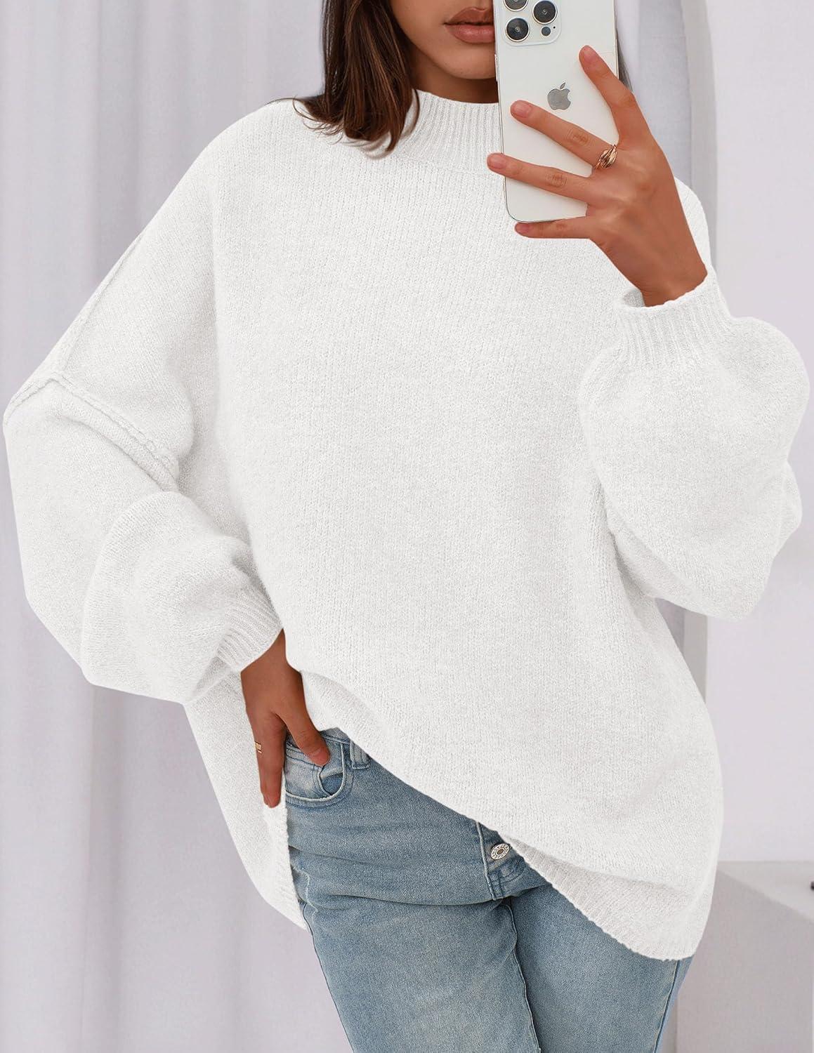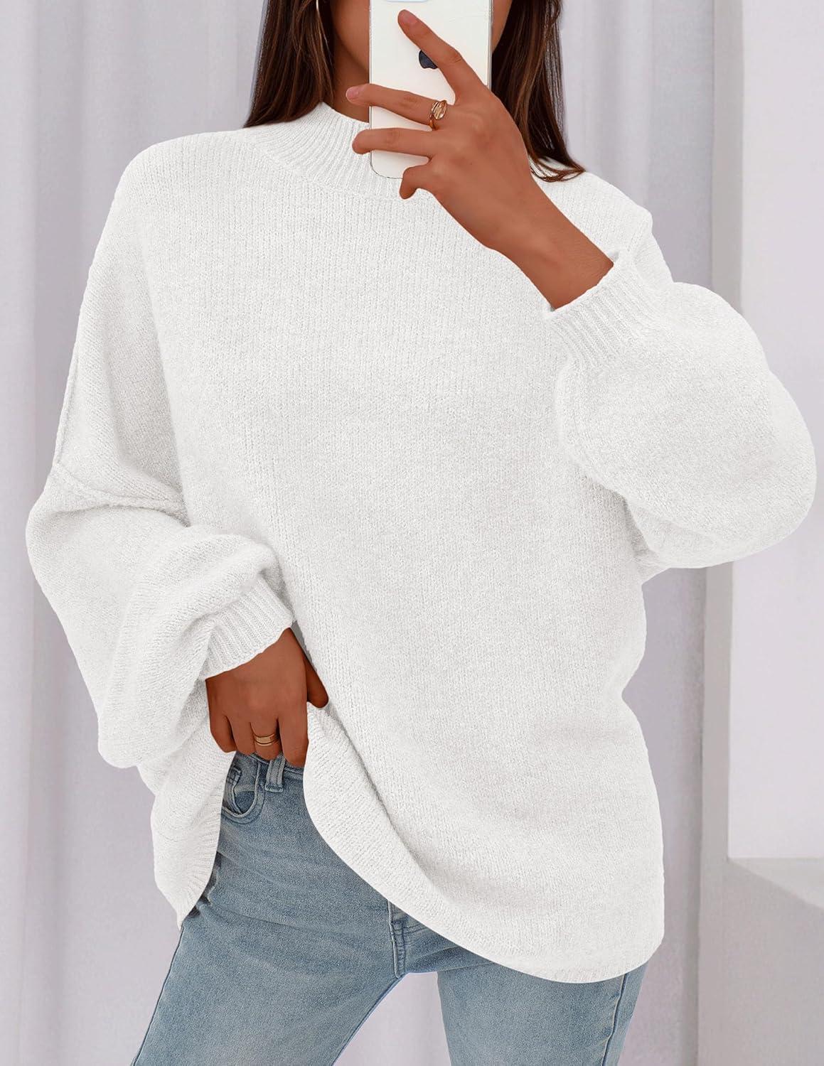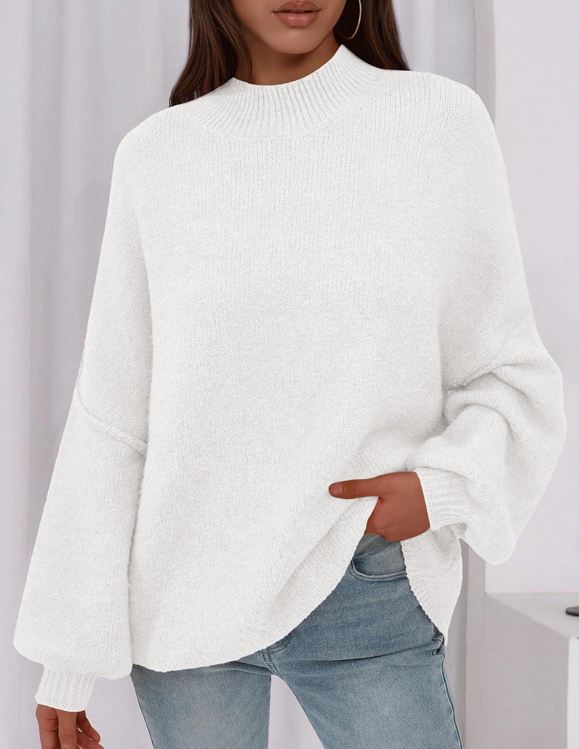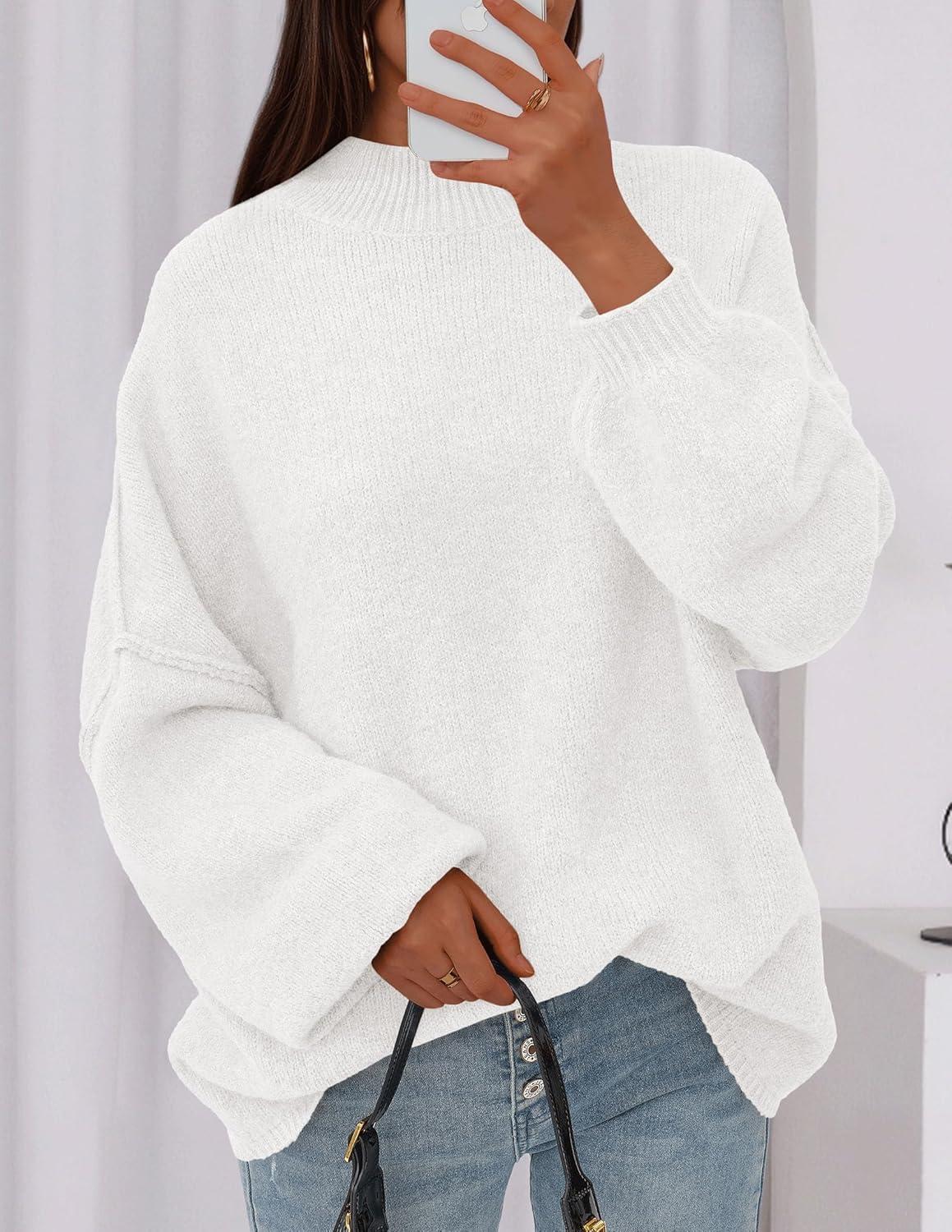 PRETTYGARDEN Women's 2025 Fall Oversized Sweaters Chunky Knit Mock Neck Long Sleeve Casual Trendy Pullover Winter Clothes(White)