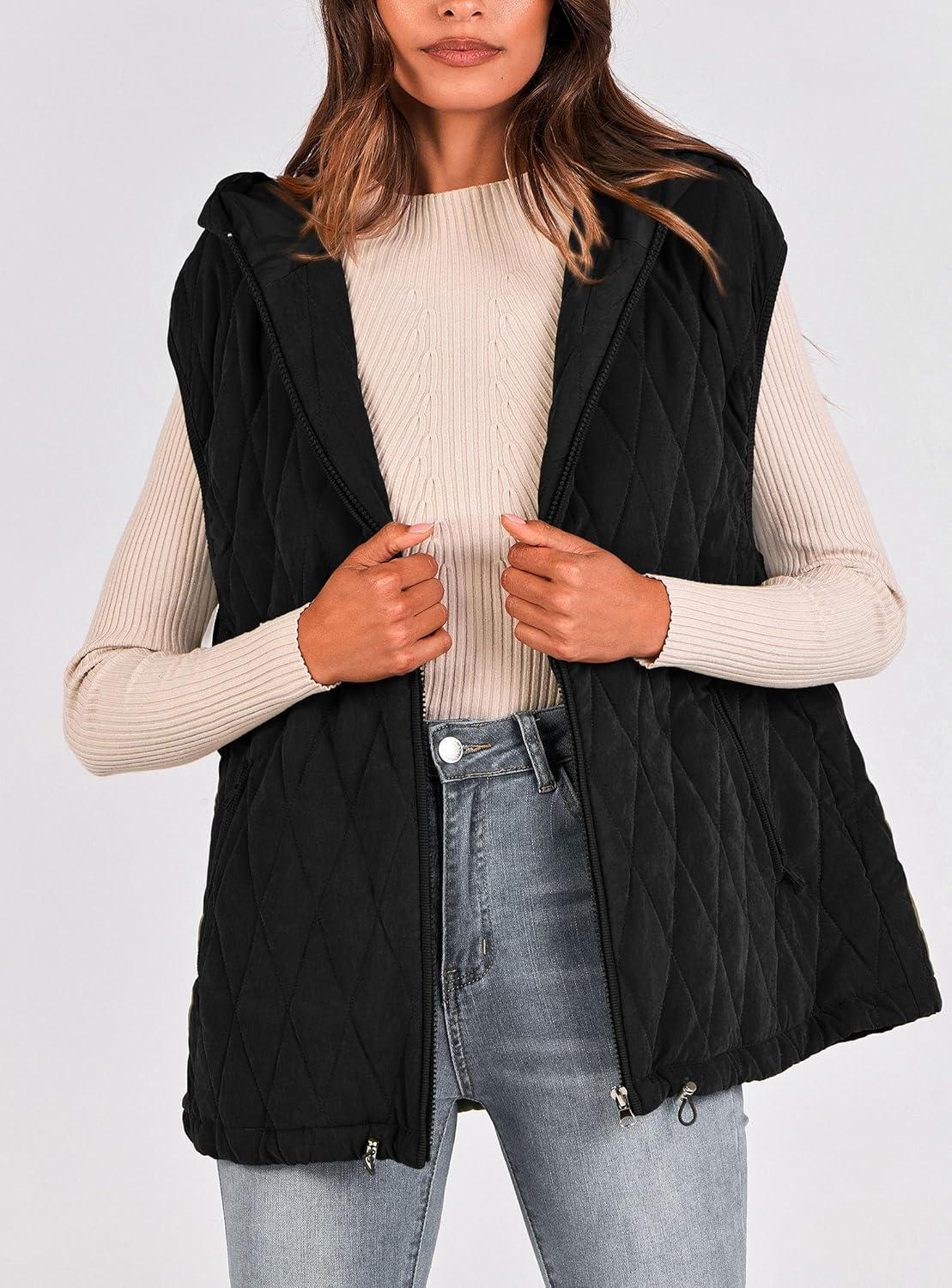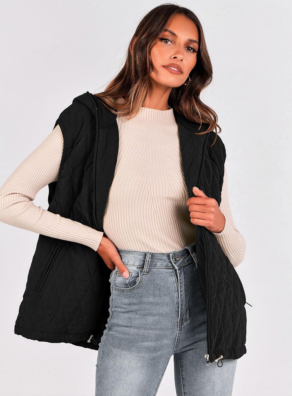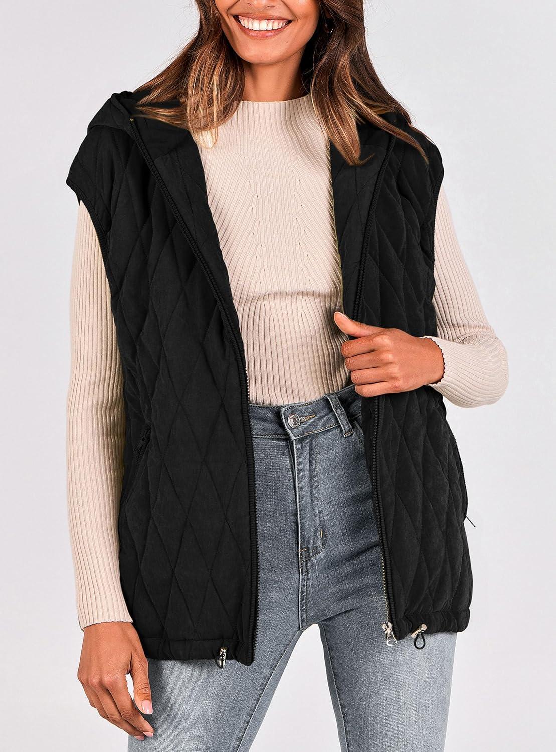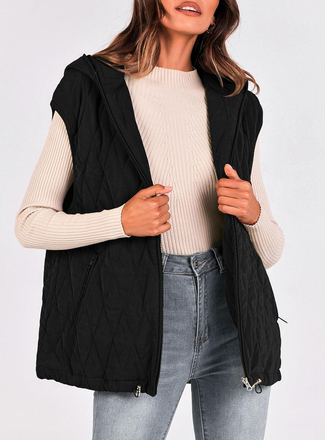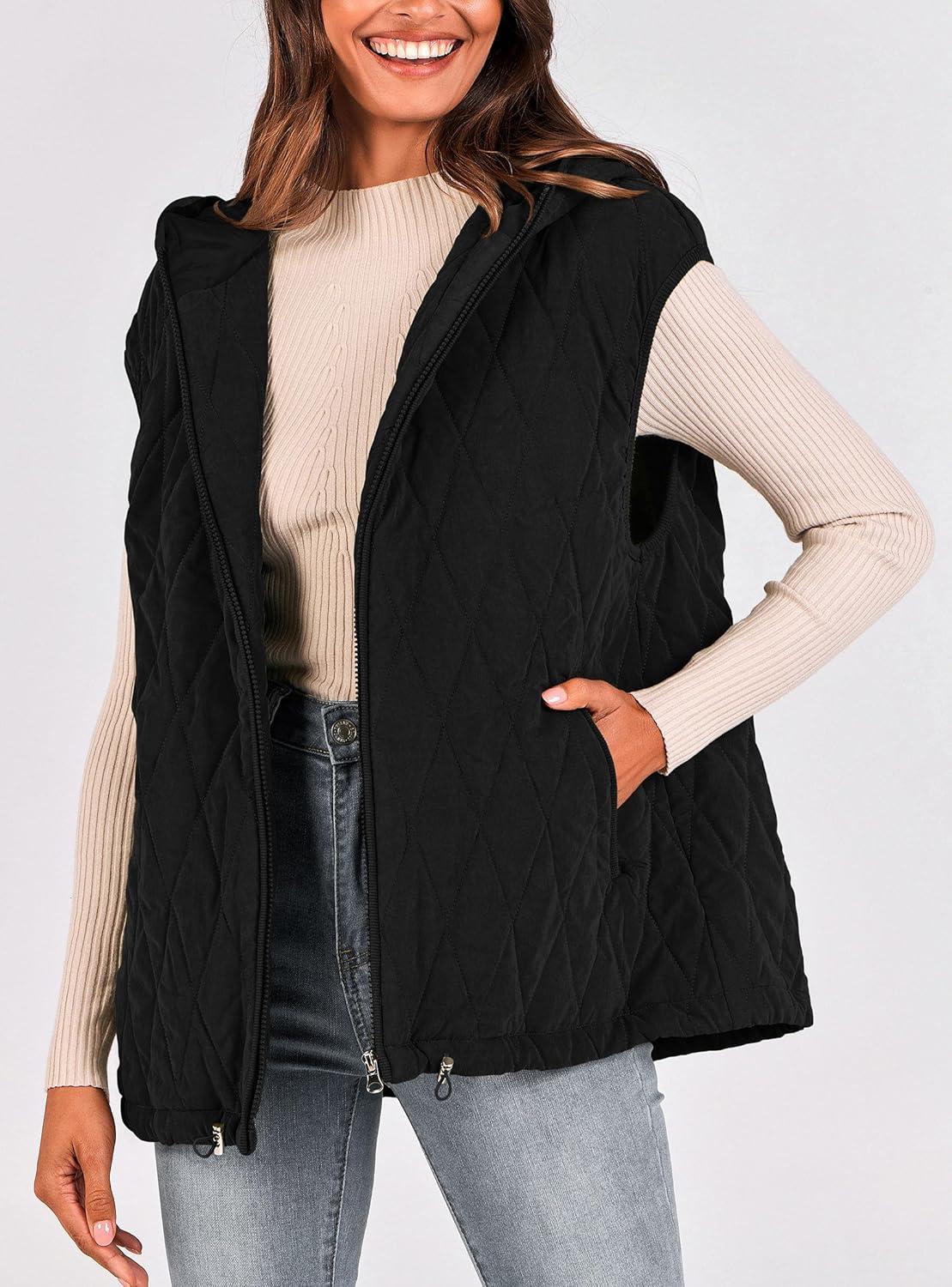 PRETTYGARDEN Women's 2025 Fall Spring Vest Casual Sleeveless Hooded Zip Up Jacket Trendy Winter Coat Outerwear(Black)
