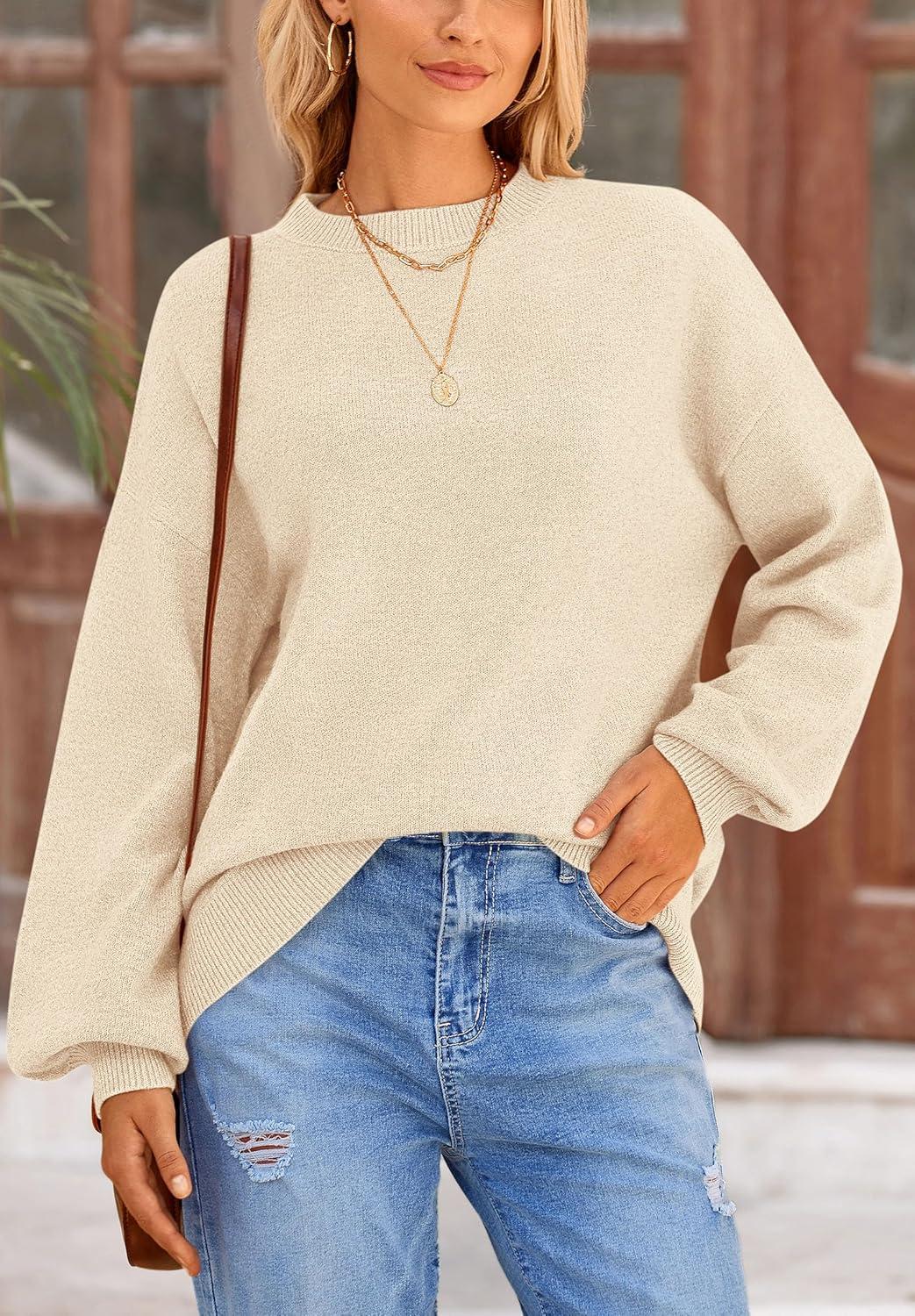 PRETTYGARDEN Women’s 2025 Fall Sweaters Casual Crew Neck Long Sleeve Pullover Tops Ribbed Knit Loose Fit Winter Clothes(Beige)