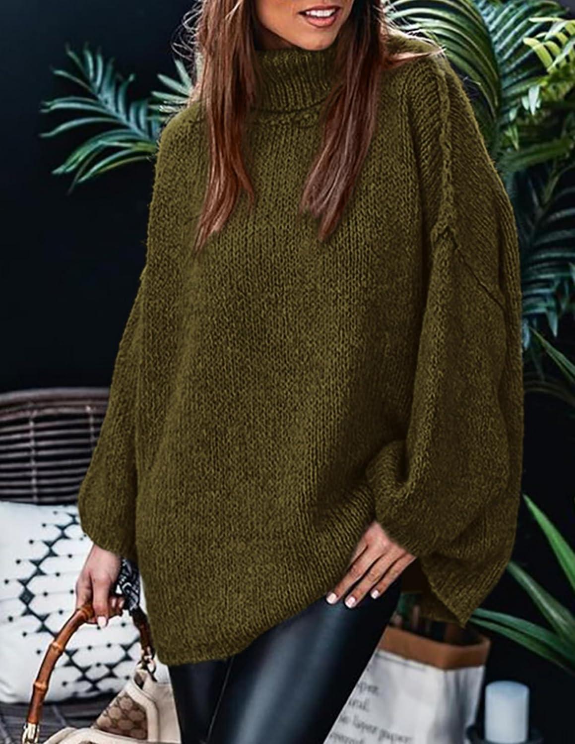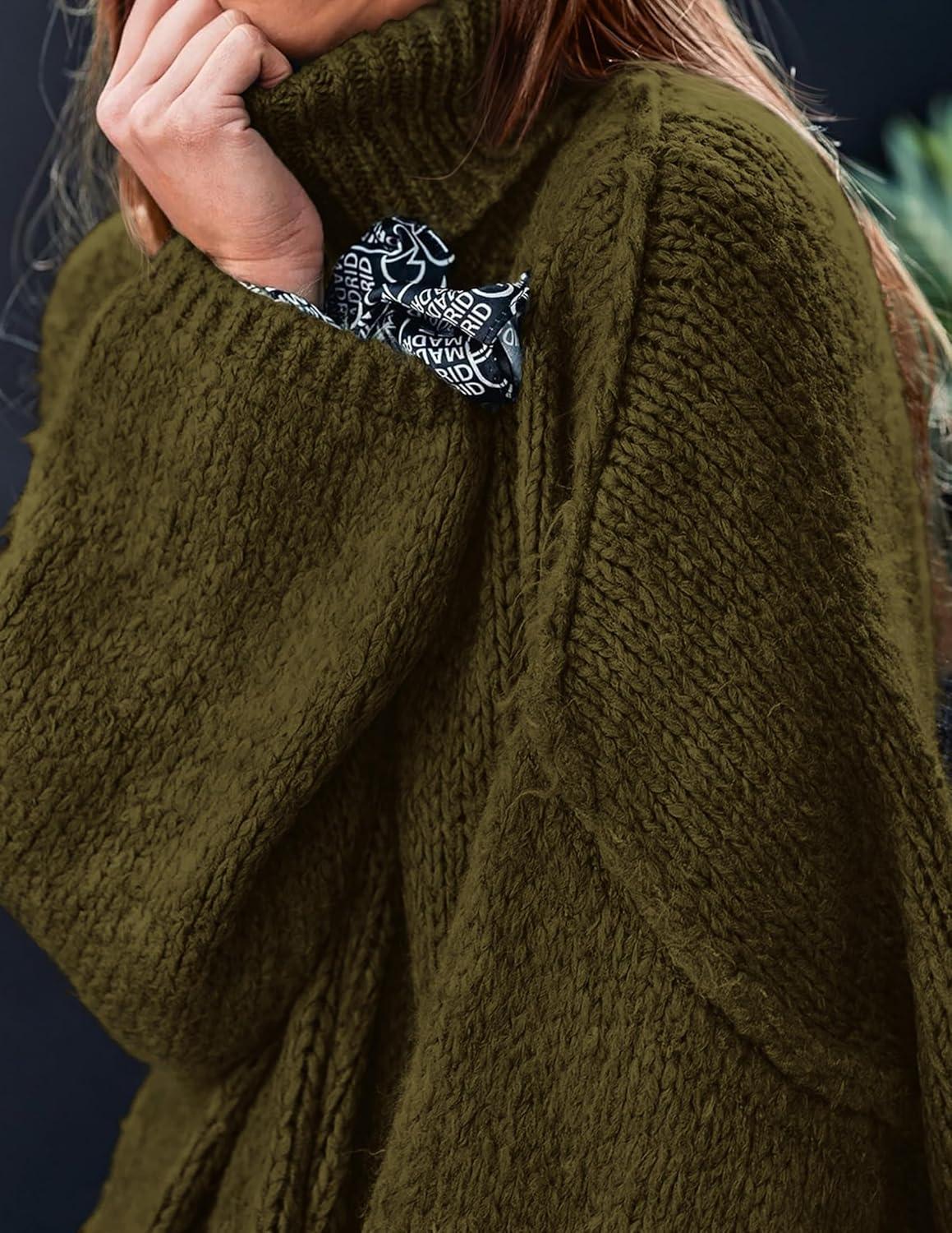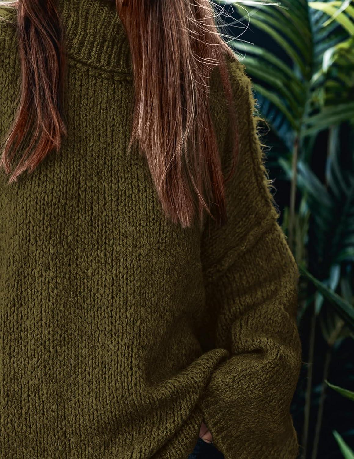 PRETTYGARDEN Women's 2025 Fall Turtleneck Oversized Sweaters Long Sleeve Chunky Knit Pullover Tops Winter Fashion Clothes(Army Green)