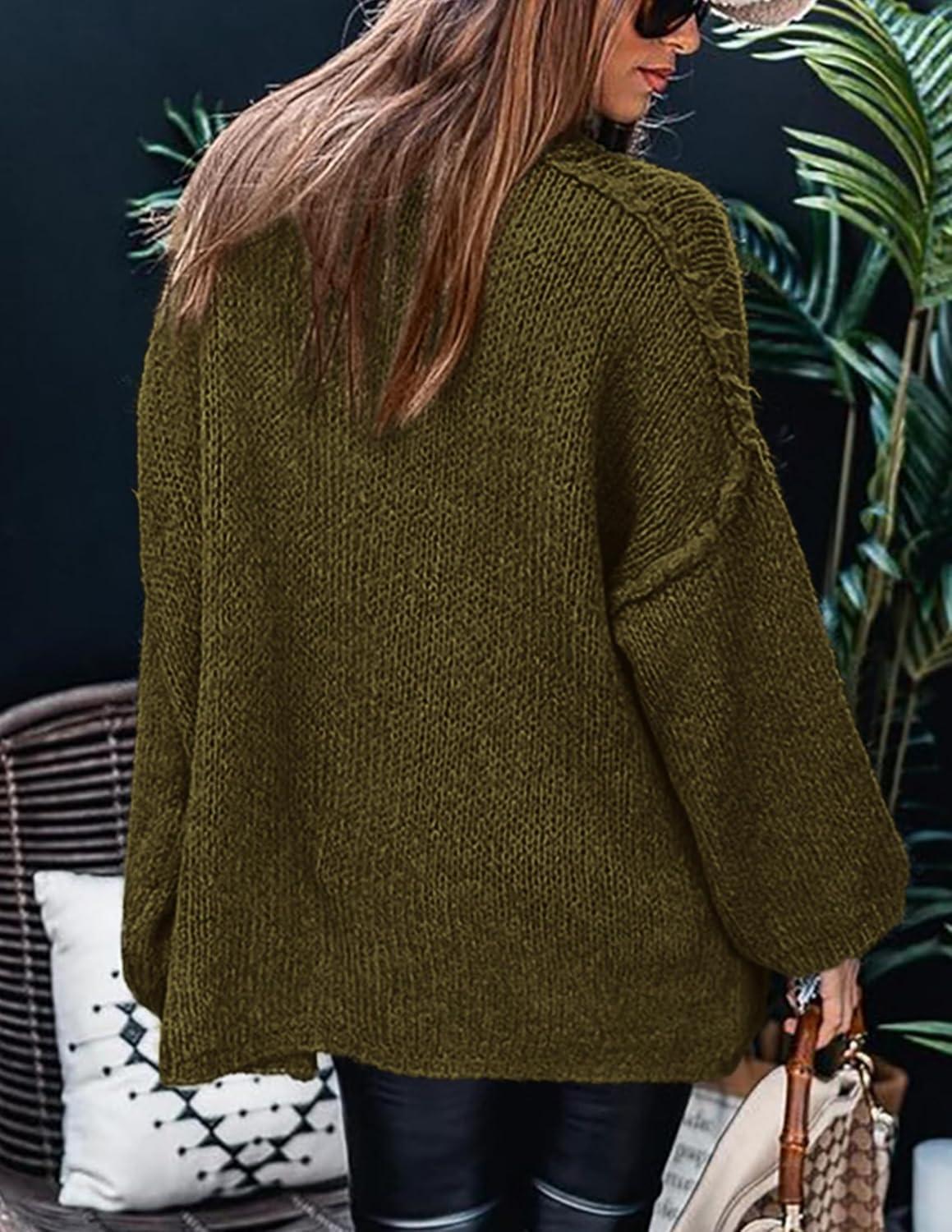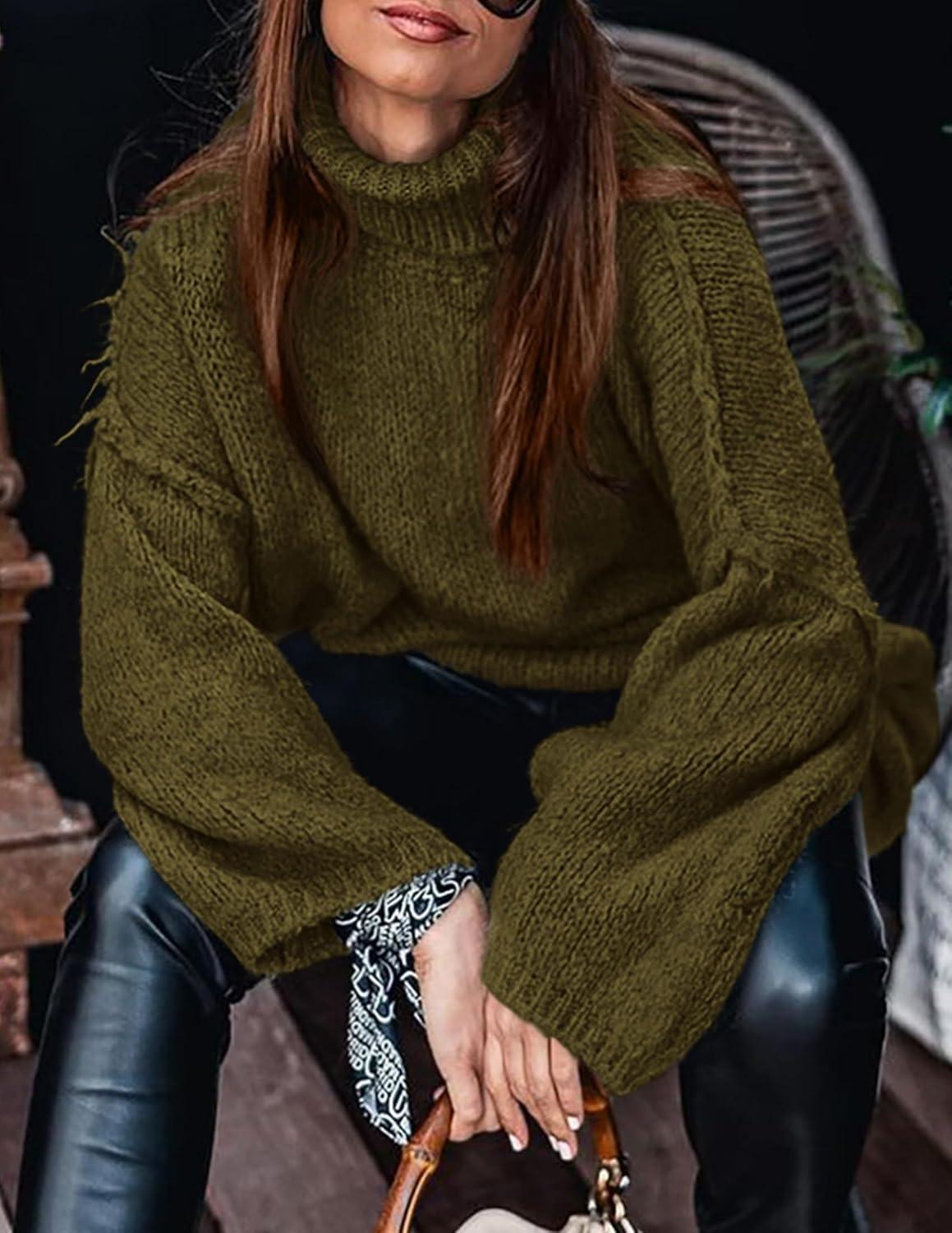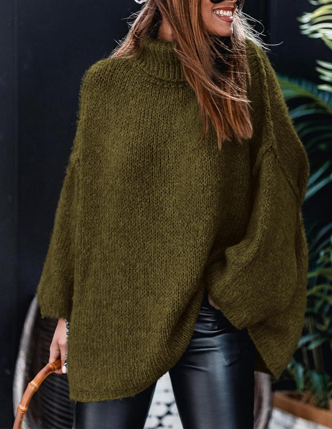PRETTYGARDEN Women's 2025 Fall Turtleneck Oversized Sweaters Long Sleeve Chunky Knit Pullover Tops Winter Fashion Clothes(Army Green)