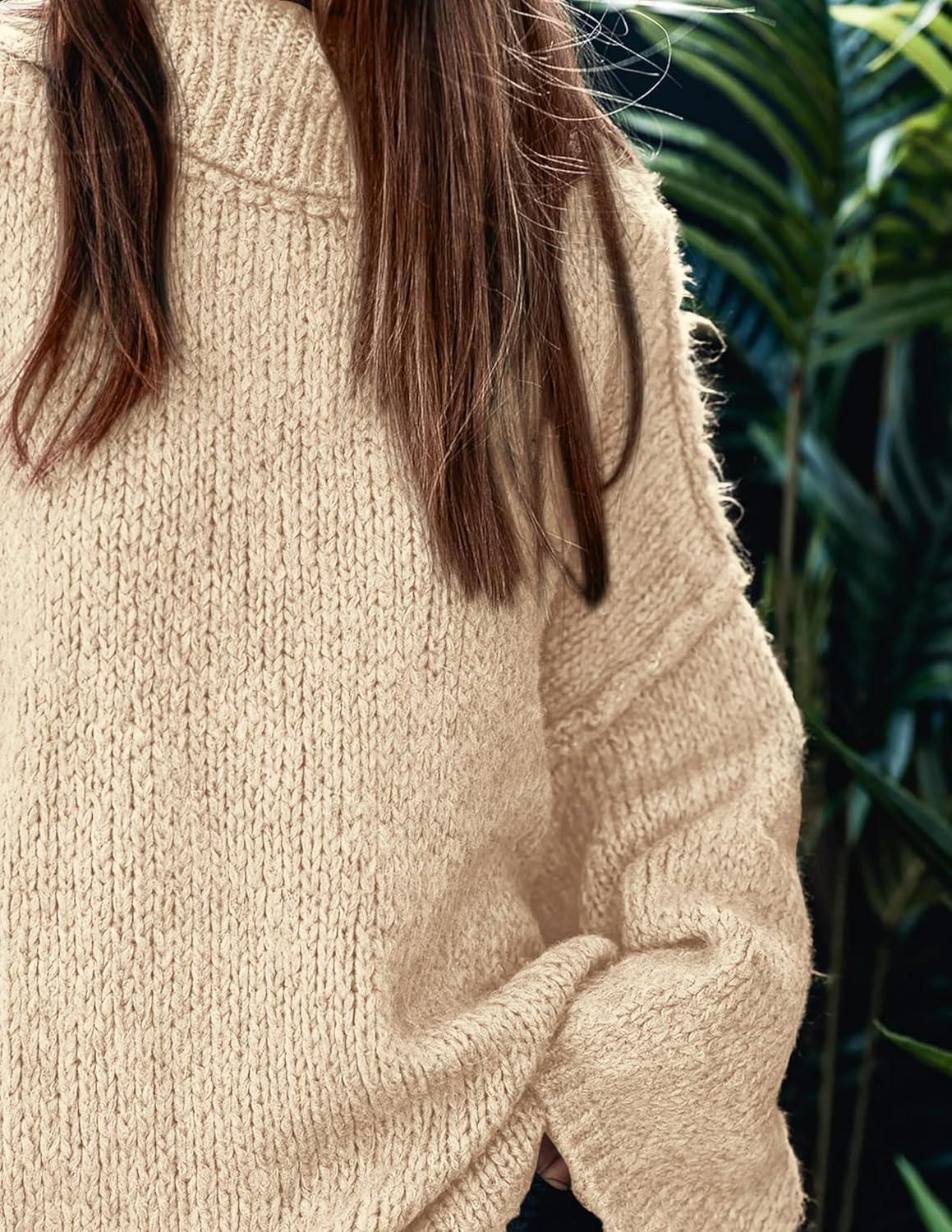 PRETTYGARDEN Women's 2025 Fall Turtleneck Oversized Sweaters Long Sleeve Chunky Knit Pullover Tops Winter Fashion Clothes(Beige)