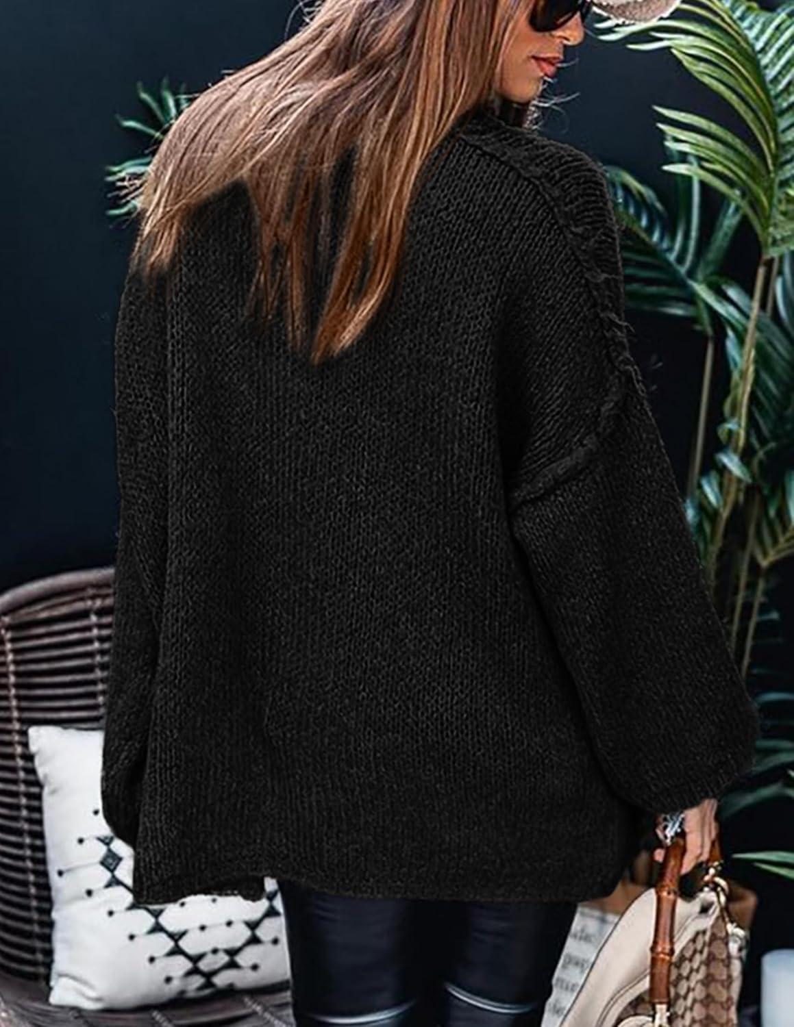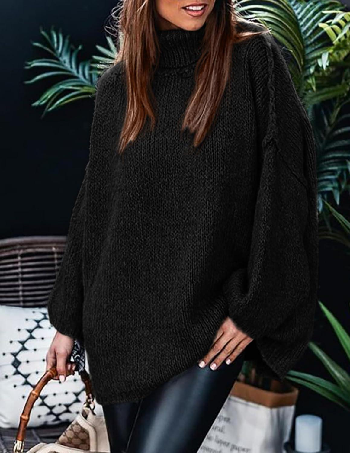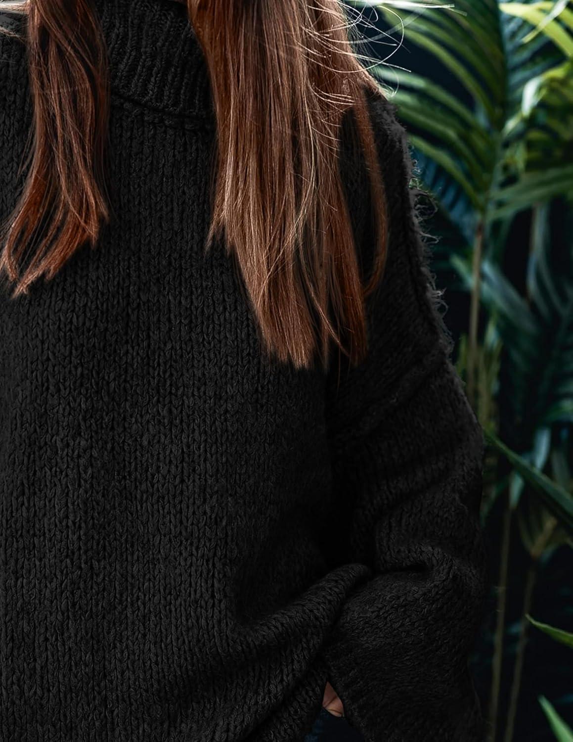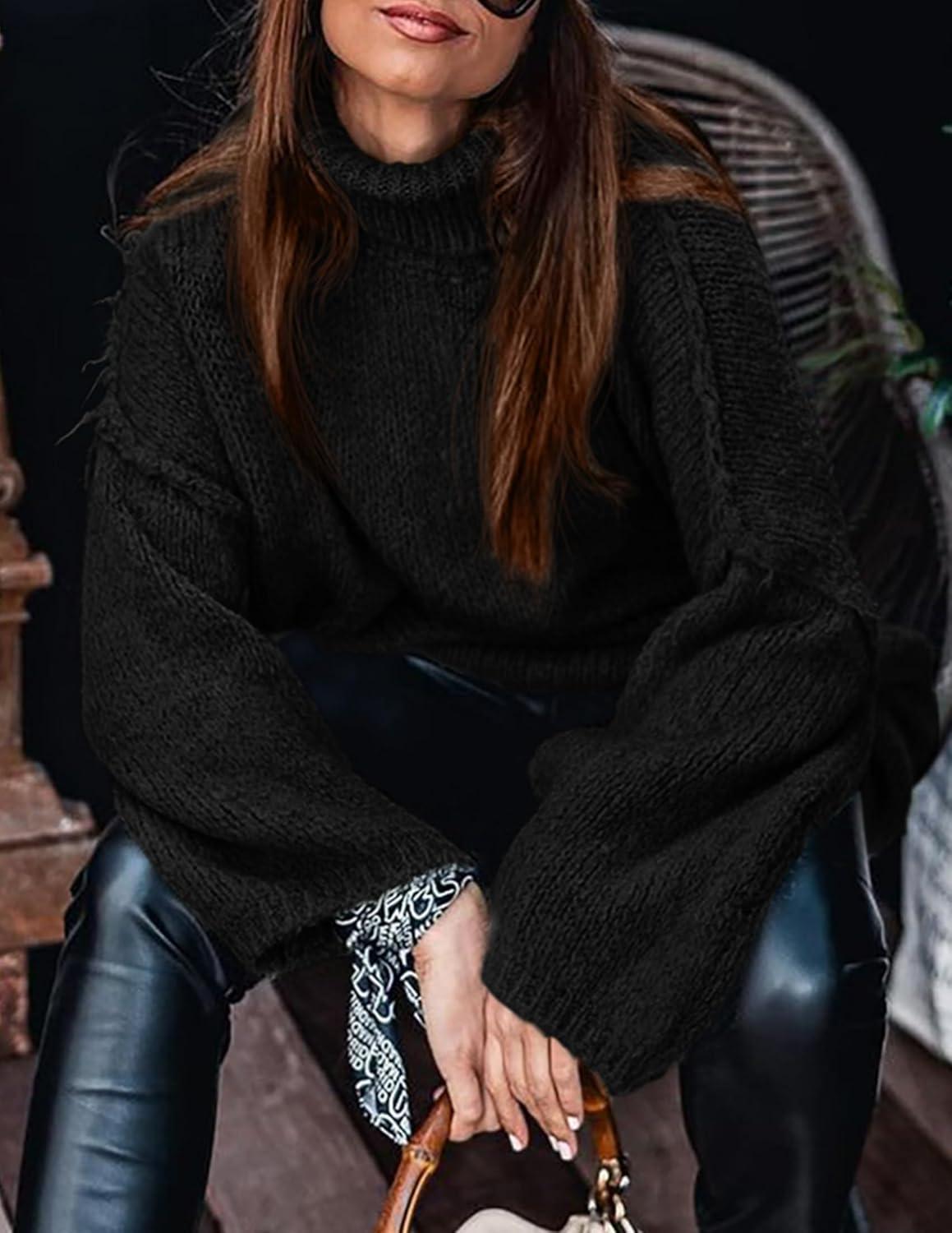 PRETTYGARDEN Women's 2025 Fall Turtleneck Oversized Sweaters Long Sleeve Chunky Knit Pullover Tops Winter Fashion Clothes(Black)