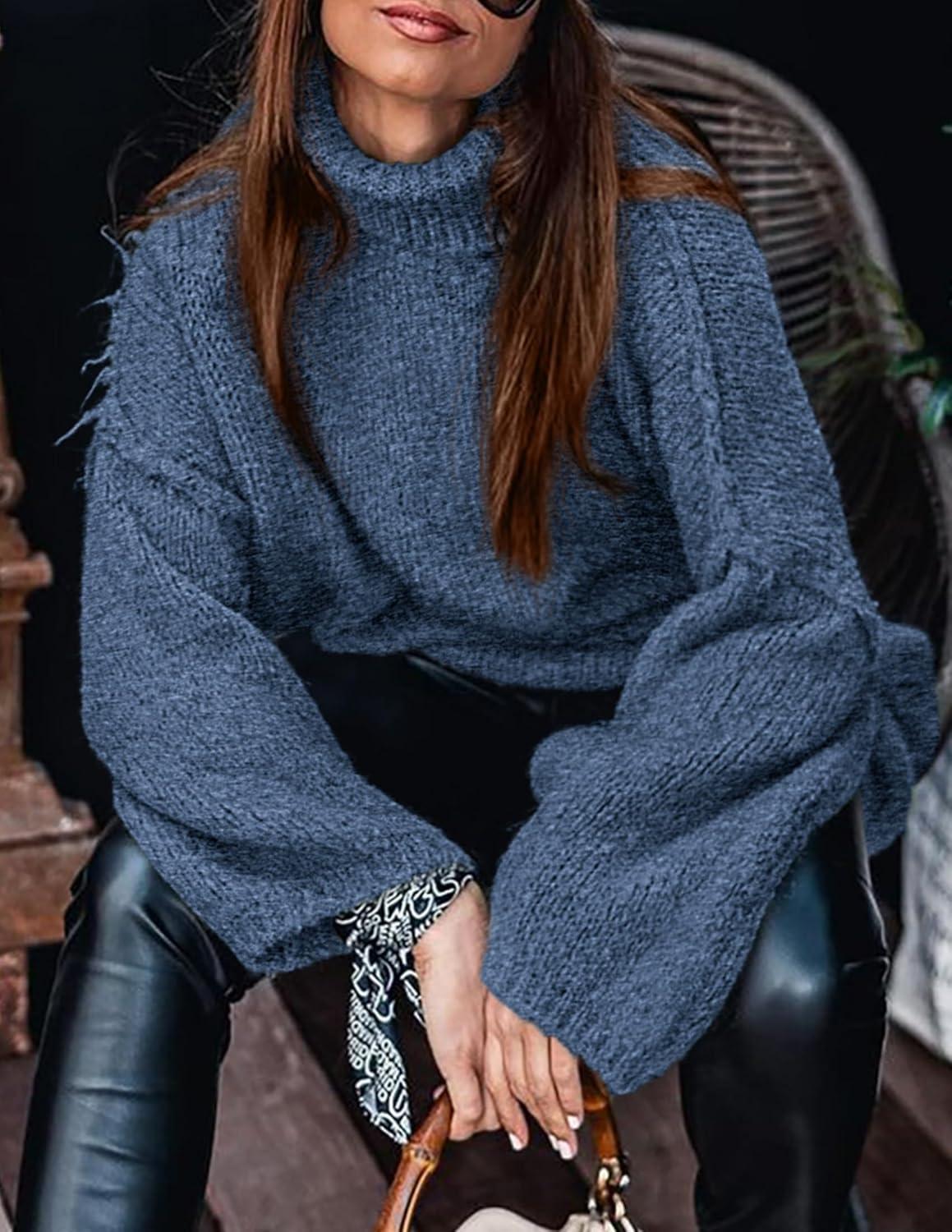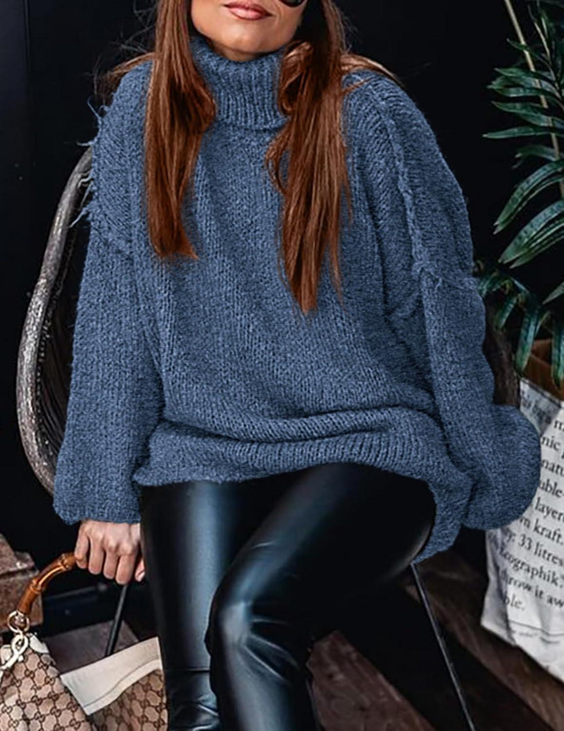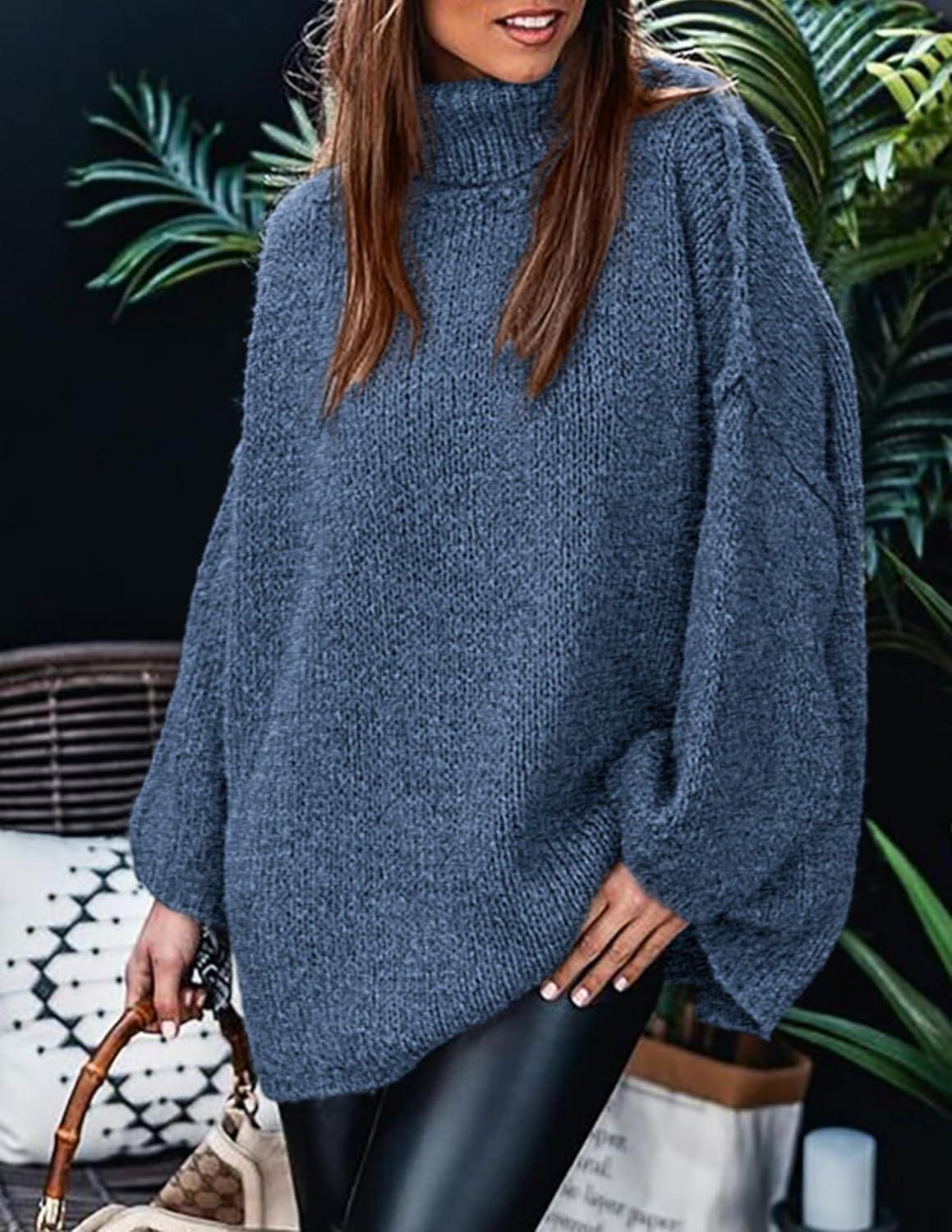 PRETTYGARDEN Women's 2025 Fall Turtleneck Oversized Sweaters Long Sleeve Chunky Knit Pullover Tops Winter Fashion Clothes(Blue)