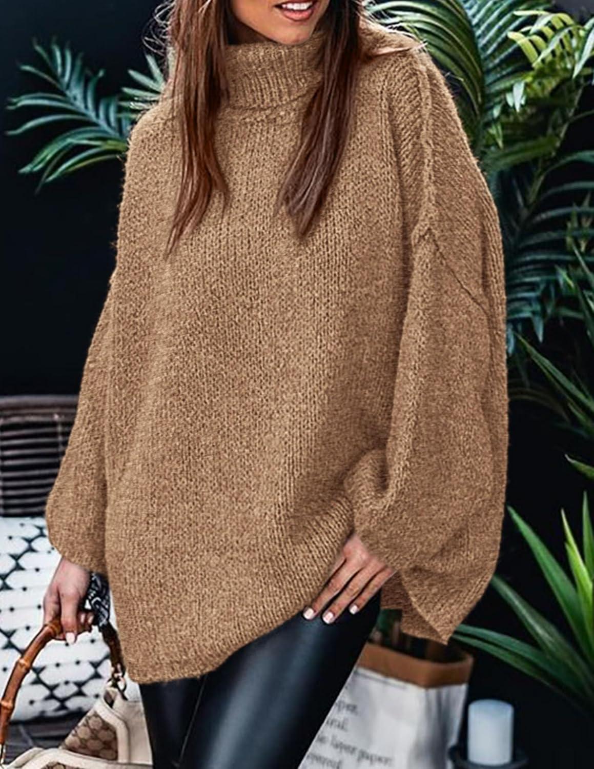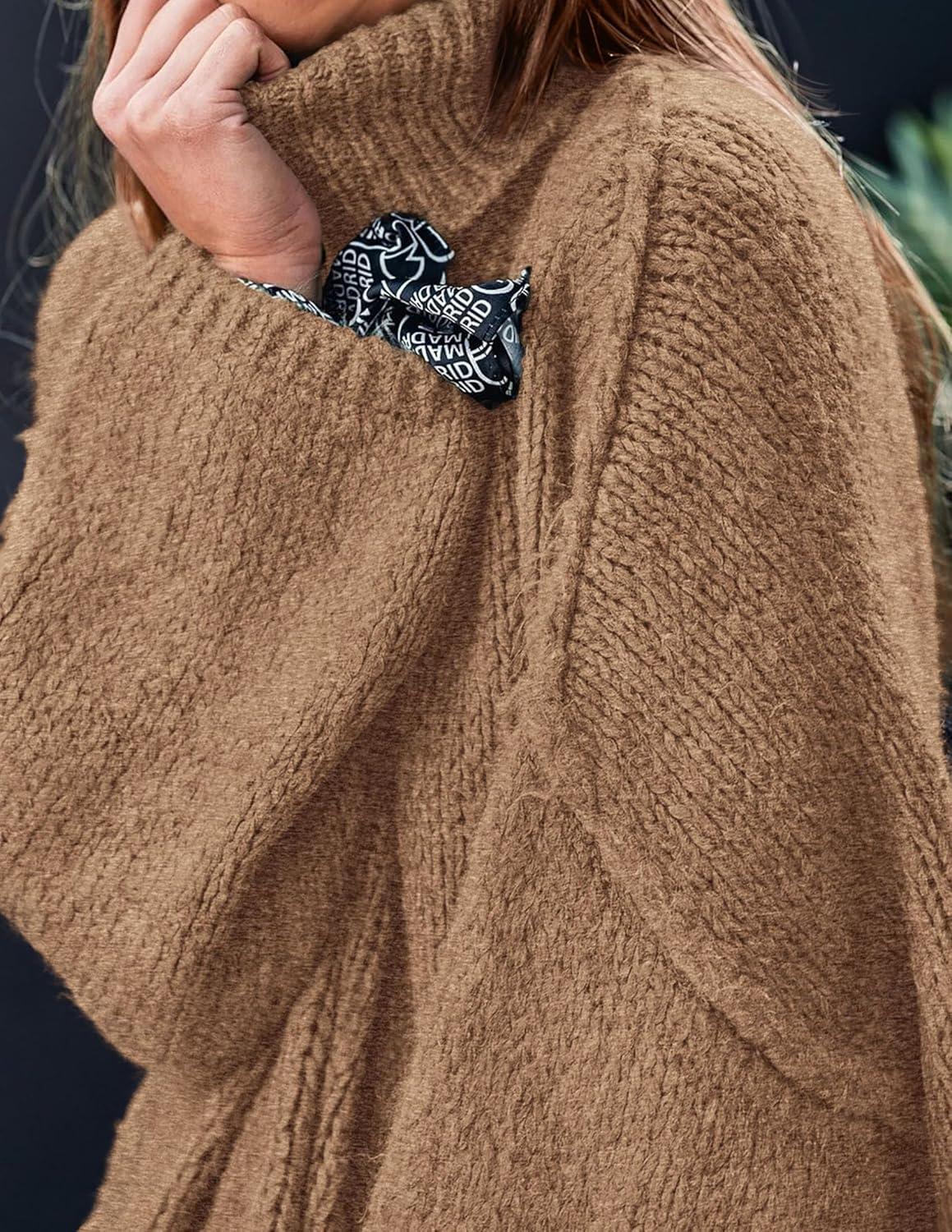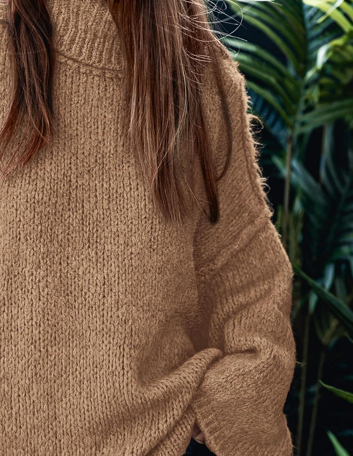 PRETTYGARDEN Women's 2025 Fall Turtleneck Oversized Sweaters Long Sleeve Chunky Knit Pullover Tops Winter Fashion Clothes(Camel)