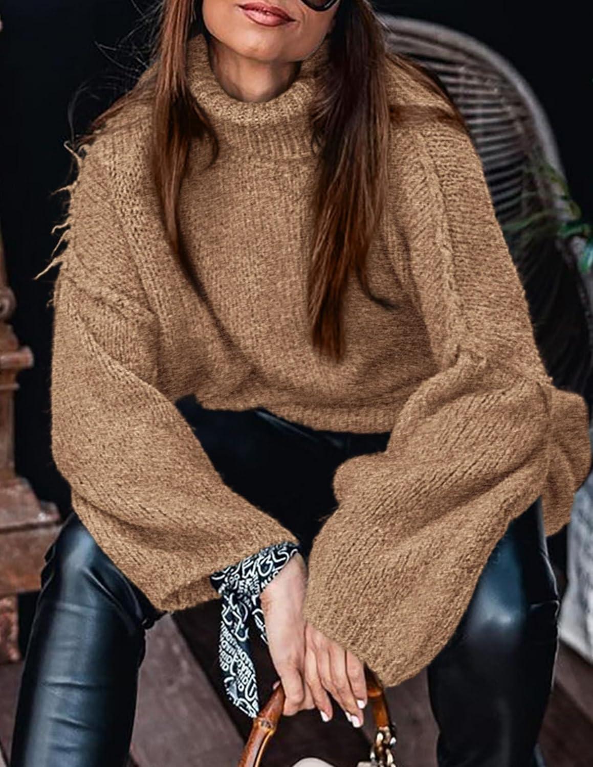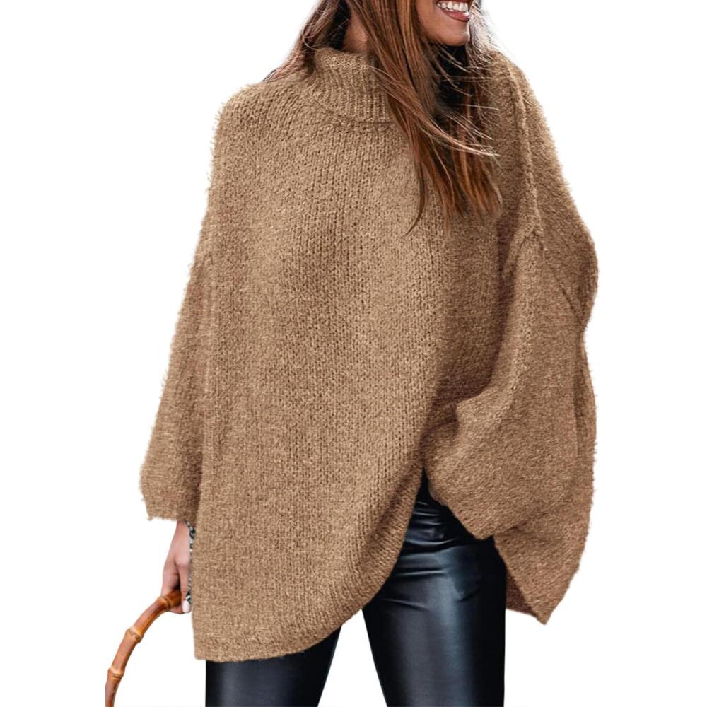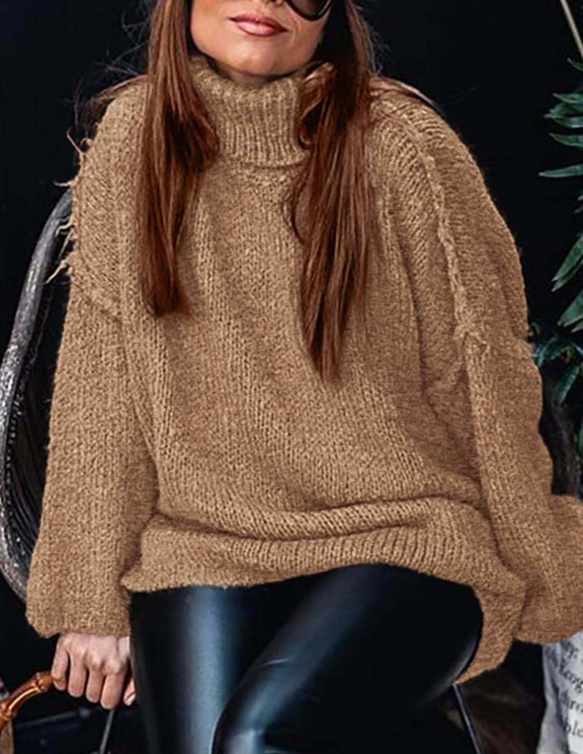 PRETTYGARDEN Women's 2025 Fall Turtleneck Oversized Sweaters Long Sleeve Chunky Knit Pullover Tops Winter Fashion Clothes(Camel)