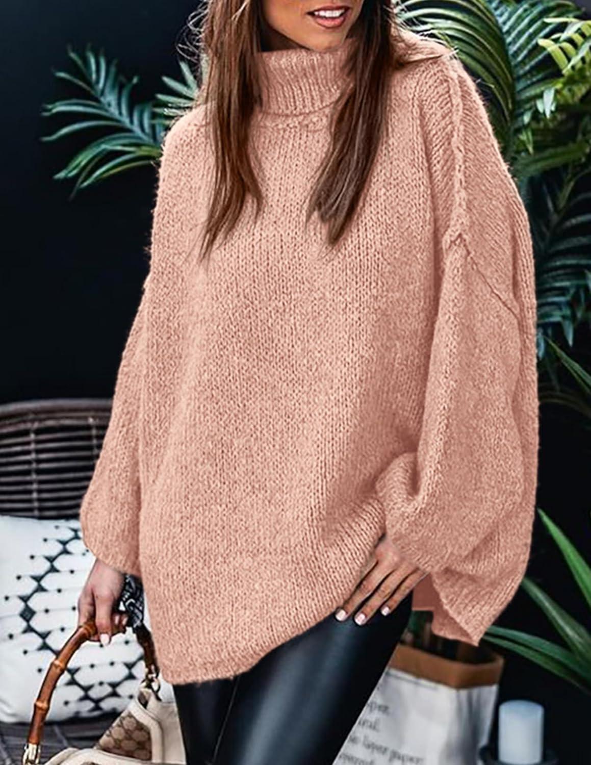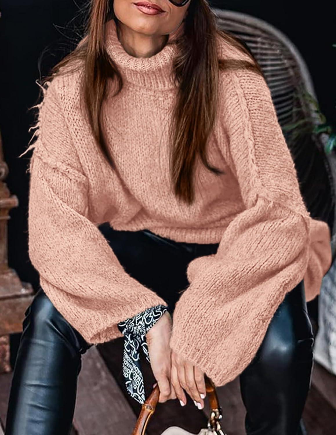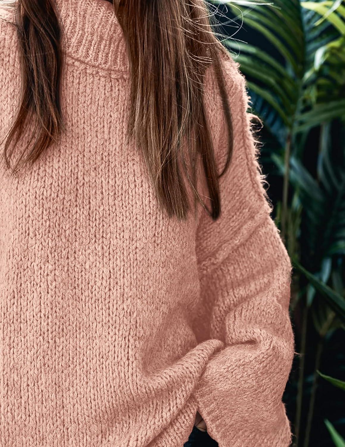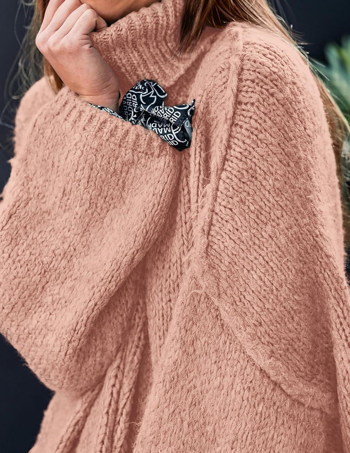 PRETTYGARDEN Women's 2025 Fall Turtleneck Oversized Sweaters Long Sleeve Chunky Knit Pullover Tops Winter Fashion Clothes(Light Pink)
