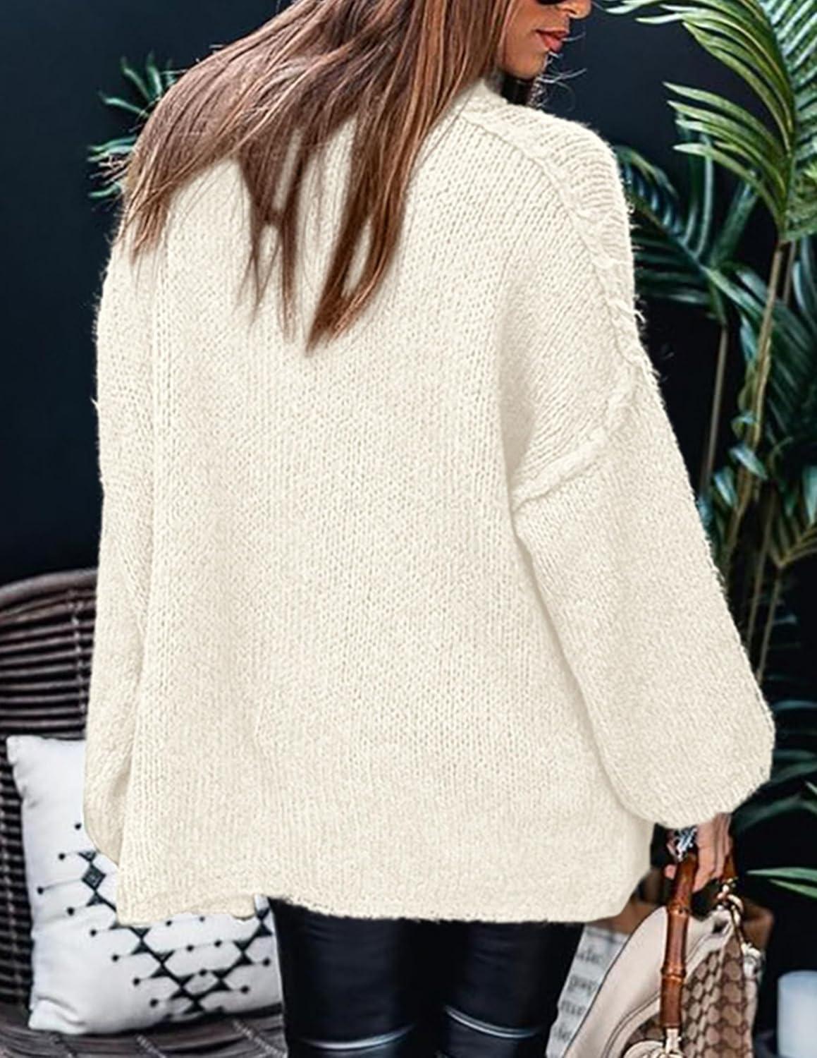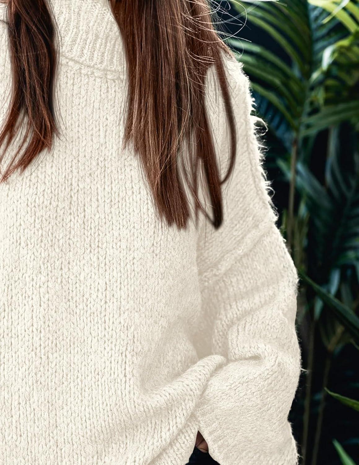 PRETTYGARDEN Women's 2025 Fall Turtleneck Oversized Sweaters Long Sleeve Chunky Knit Pullover Tops Winter Fashion Clothes(White)