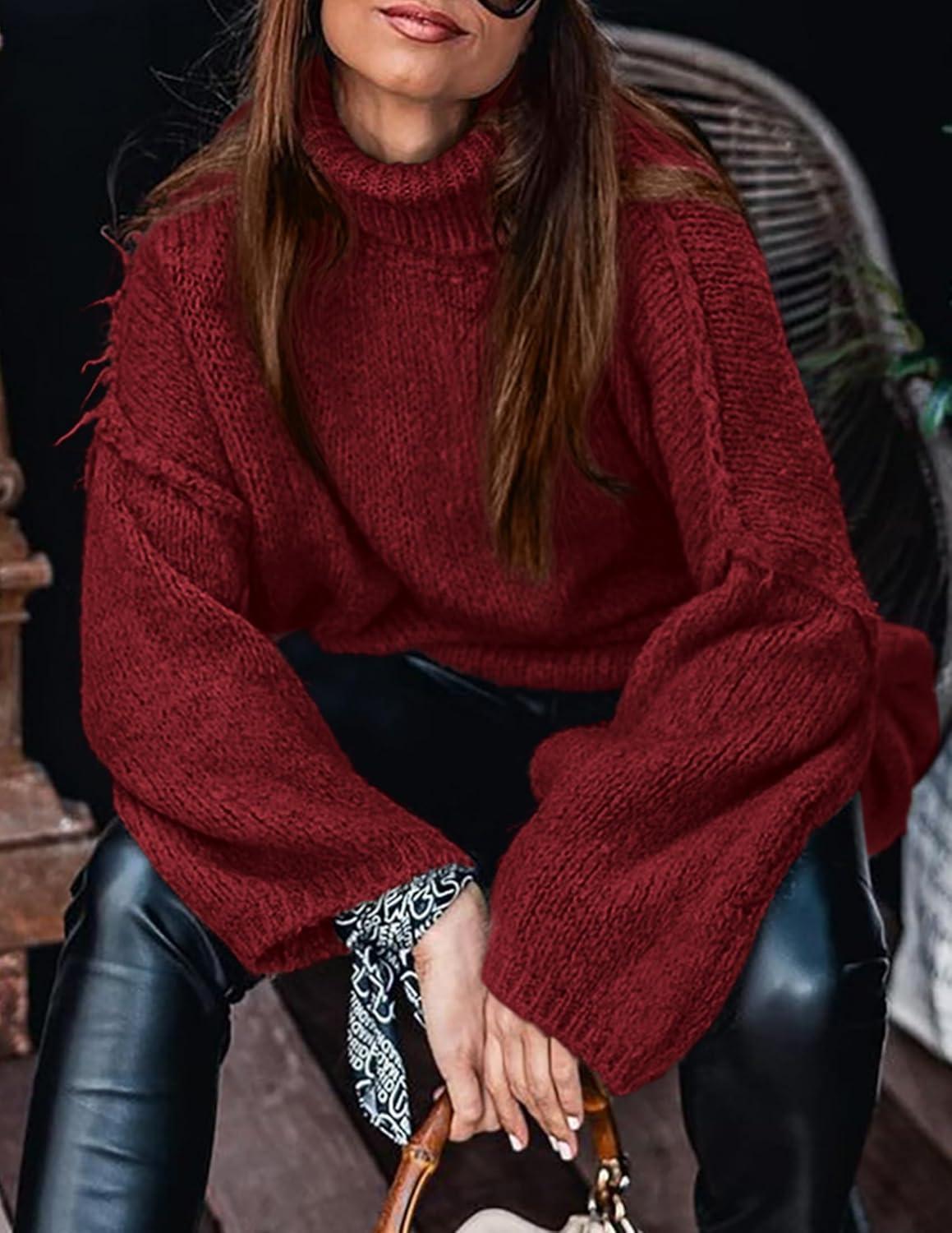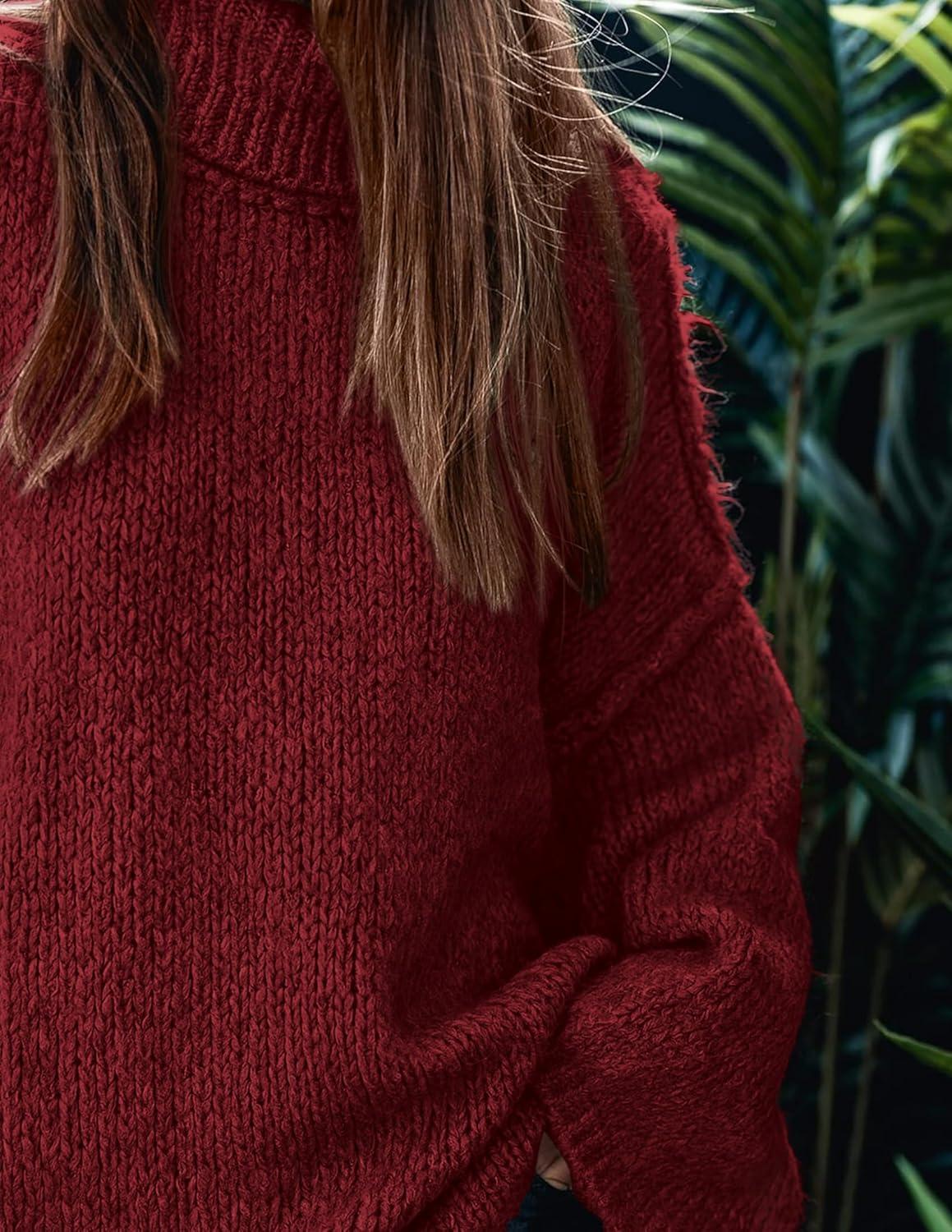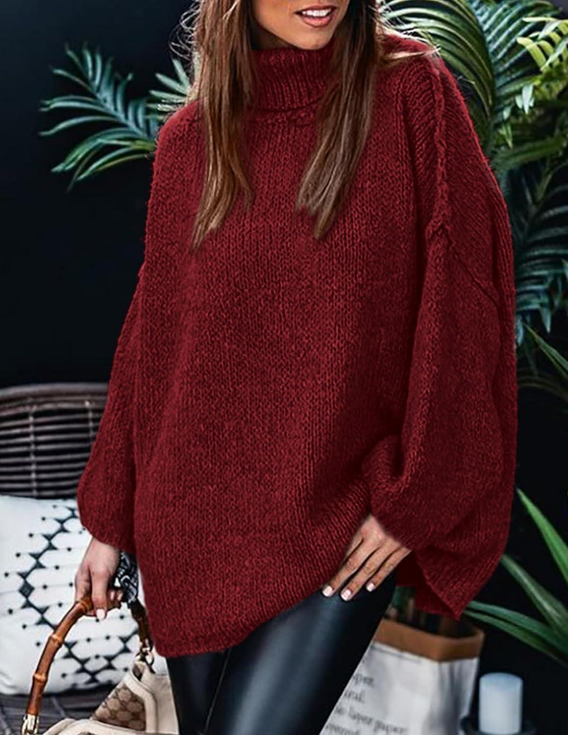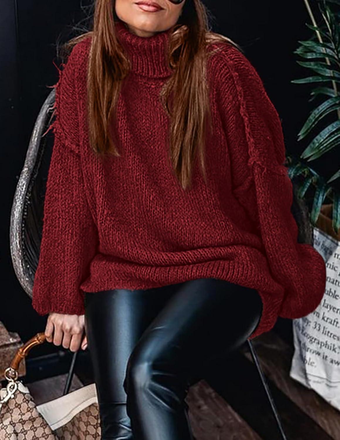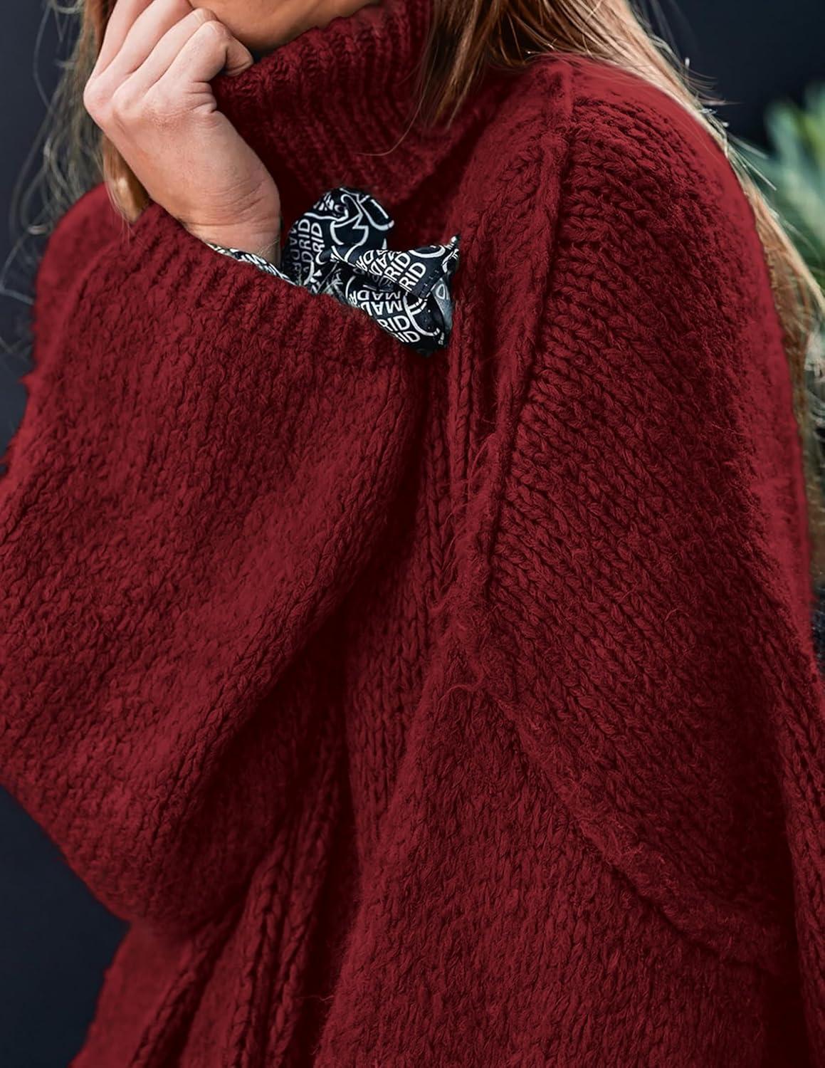 PRETTYGARDEN Women's 2025 Fall Turtleneck Oversized Sweaters Long Sleeve Chunky Knit Pullover Tops Winter Fashion Clothes(Wine Red)