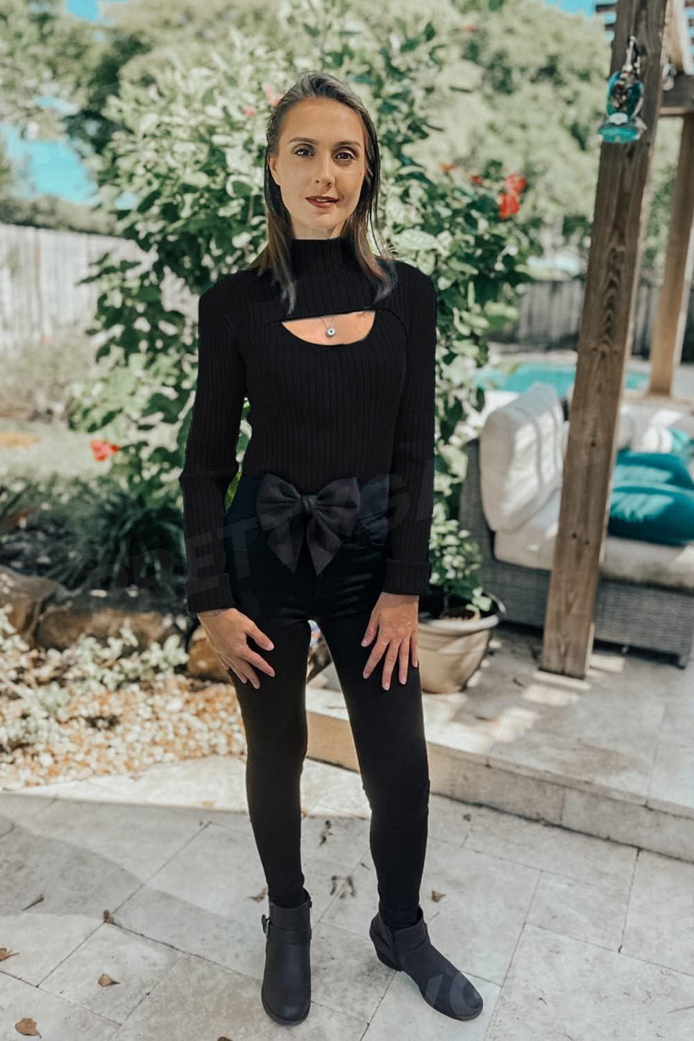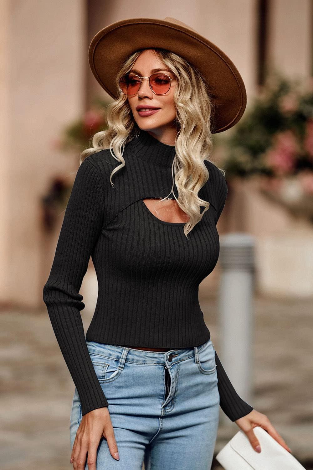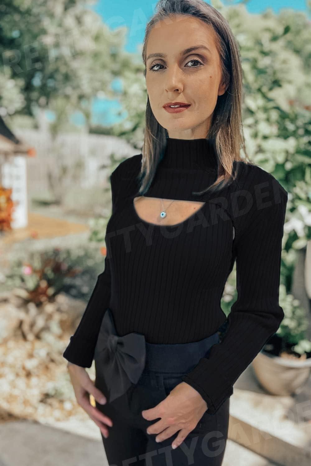 PRETTYGARDEN Women’s 2025 Fashion Fall Clothes 2 Piece Cutout Tops Long Sleeve Mock Neck Rib Knit Winter Pullover Sweater(Black)