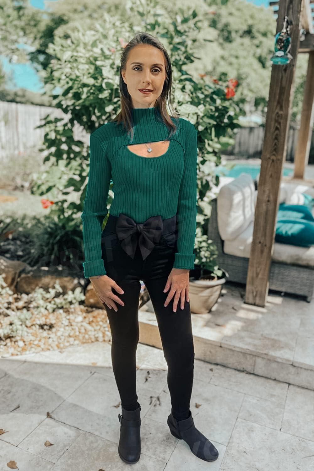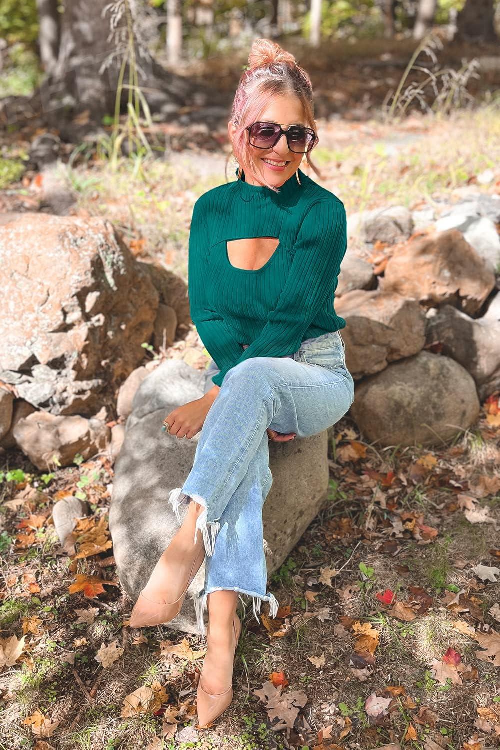PRETTYGARDEN Women’s 2025 Fashion Fall Clothes 2 Piece Cutout Tops Long Sleeve Mock Neck Rib Knit Winter Pullover Sweater(Lake Green)
