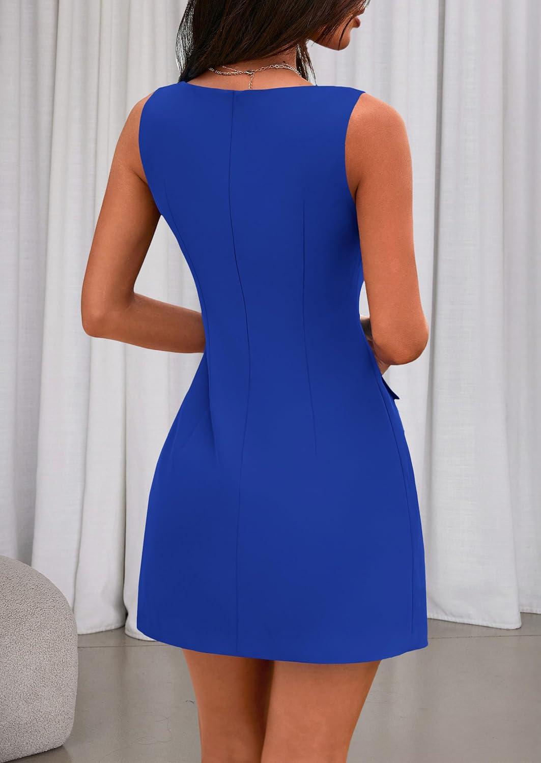 PRETTYGARDEN Womens 2025 Formal Sleeveless Summer Dresses Boat Neck Bodycon Elegant A Line Business Work Mini Dress(Blue)