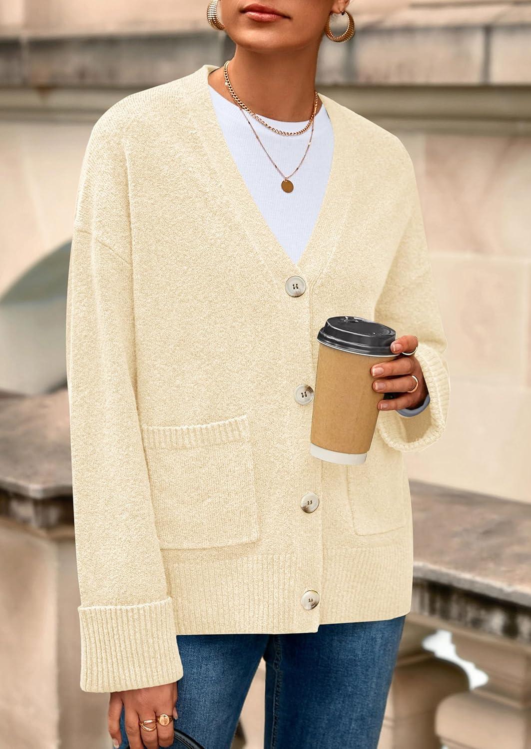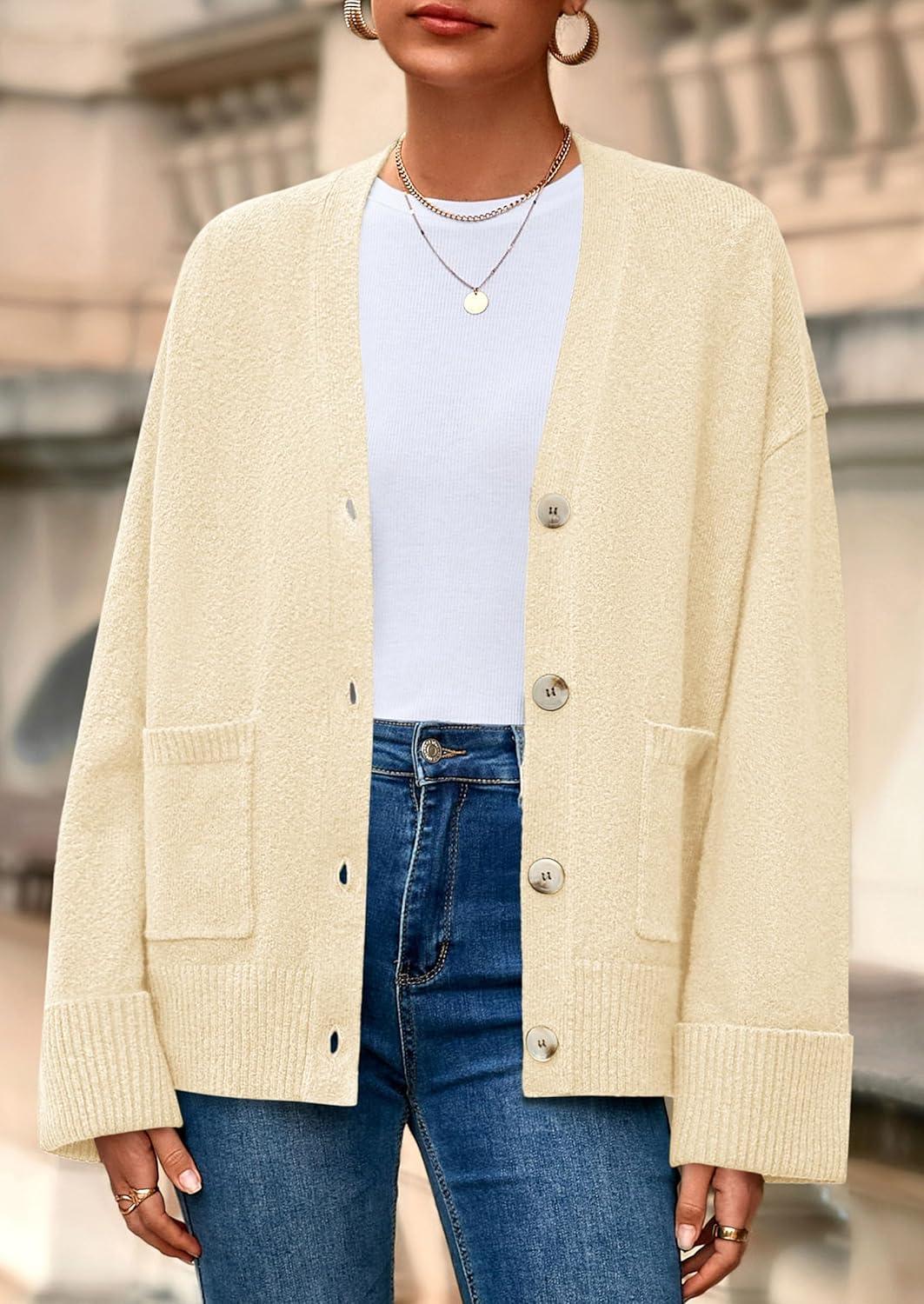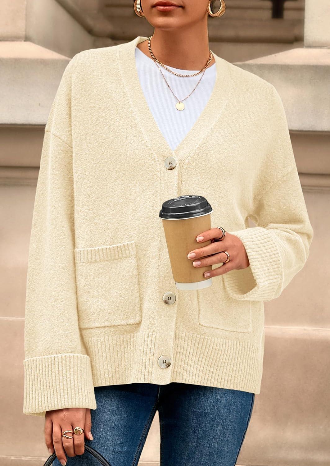 PRETTYGARDEN Women’s 2025 Oversized Cardigan Sweaters Trendy Chunky Knit Long Sleeve V Neck Button Down Fall Winter Outfits(Beige)