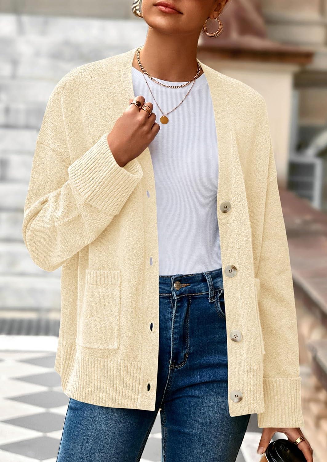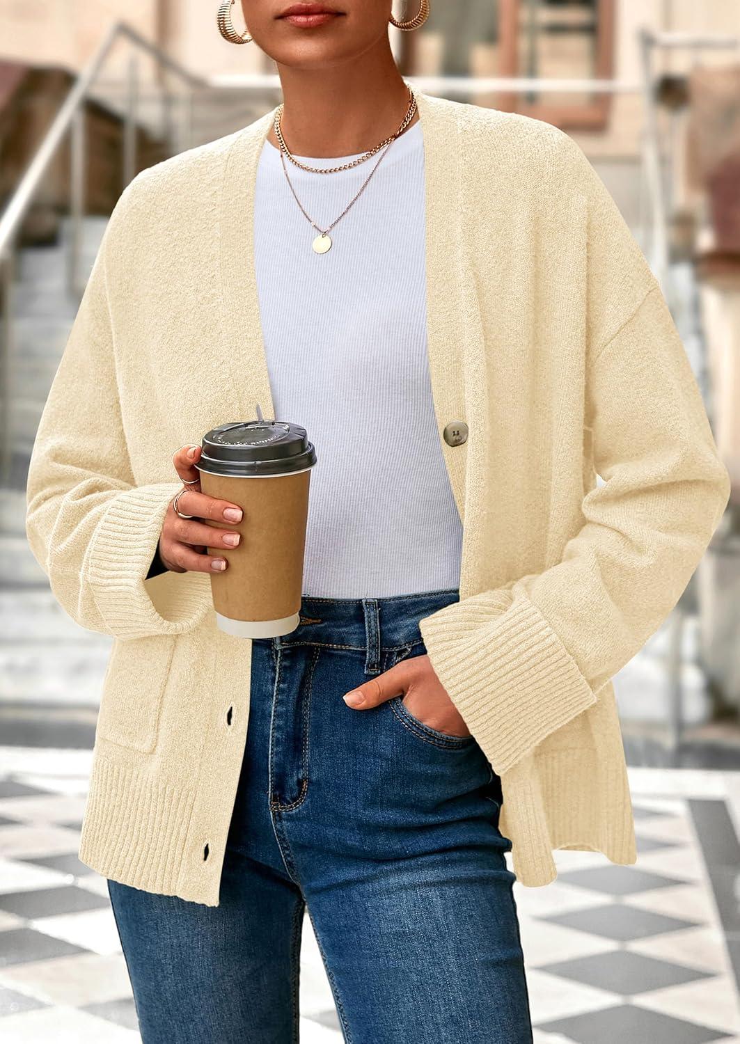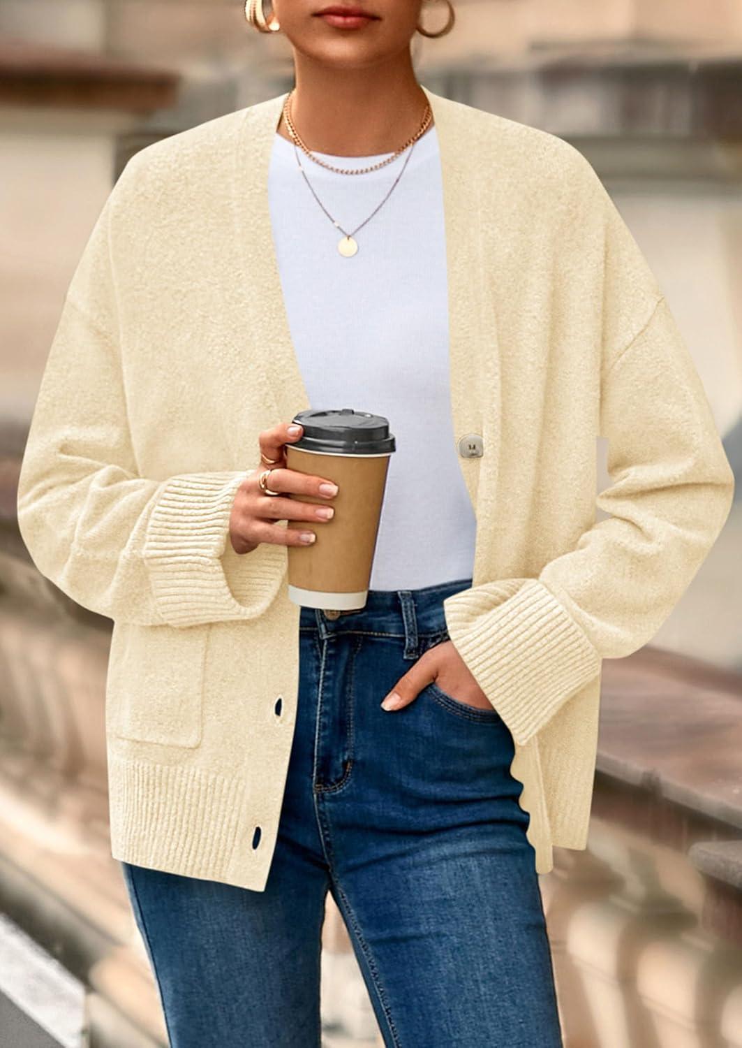 PRETTYGARDEN Women’s 2025 Oversized Cardigan Sweaters Trendy Chunky Knit Long Sleeve V Neck Button Down Fall Winter Outfits(Beige)