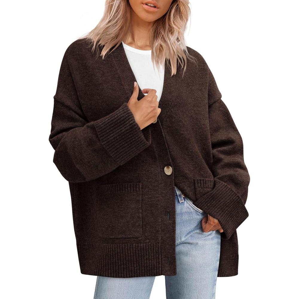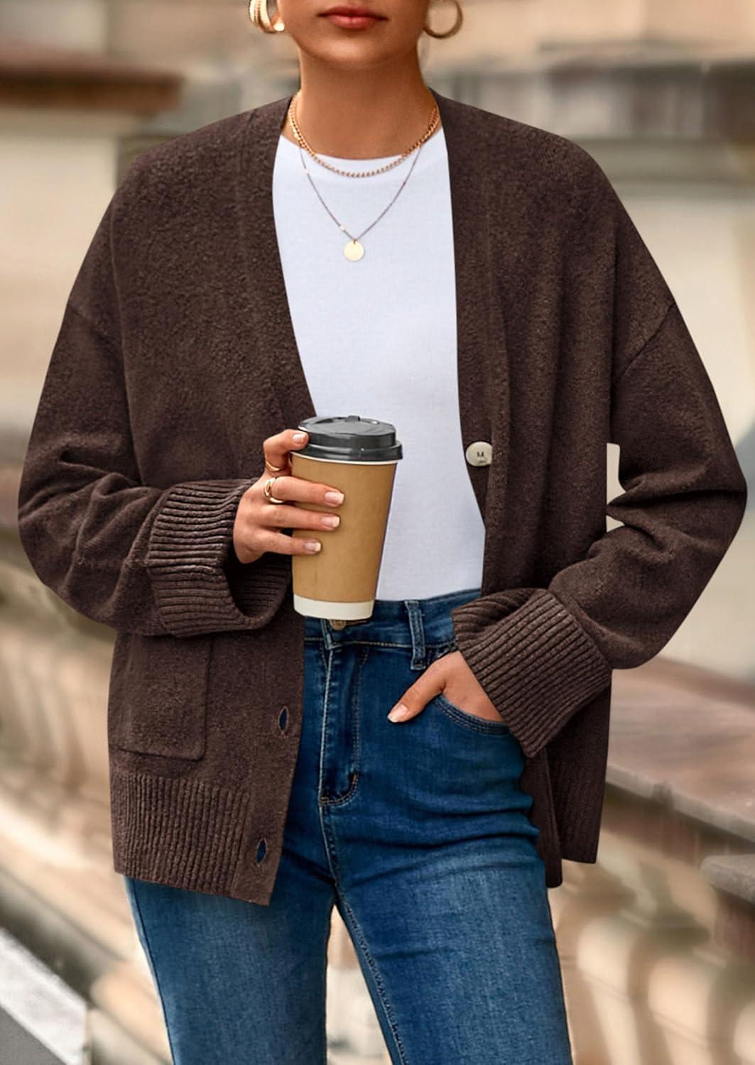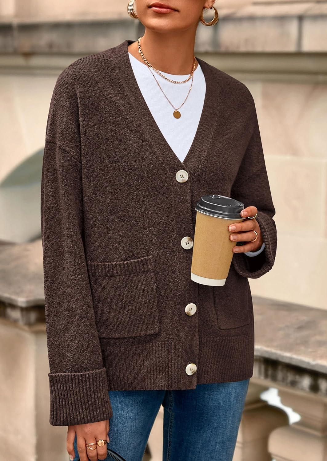 PRETTYGARDEN Women's 2025 Oversized Cardigan Sweaters Trendy Chunky Knit Long Sleeve V Neck Button Down Fall Winter Outfits(Brown)