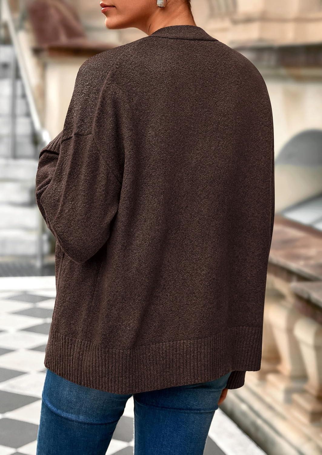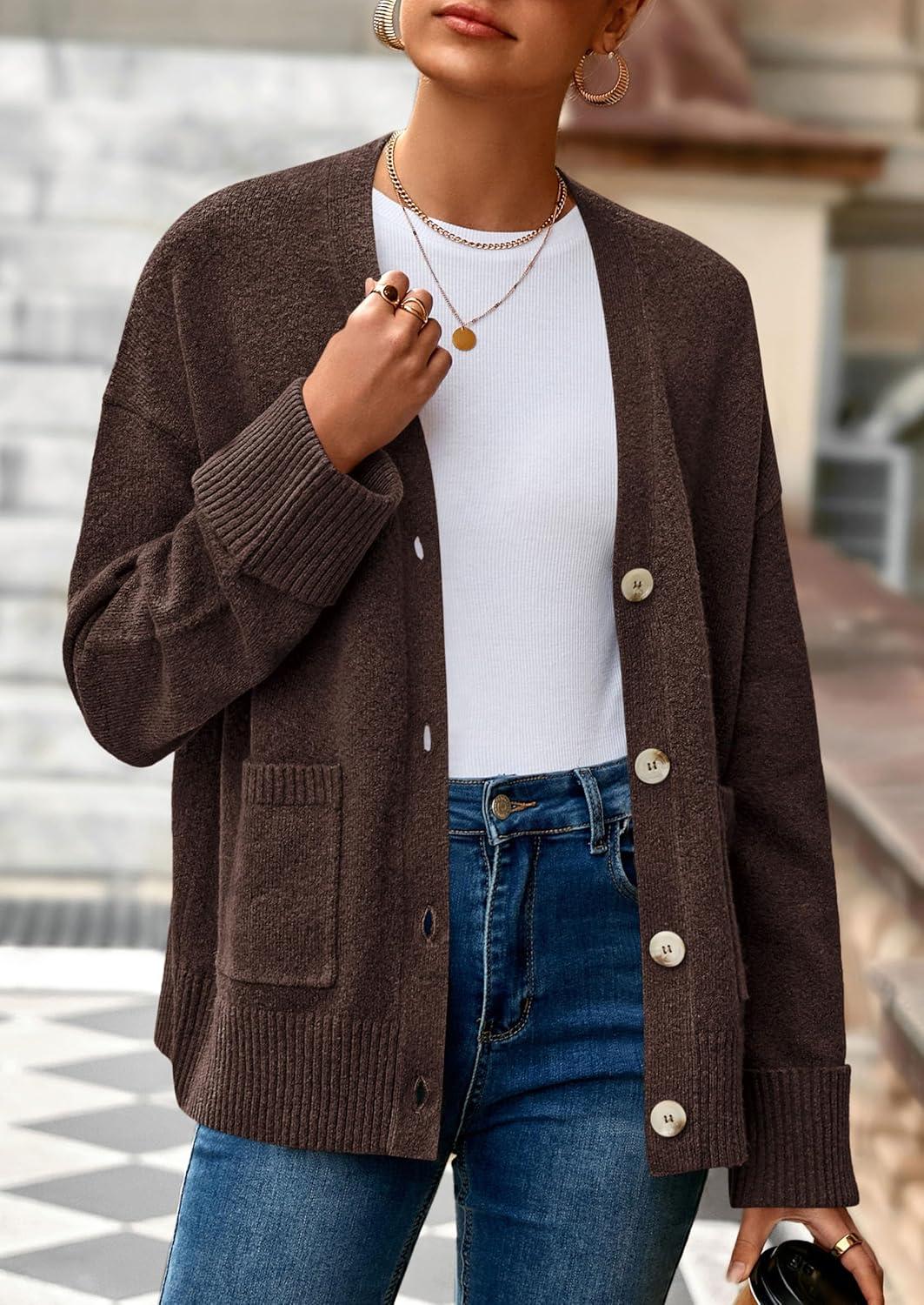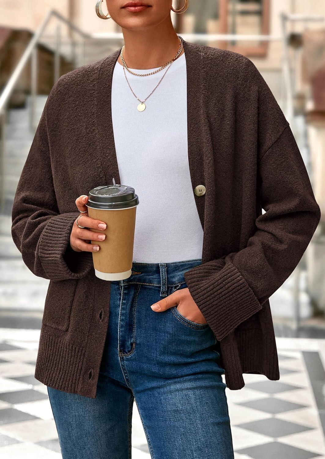 PRETTYGARDEN Women's 2025 Oversized Cardigan Sweaters Trendy Chunky Knit Long Sleeve V Neck Button Down Fall Winter Outfits(Brown)