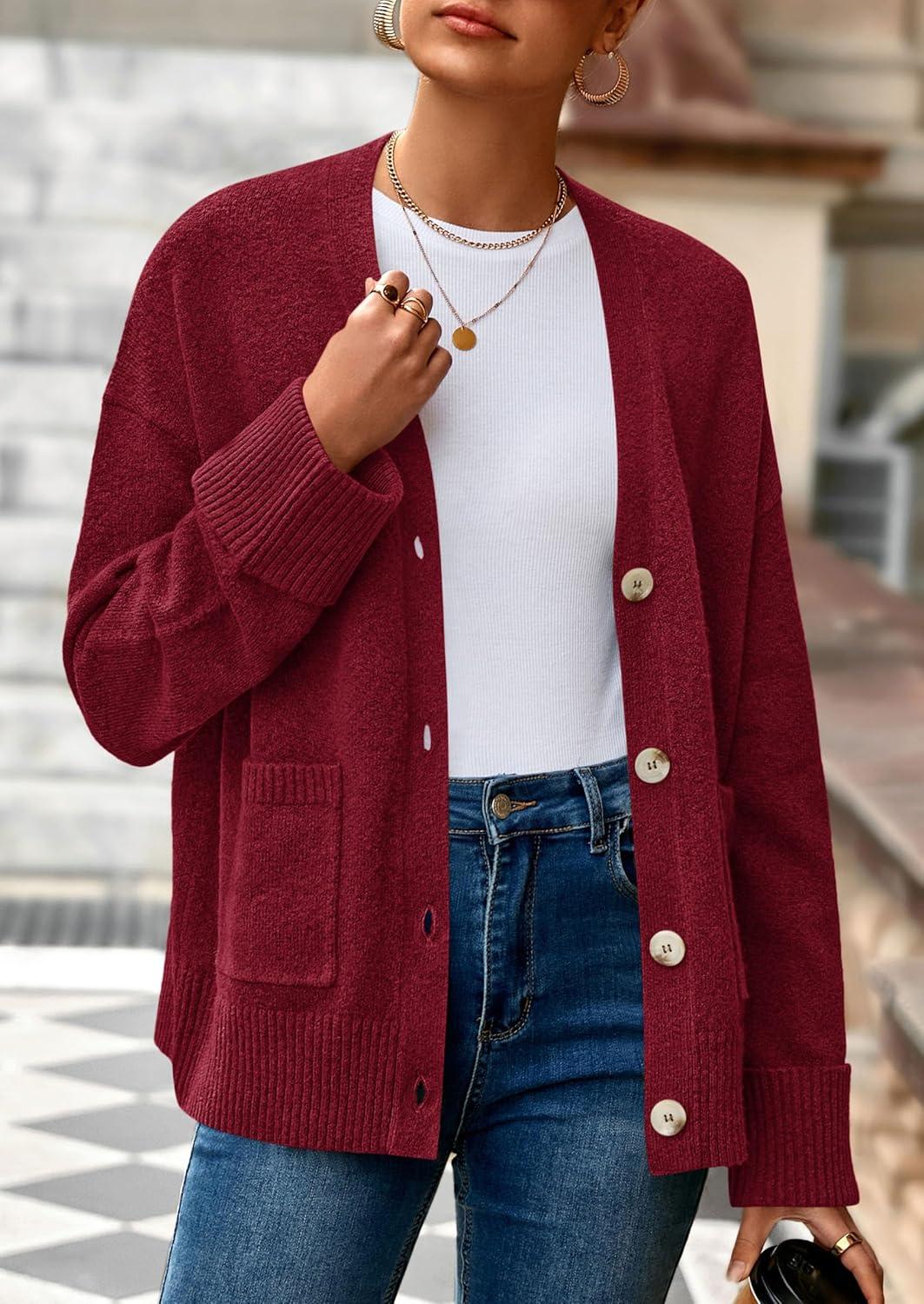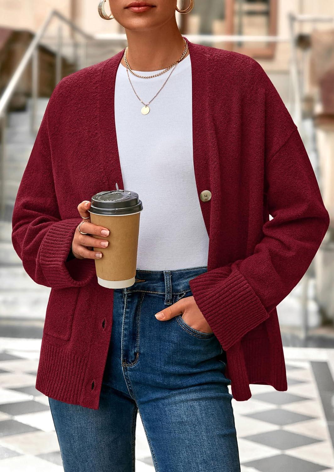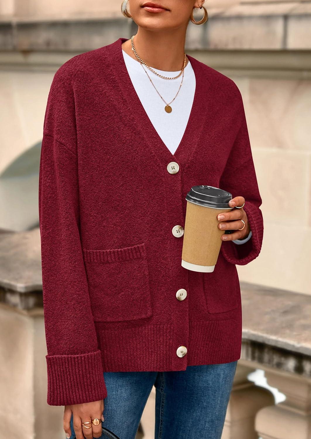 PRETTYGARDEN Women’s 2025 Oversized Cardigan Sweaters Trendy Chunky Knit Long Sleeve V Neck Button Down Fall Winter Outfits(Burgundy)