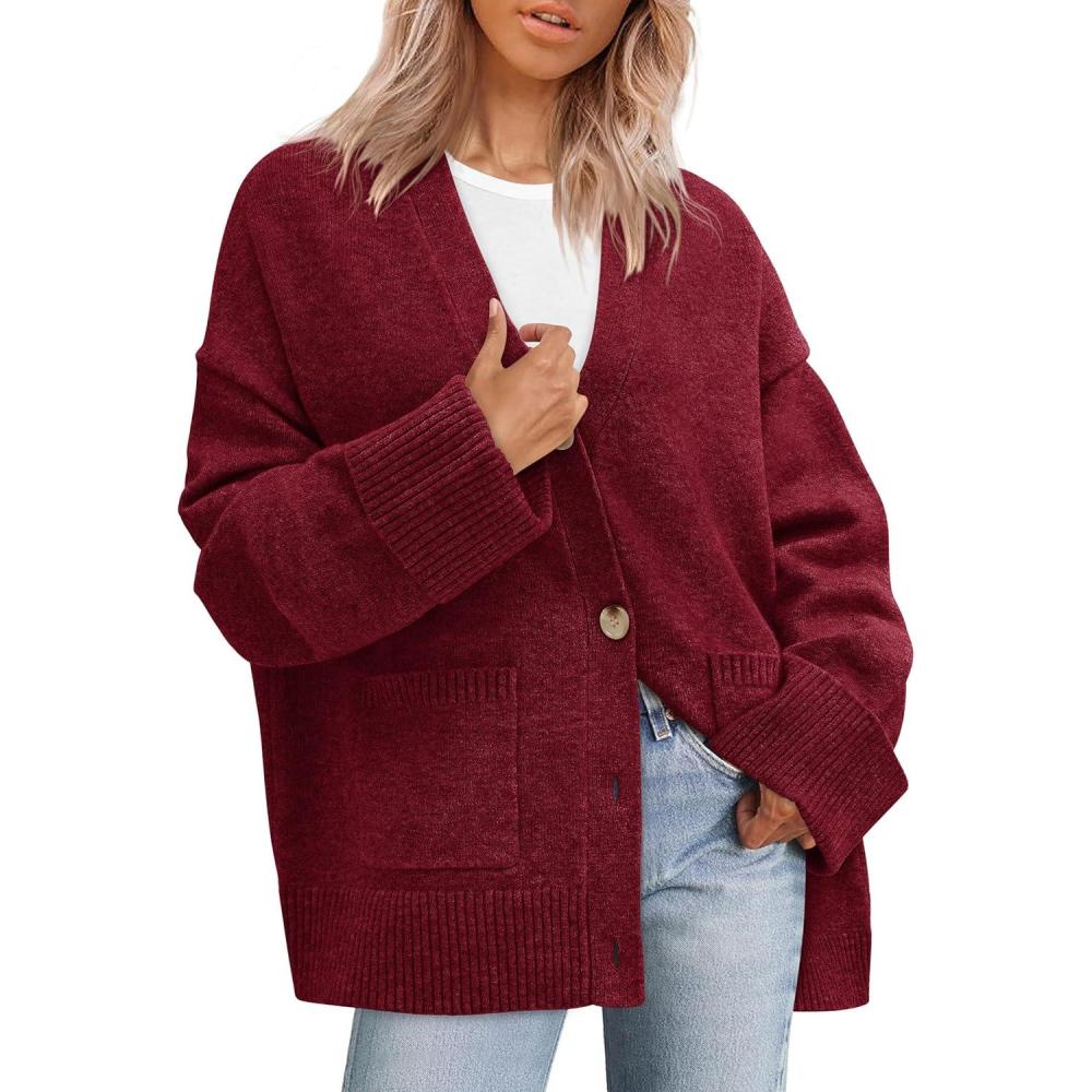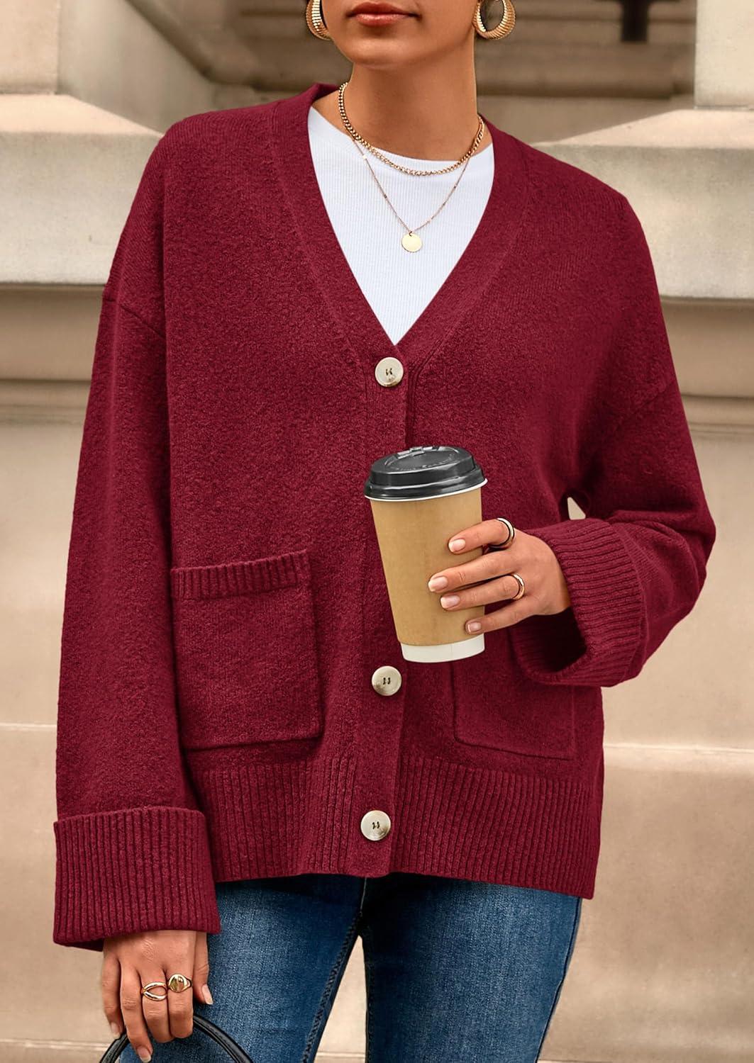 PRETTYGARDEN Women's 2025 Oversized Cardigan Sweaters Trendy Chunky Knit Long Sleeve V Neck Button Down Fall Winter Outfits(Burgundy)