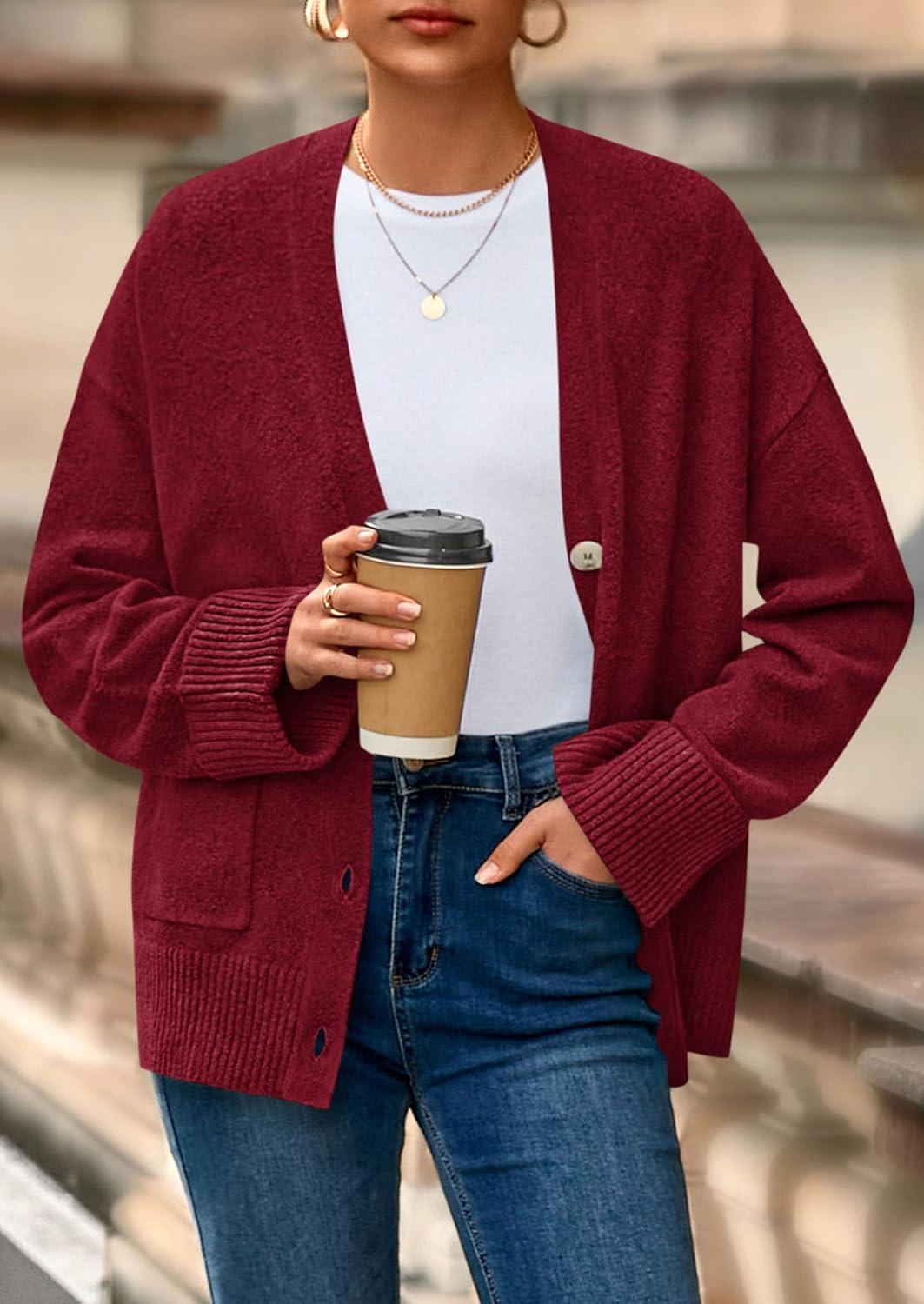 imagePRETTYGARDEN Womens 2025 Oversized Cardigan Sweaters Trendy Chunky Knit Long Sleeve V Neck Button Down Fall Winter OutfitsBurgundy
