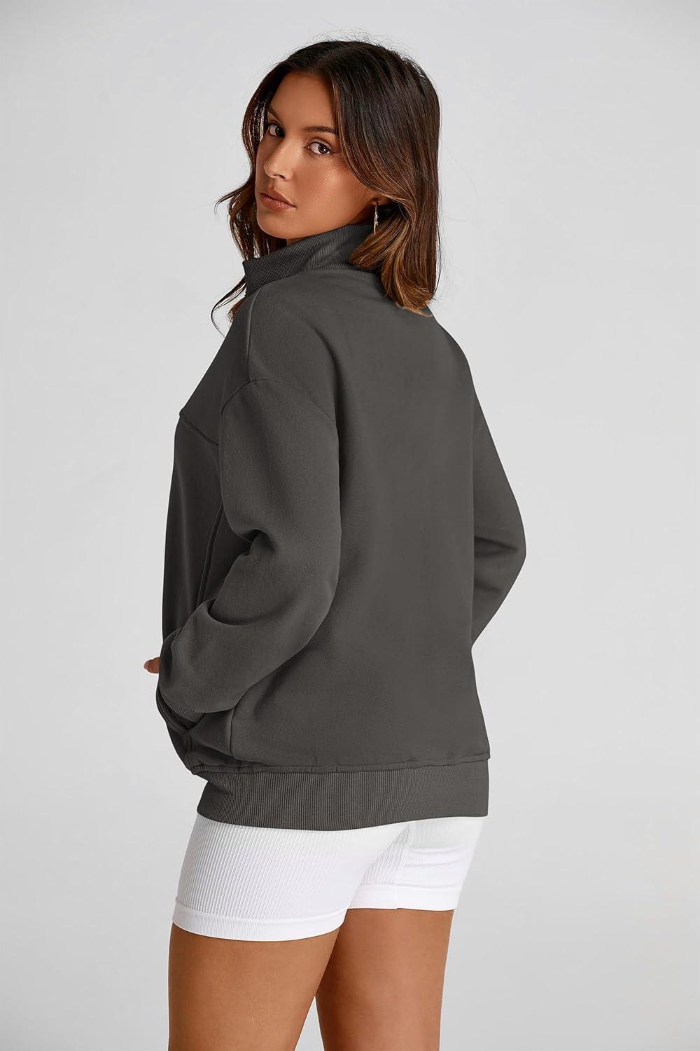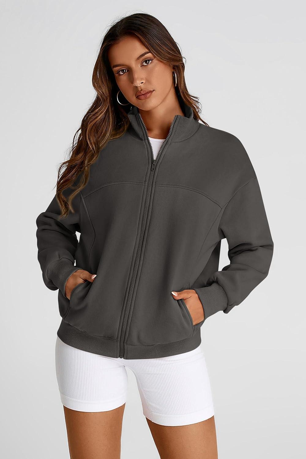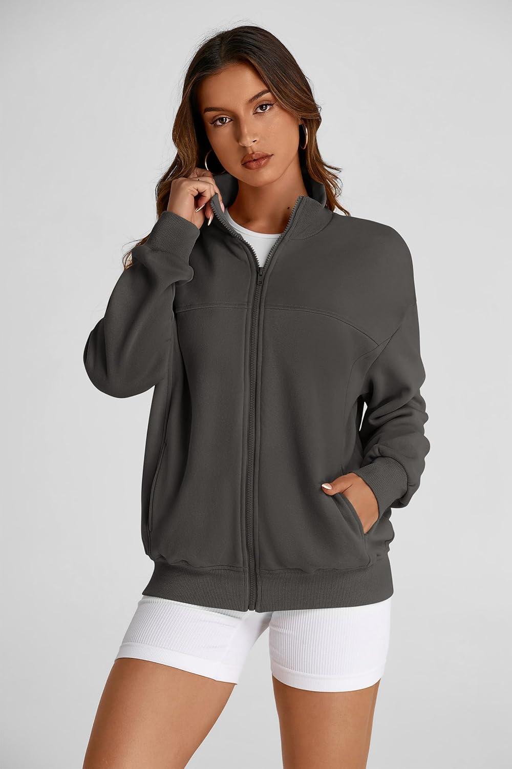 PRETTYGARDEN Women’s 2025 Spring Fall Fashion Full Zip Up Sweatshirt Long Sleeve Loose Fit Trendy Casual Jacket with Pockets(Dark Grey)