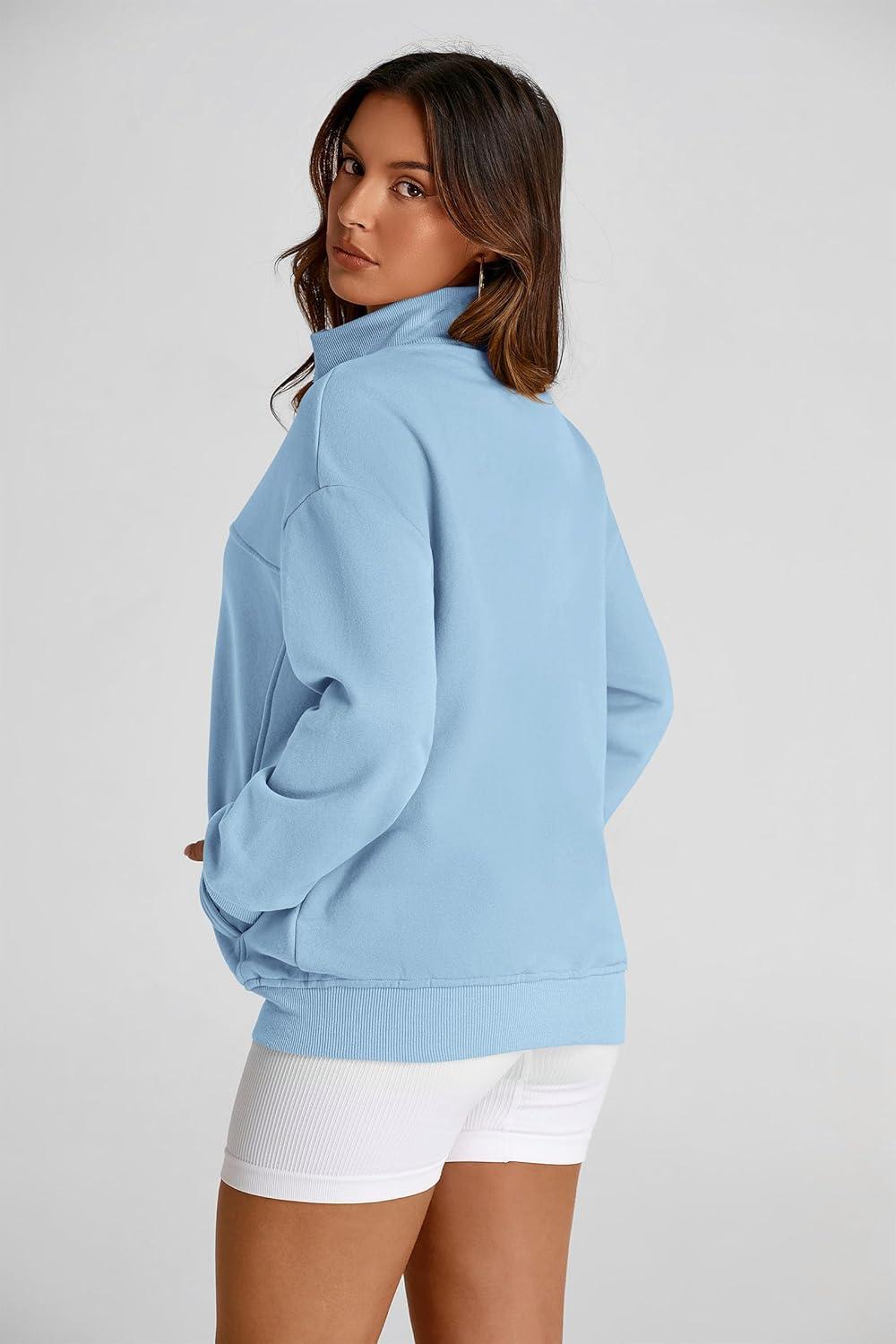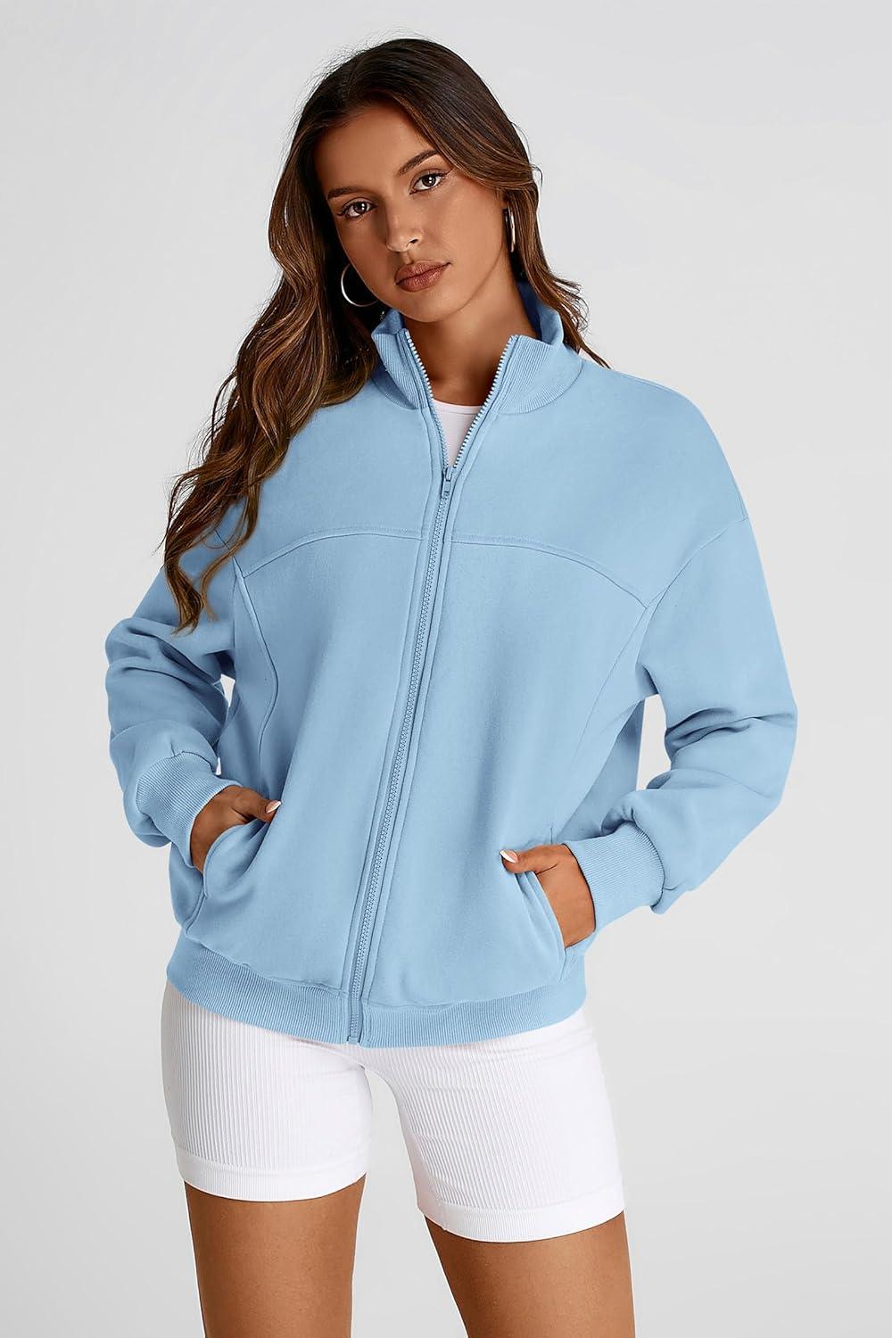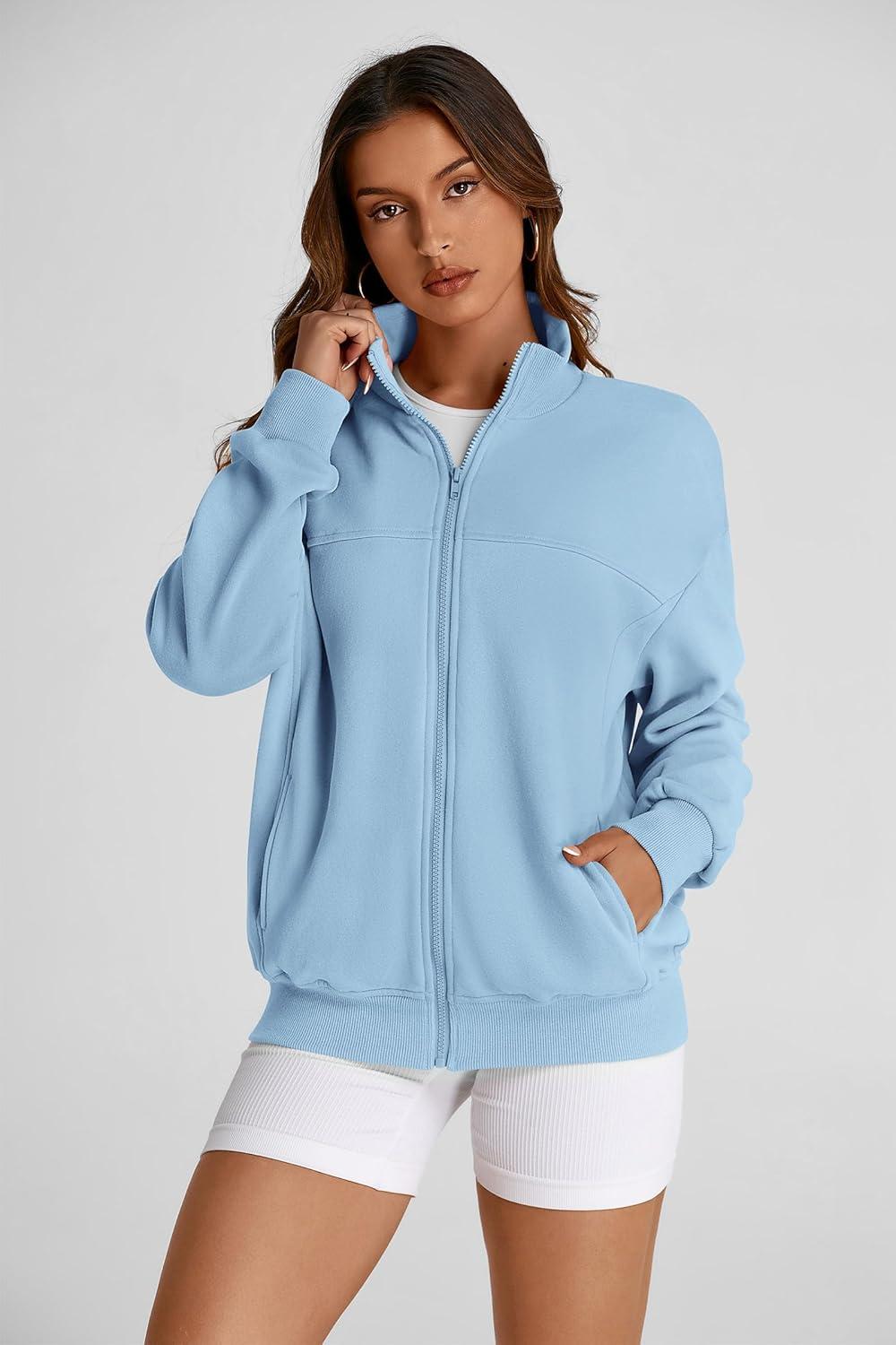 PRETTYGARDEN Women's 2025 Spring Fall Fashion Full Zip Up Sweatshirt Long Sleeve Loose Fit Trendy Casual Jacket with Pockets(Light Blue)