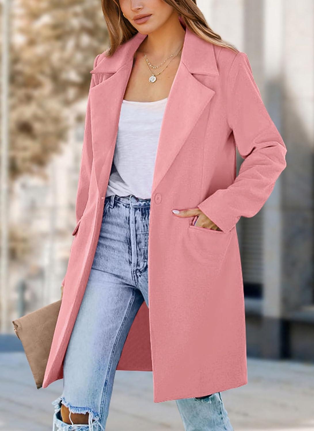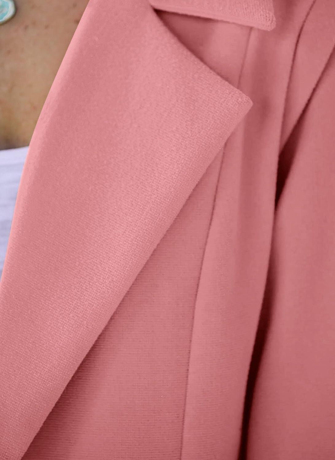 PRETTYGARDEN Women’s 2025 Spring Fall Long Blazer Jackets Long Sleeve Lapel Pockets Loose Fit Work Casual Blazers Outerwear(Dusty Pink)