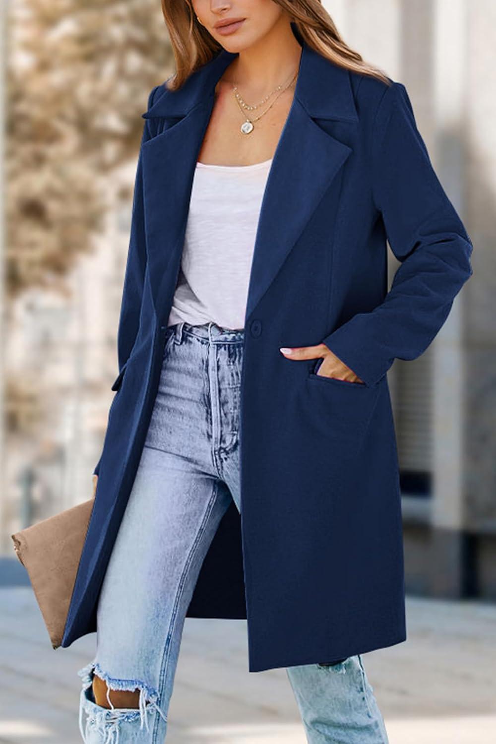 PRETTYGARDEN Women’s 2025 Spring Fall Long Blazer Jackets Long Sleeve Lapel Pockets Loose Fit Work Casual Blazers Outerwear(Navy)