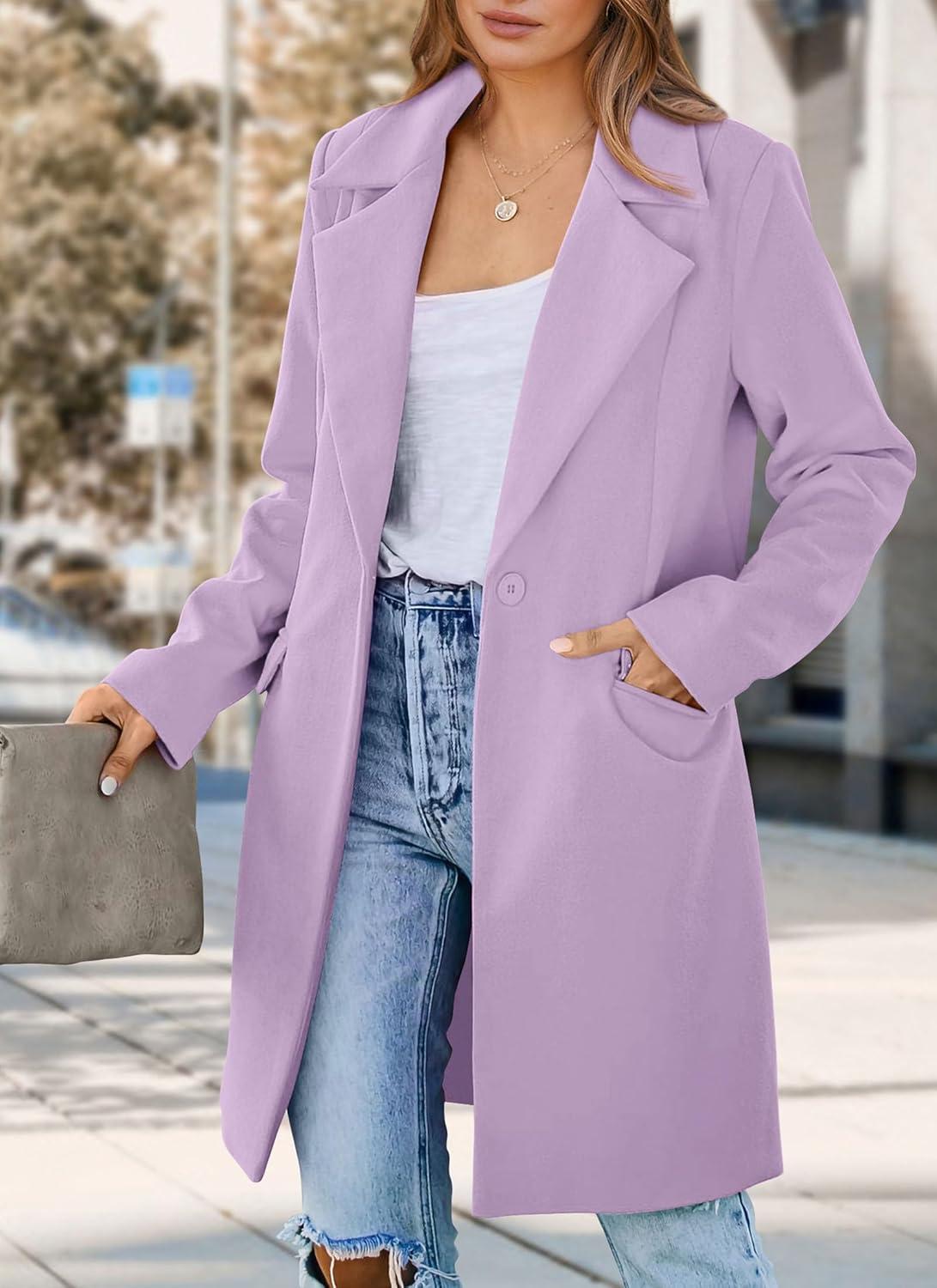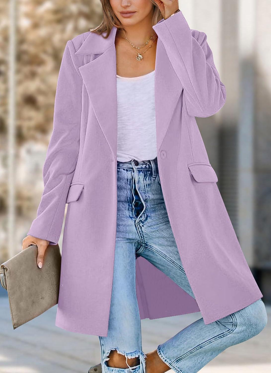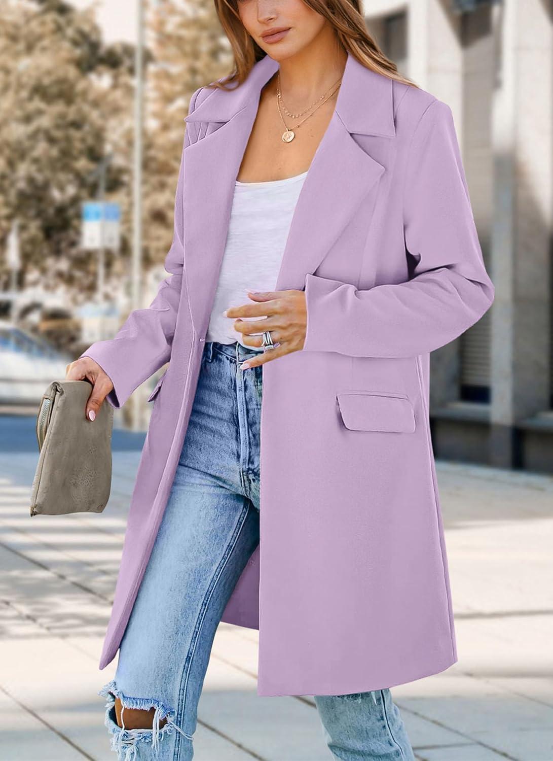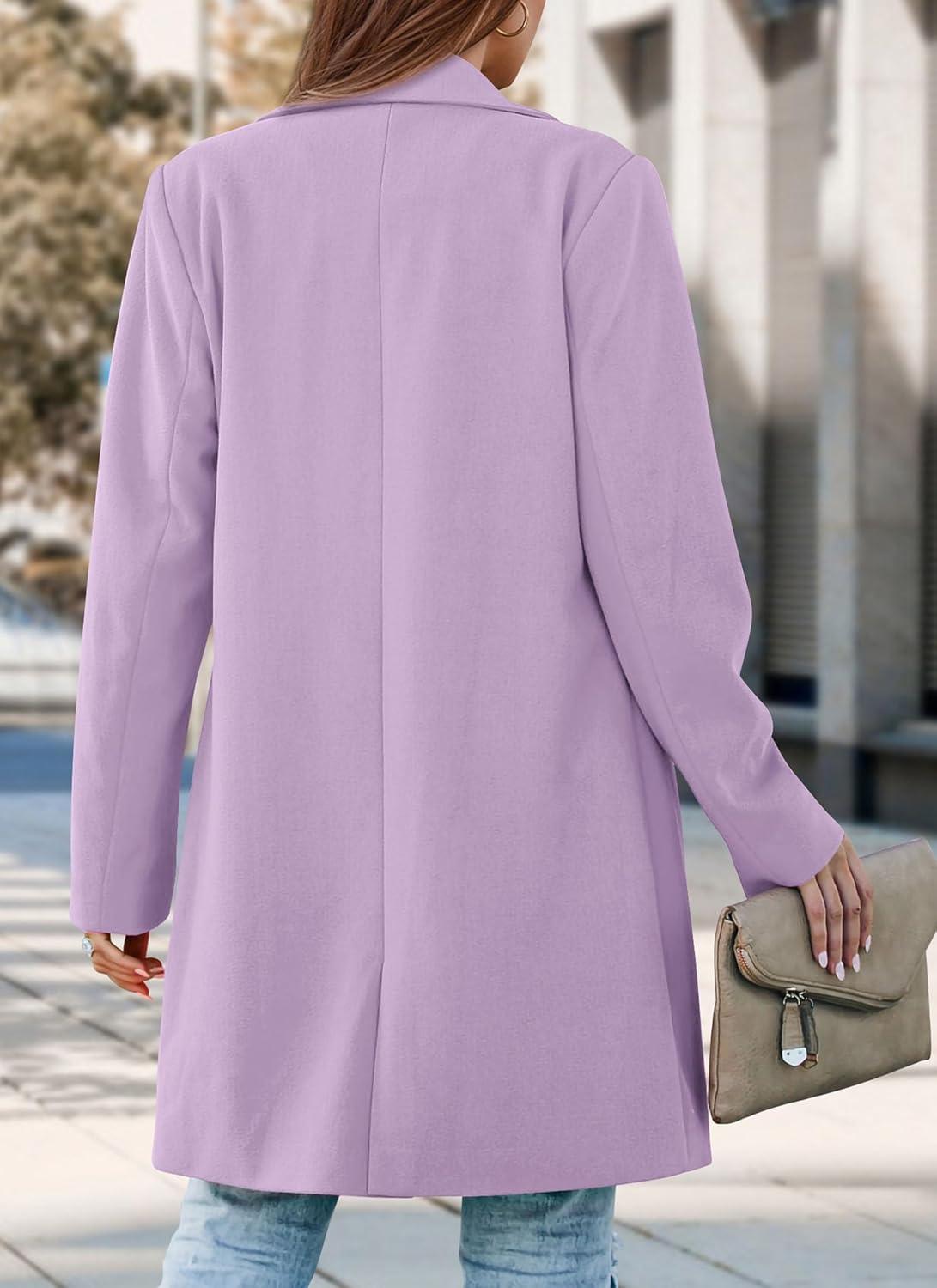 PRETTYGARDEN Women's 2025 Spring Fall Long Blazer Jackets Long Sleeve Lapel Pockets Loose Fit Work Casual Blazers Outerwear(Purple)