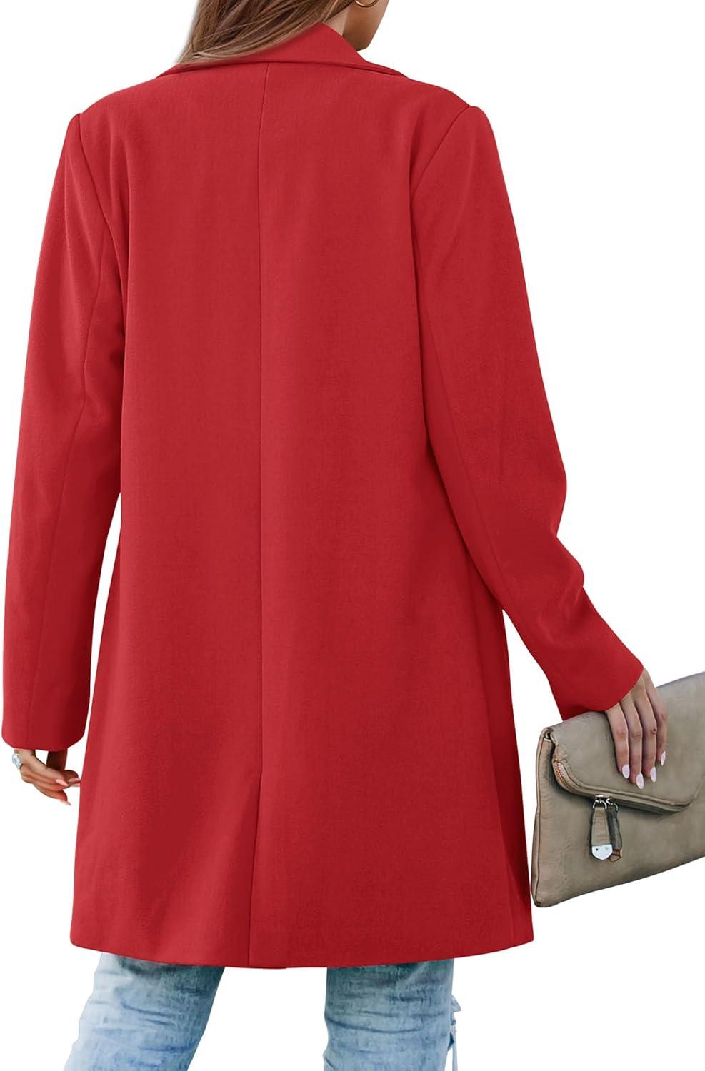 PRETTYGARDEN Women’s 2025 Spring Fall Long Blazer Jackets Long Sleeve Lapel Pockets Loose Fit Work Casual Blazers Outerwear(Red)