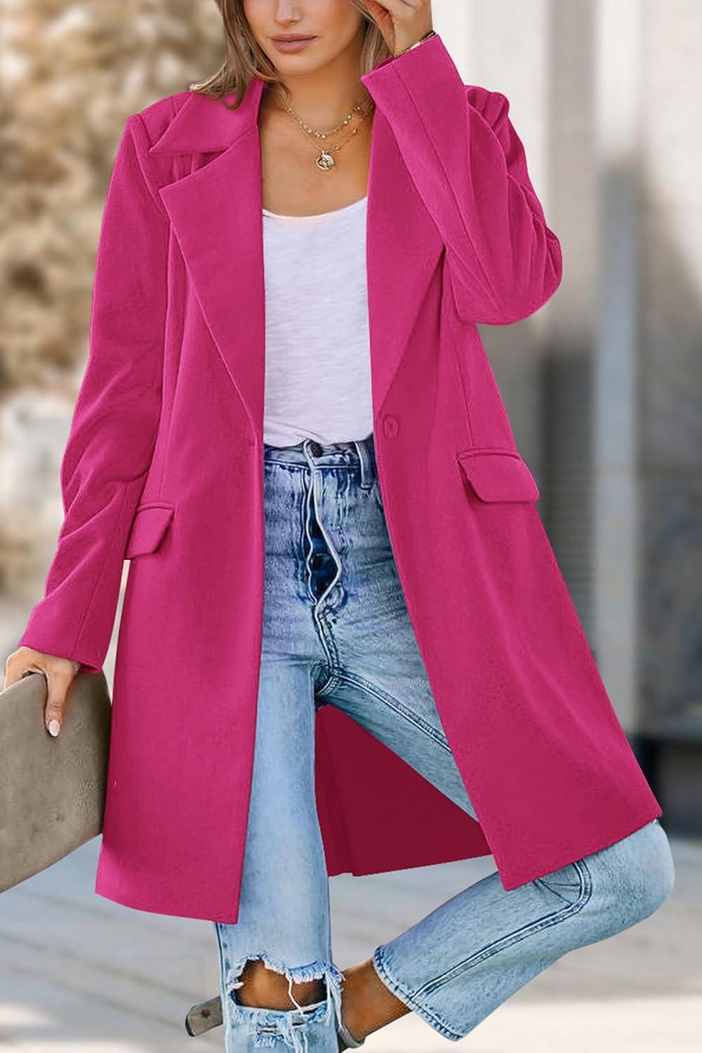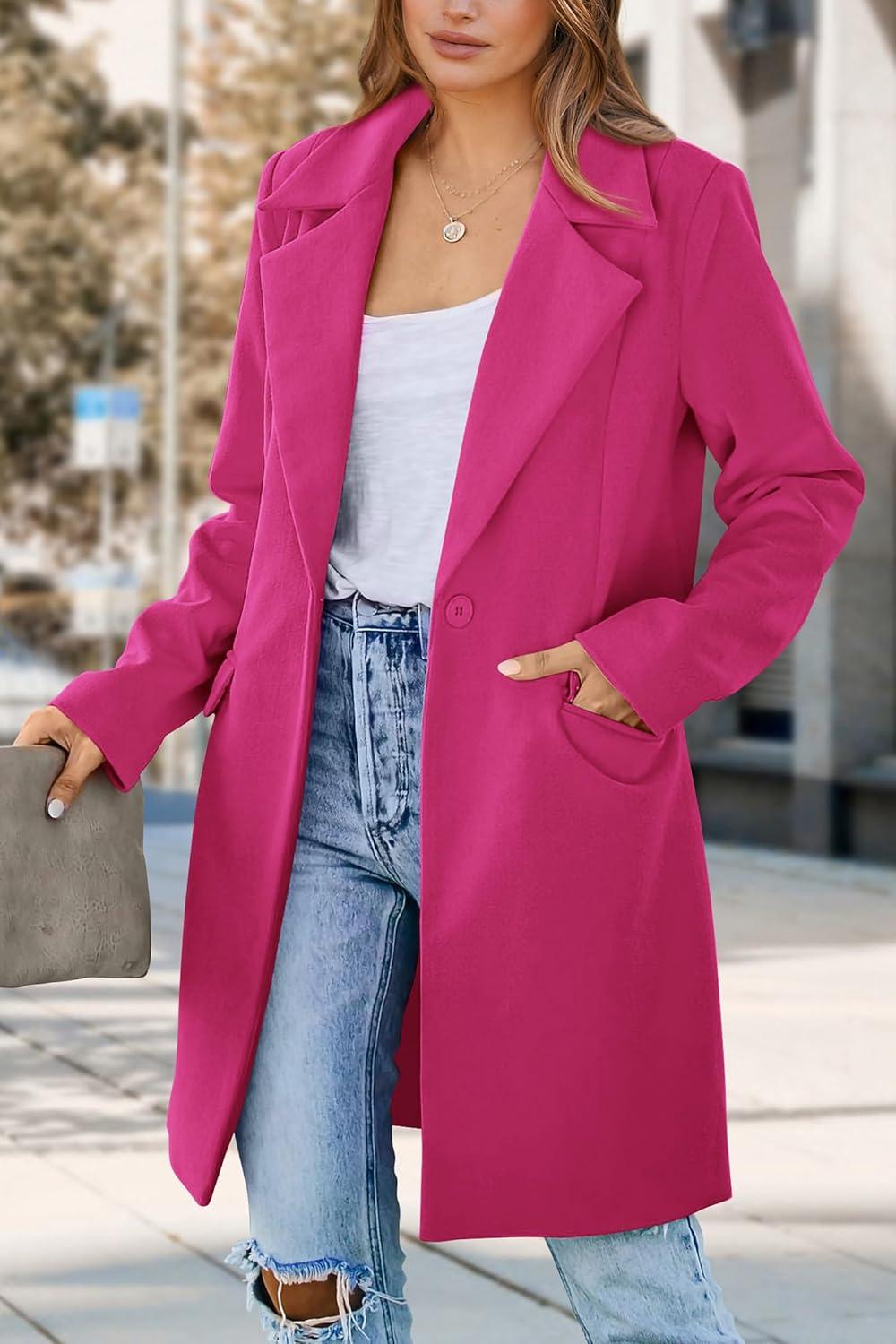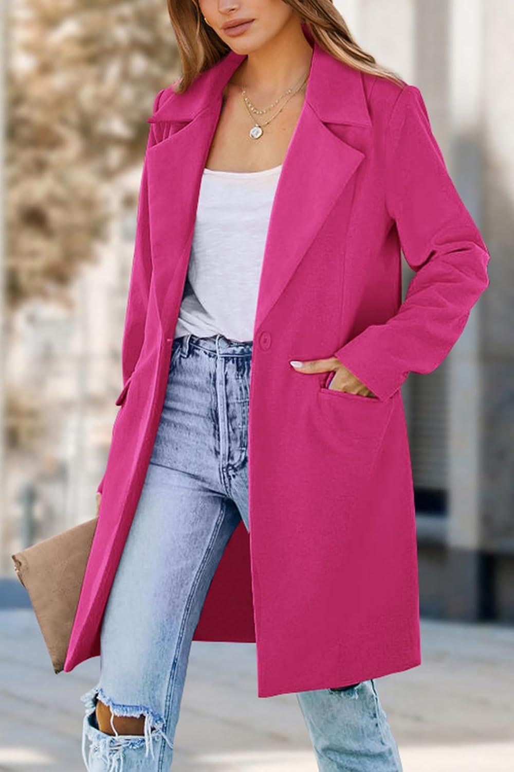 PRETTYGARDEN Women's 2025 Spring Fall Long Blazer Jackets Long Sleeve Lapel Pockets Loose Fit Work Casual Blazers Outerwear(Rose Red)