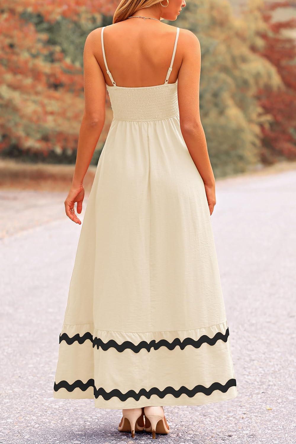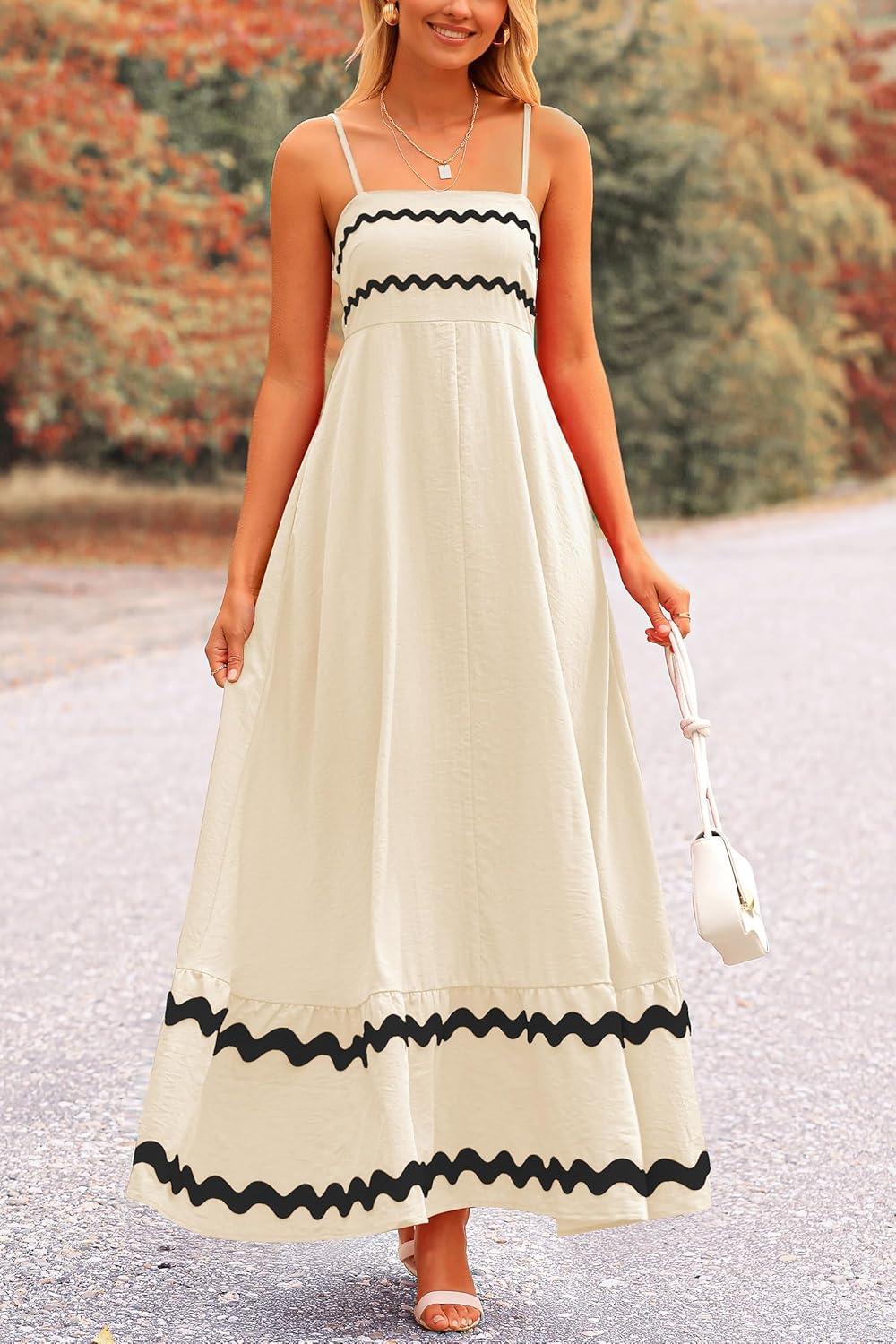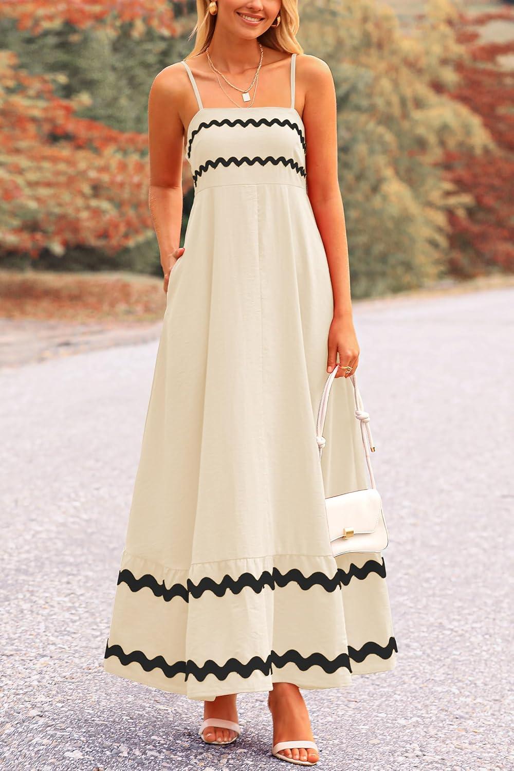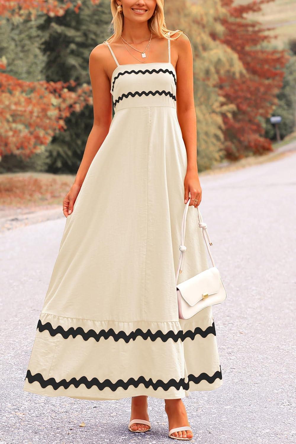 PRETTYGARDEN Women’s 2025 Summer Flowy Maxi Dress Casual Sleeveless Spaghetti Strap Ruffle Beach Long Dresses(Light Beige)