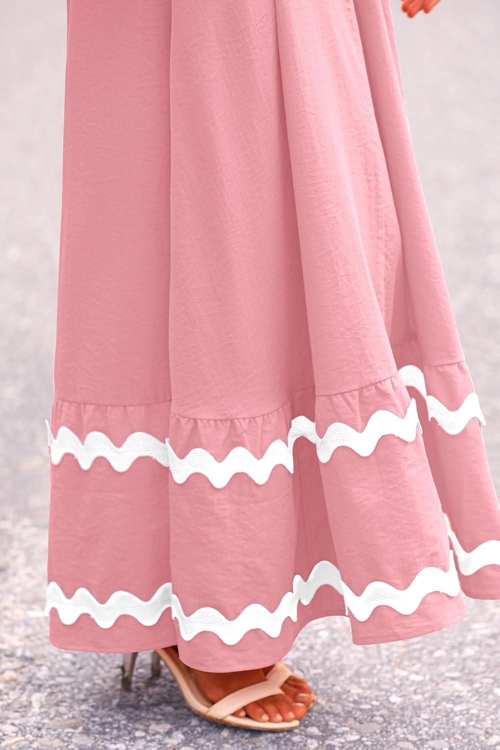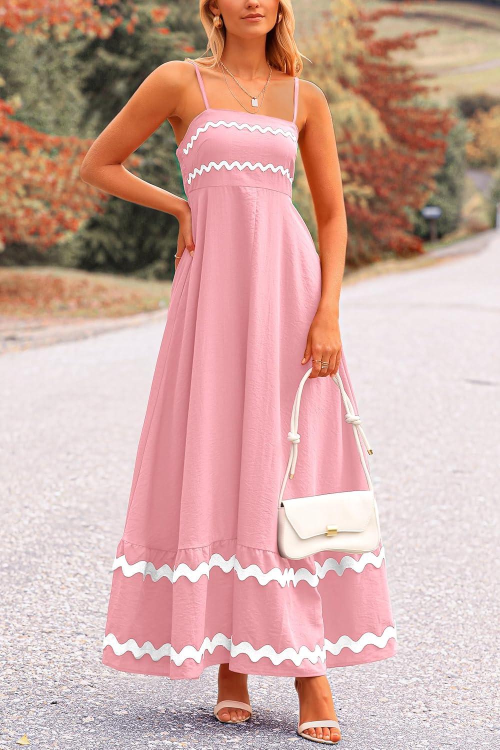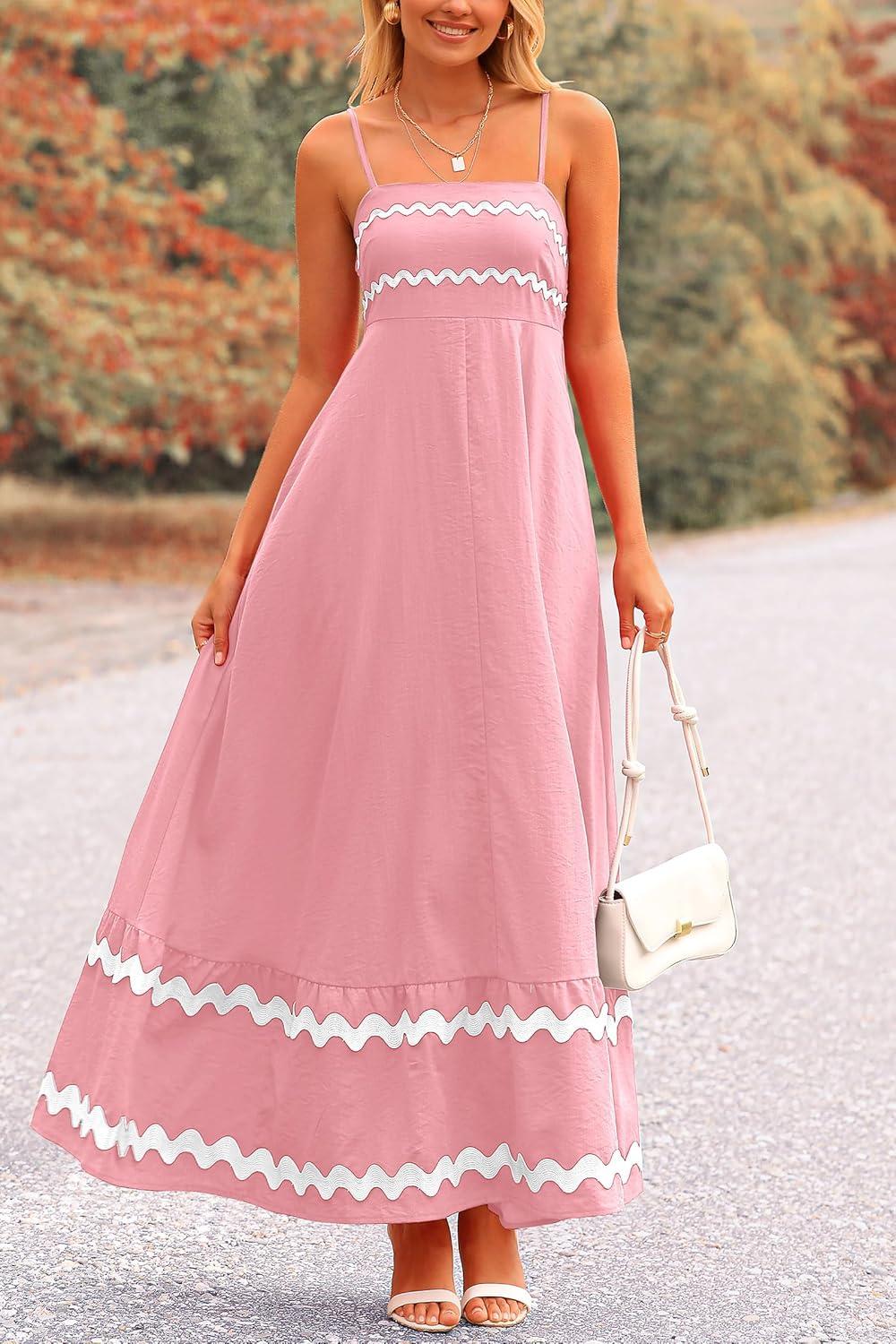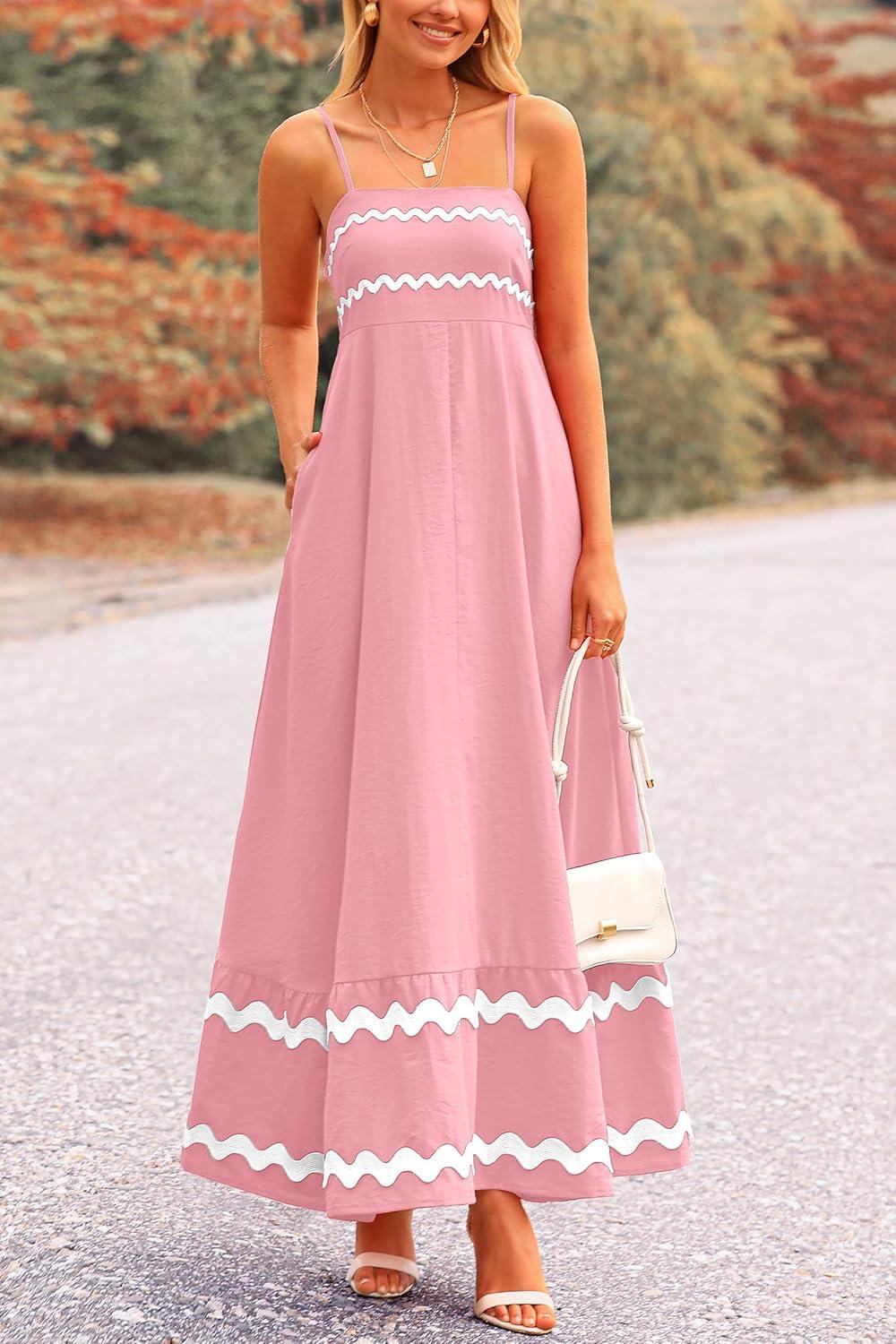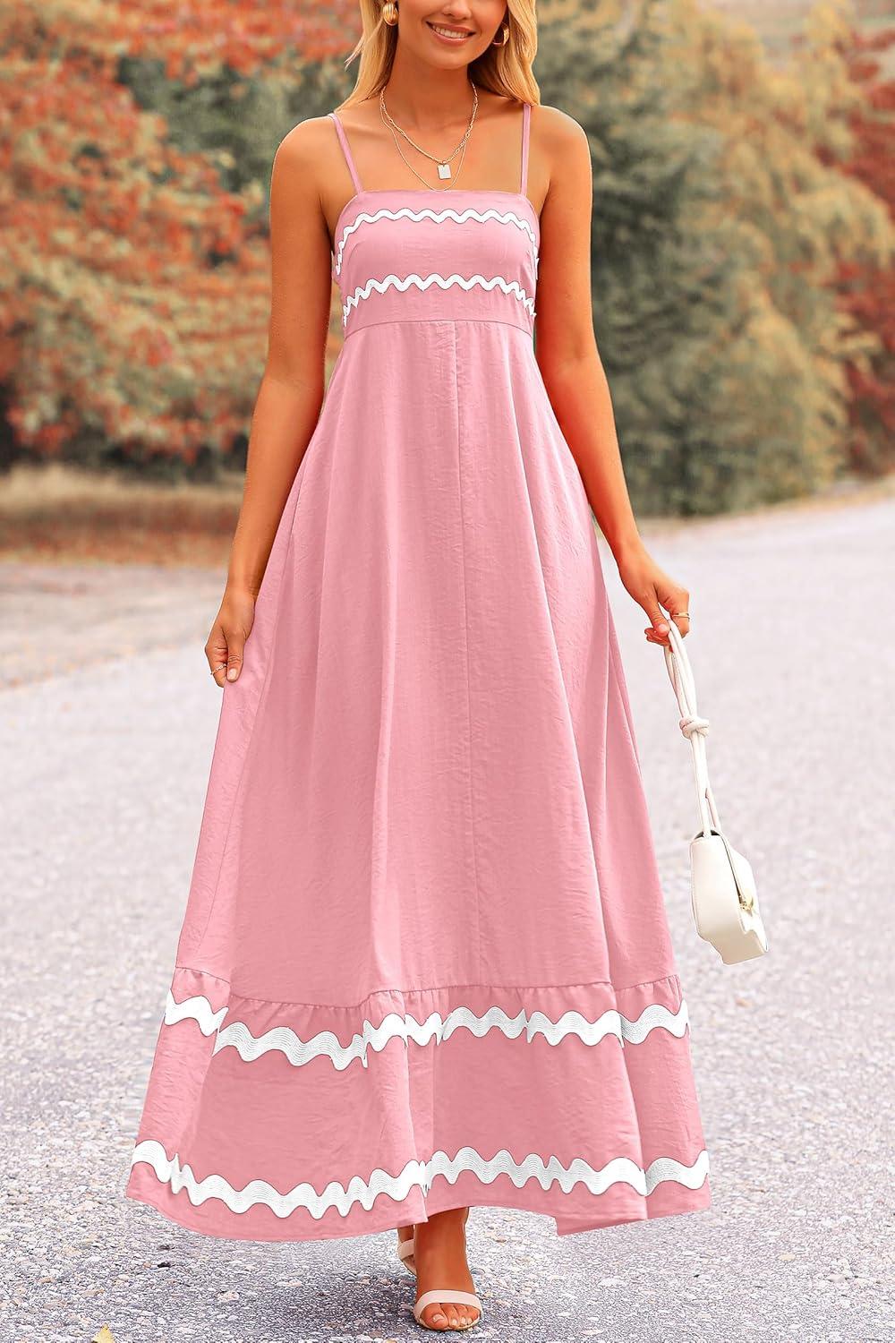 PRETTYGARDEN Women's 2025 Summer Flowy Maxi Dress Casual Sleeveless Spaghetti Strap Ruffle Beach Long Dresses(Pink)