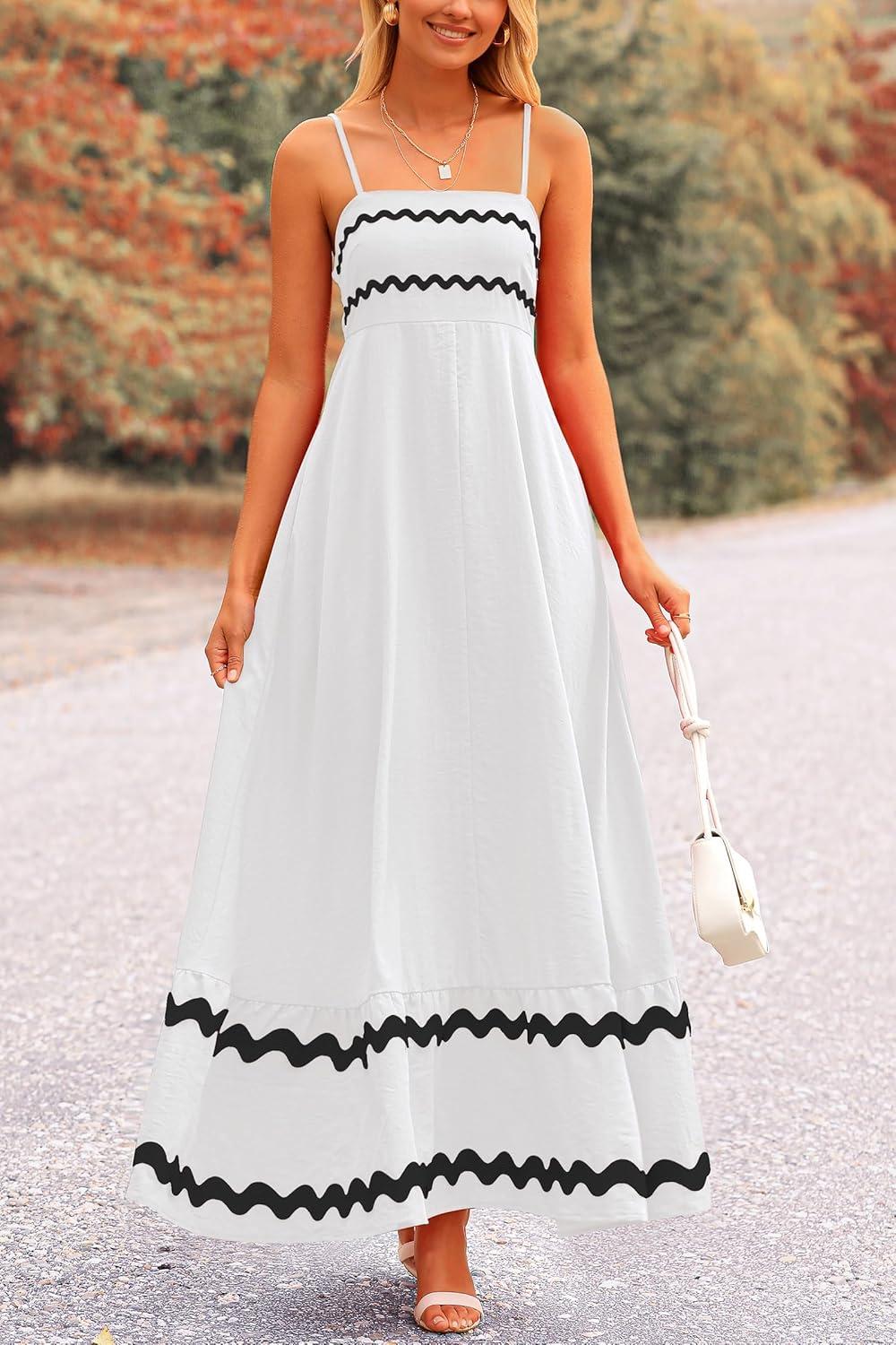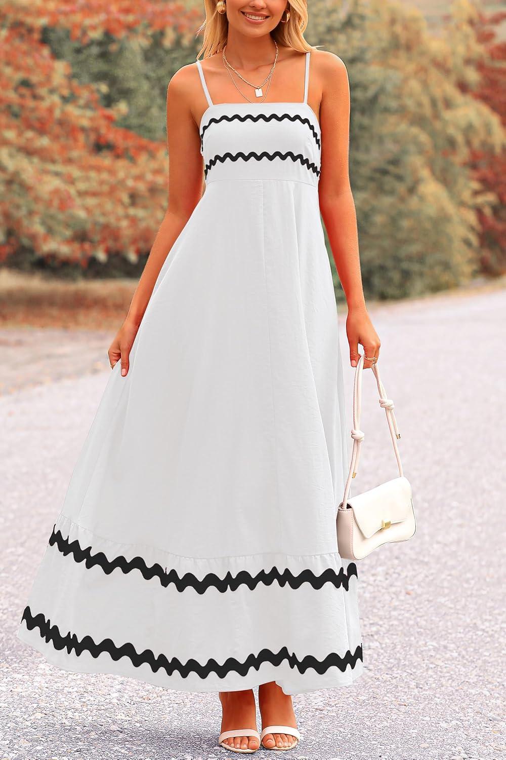 PRETTYGARDEN Women’s 2025 Summer Flowy Maxi Dress Casual Sleeveless Spaghetti Strap Ruffle Beach Long Dresses(White)