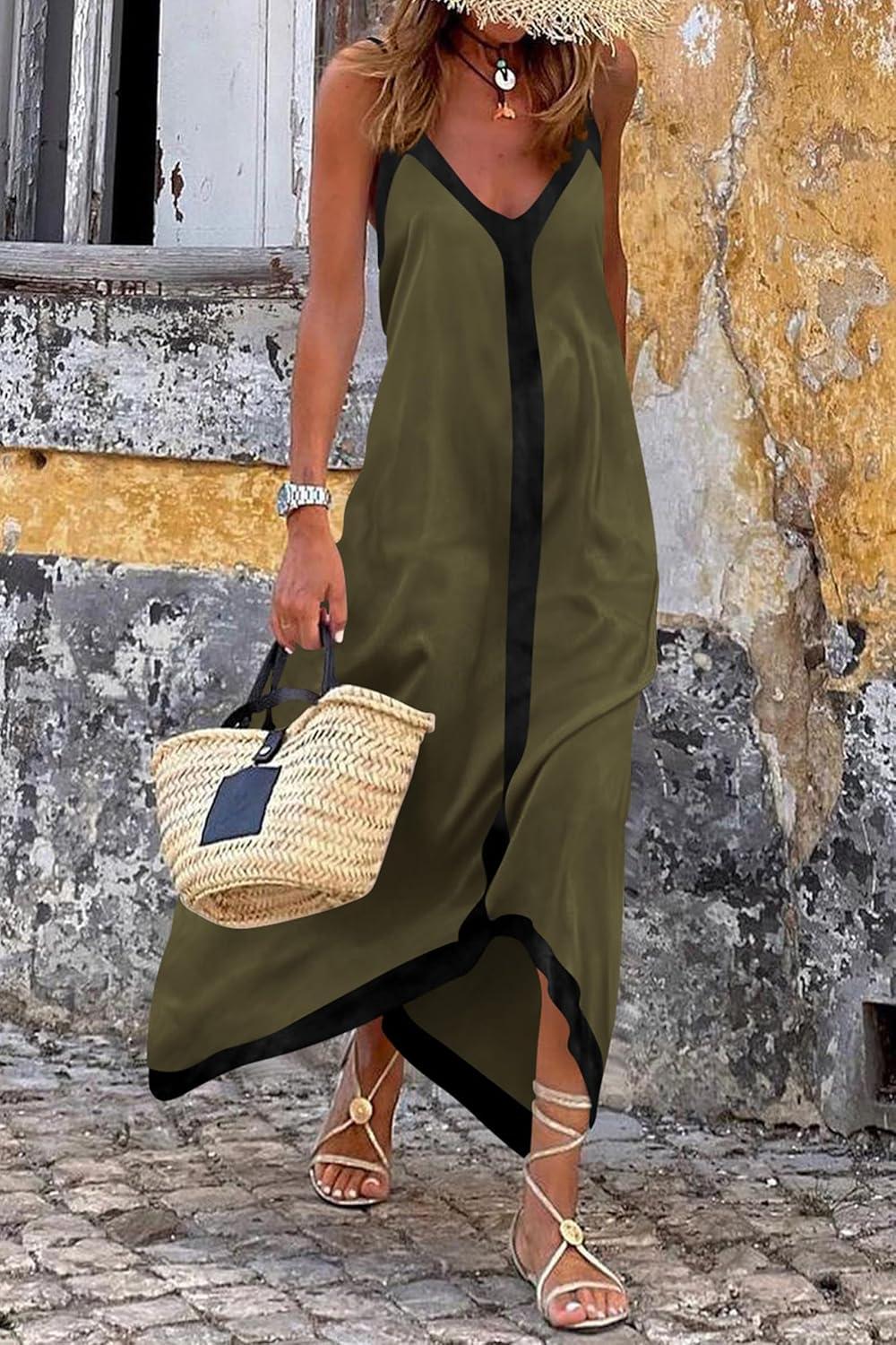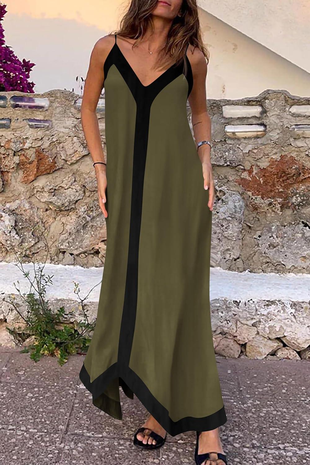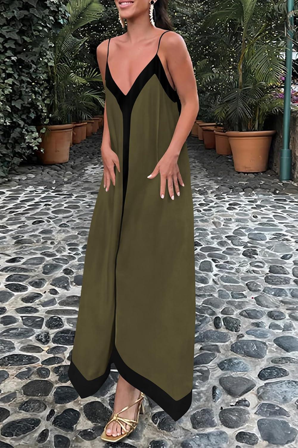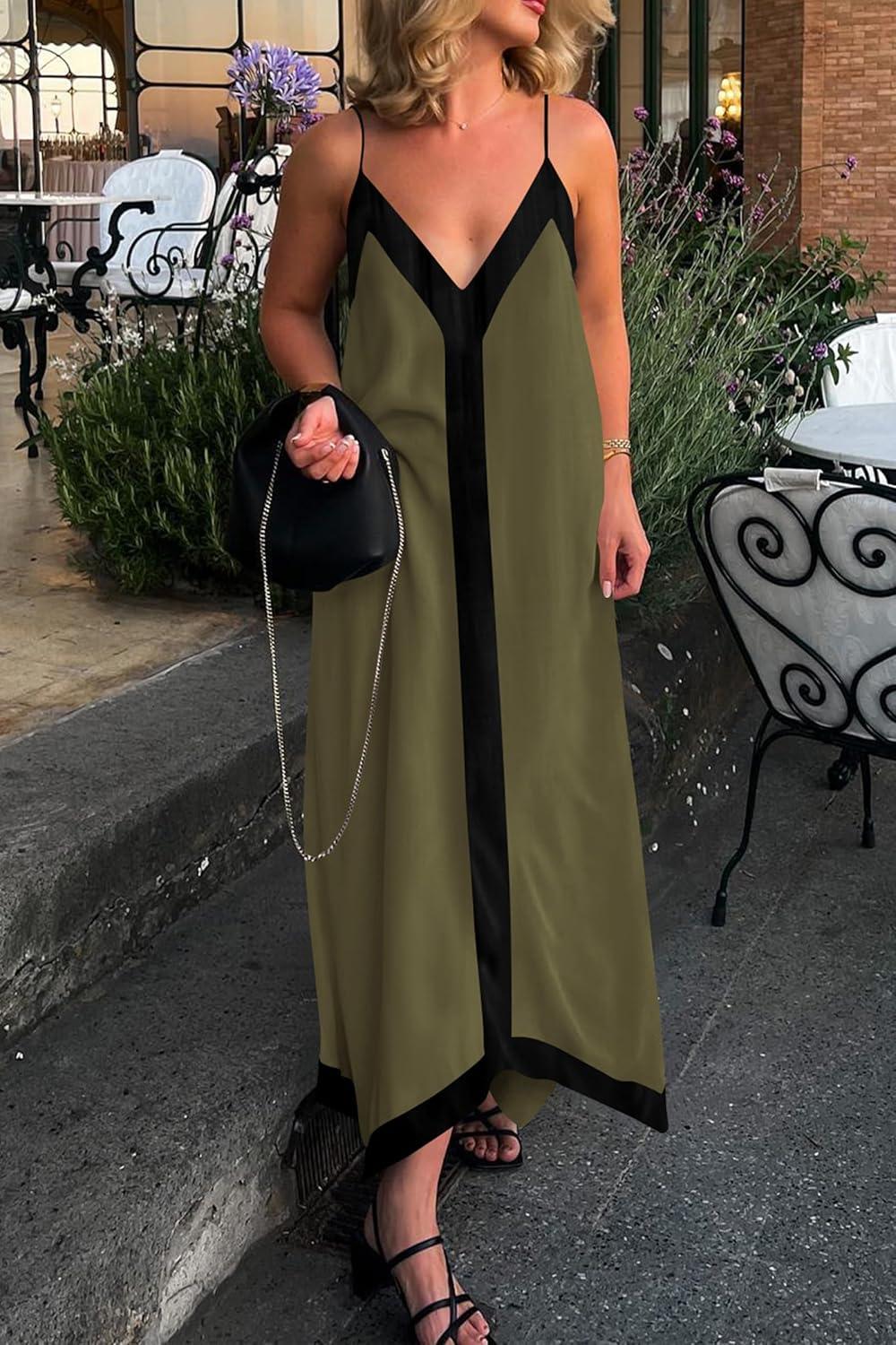 PRETTYGARDEN Women's 2025 Summer Maxi Dress Sleeveless V Neck Spaghetti Strap Flowy Elegant Holiday Party Dresses(Army Green)