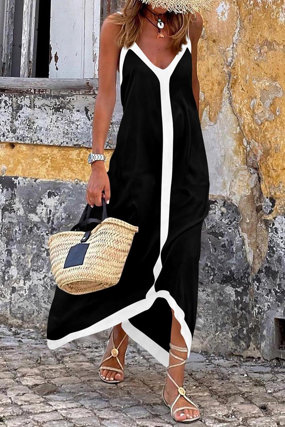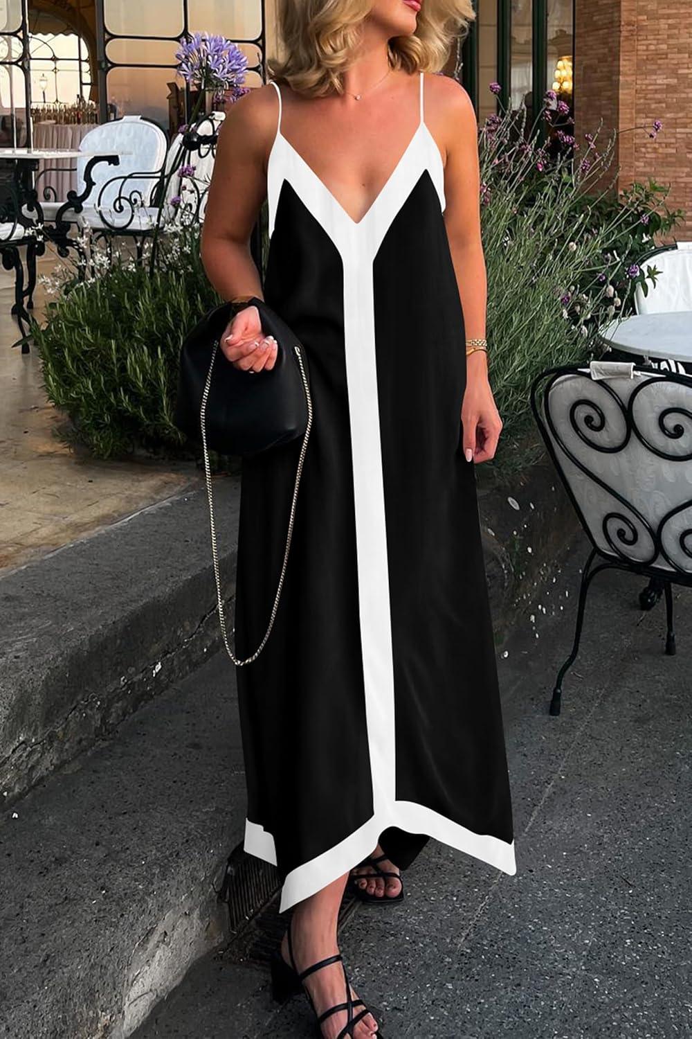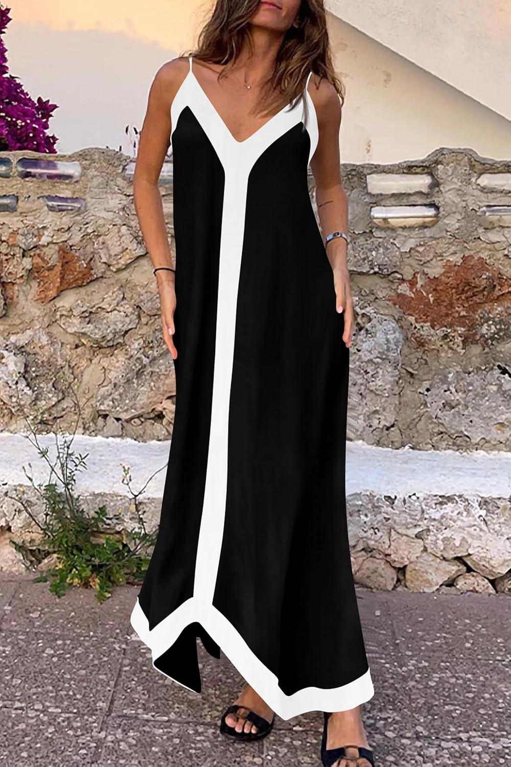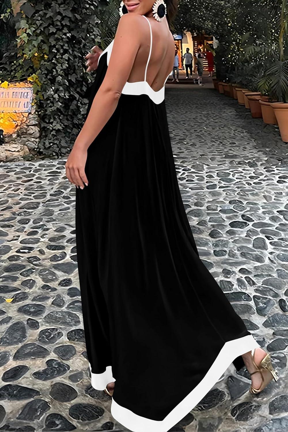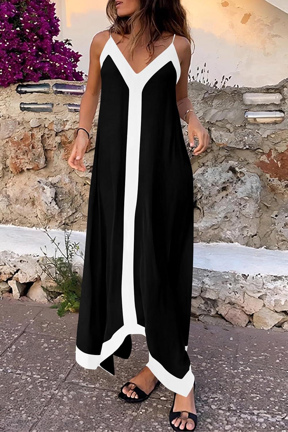 PRETTYGARDEN Women’s 2025 Summer Maxi Dress Sleeveless V Neck Spaghetti Strap Flowy Elegant Holiday Party Dresses(Black)