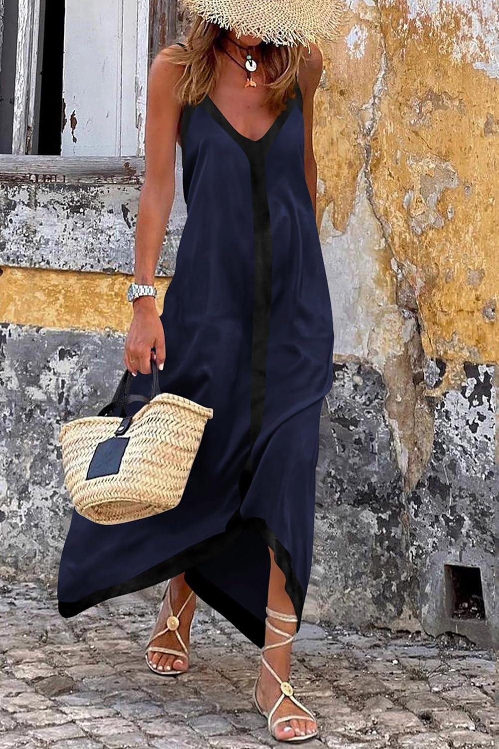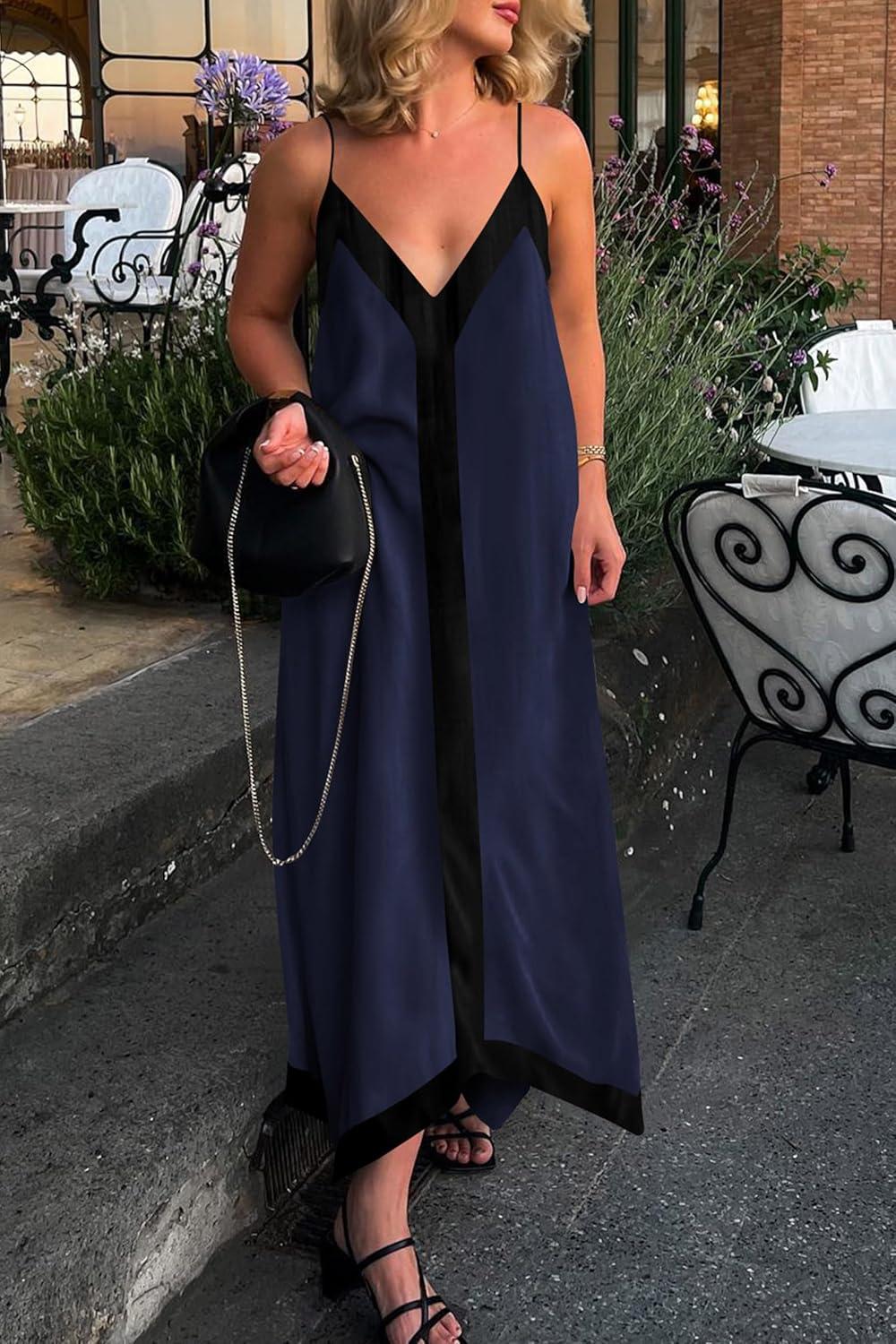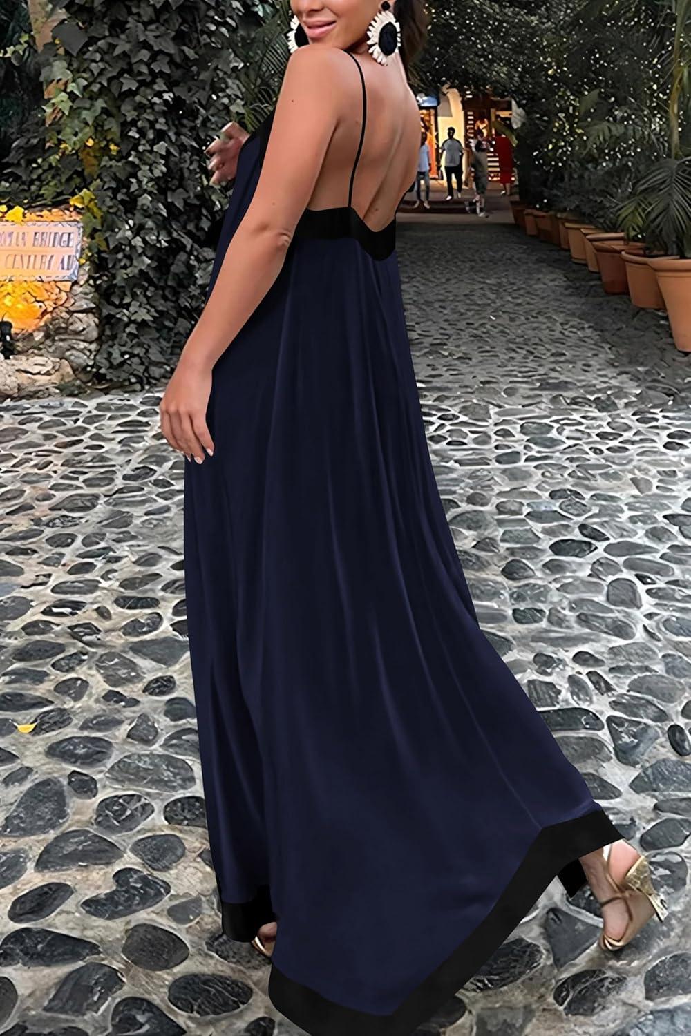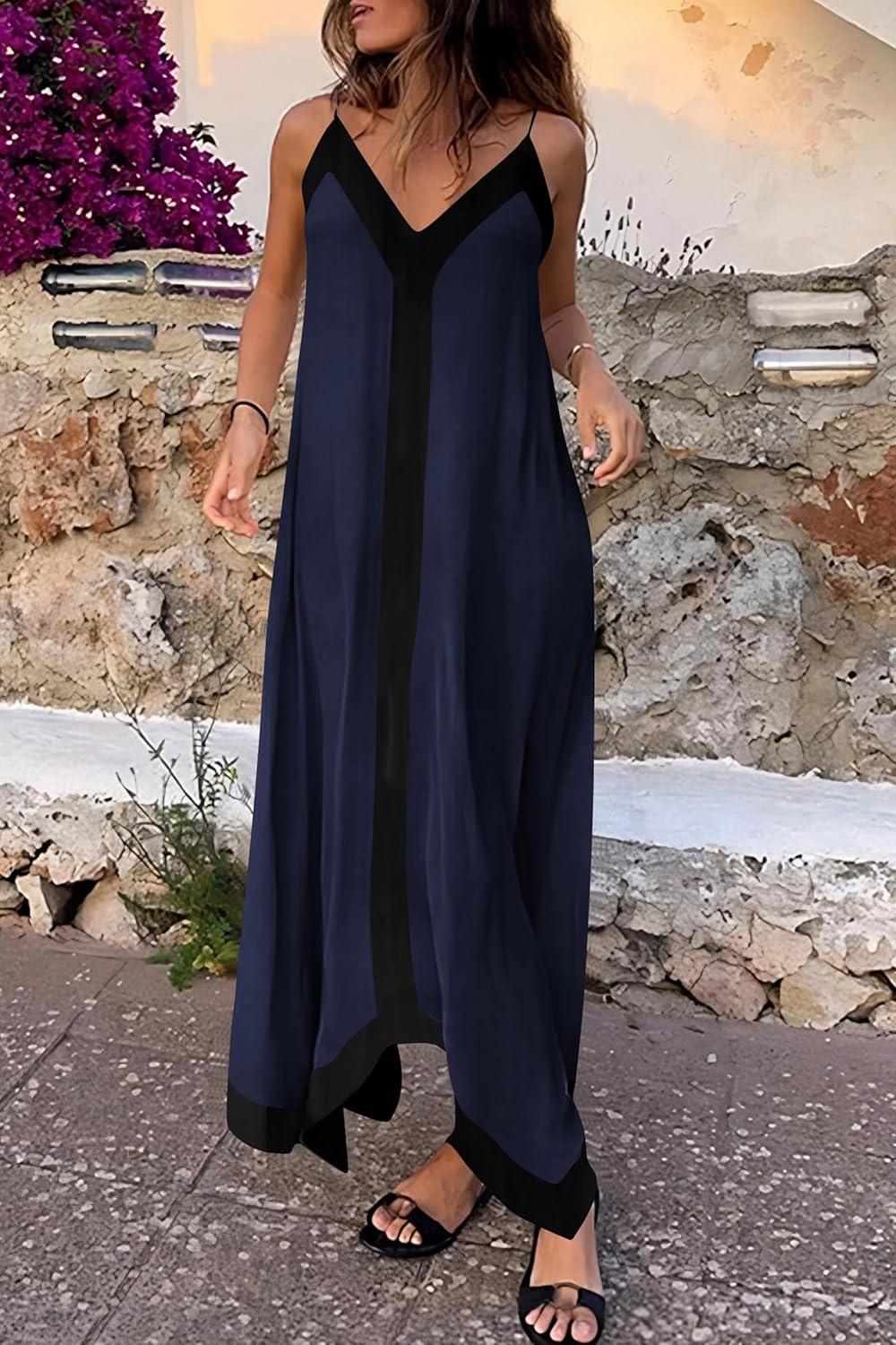PRETTYGARDEN Women's 2025 Summer Maxi Dress Sleeveless V Neck Spaghetti Strap Flowy Elegant Holiday Party Dresses(Navy)